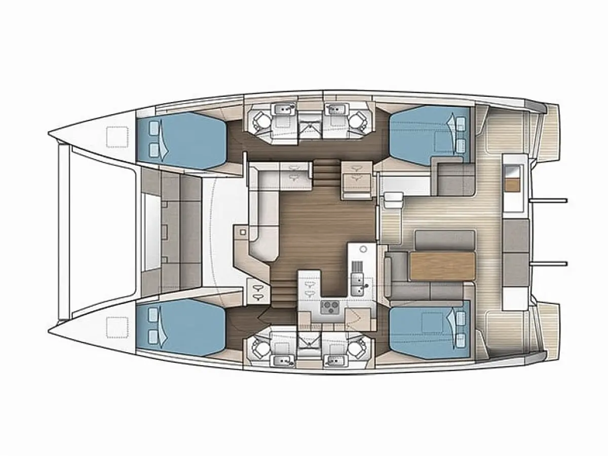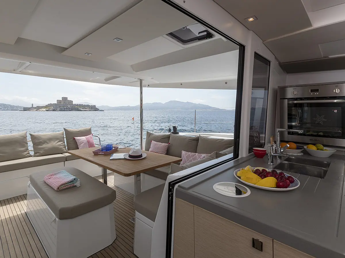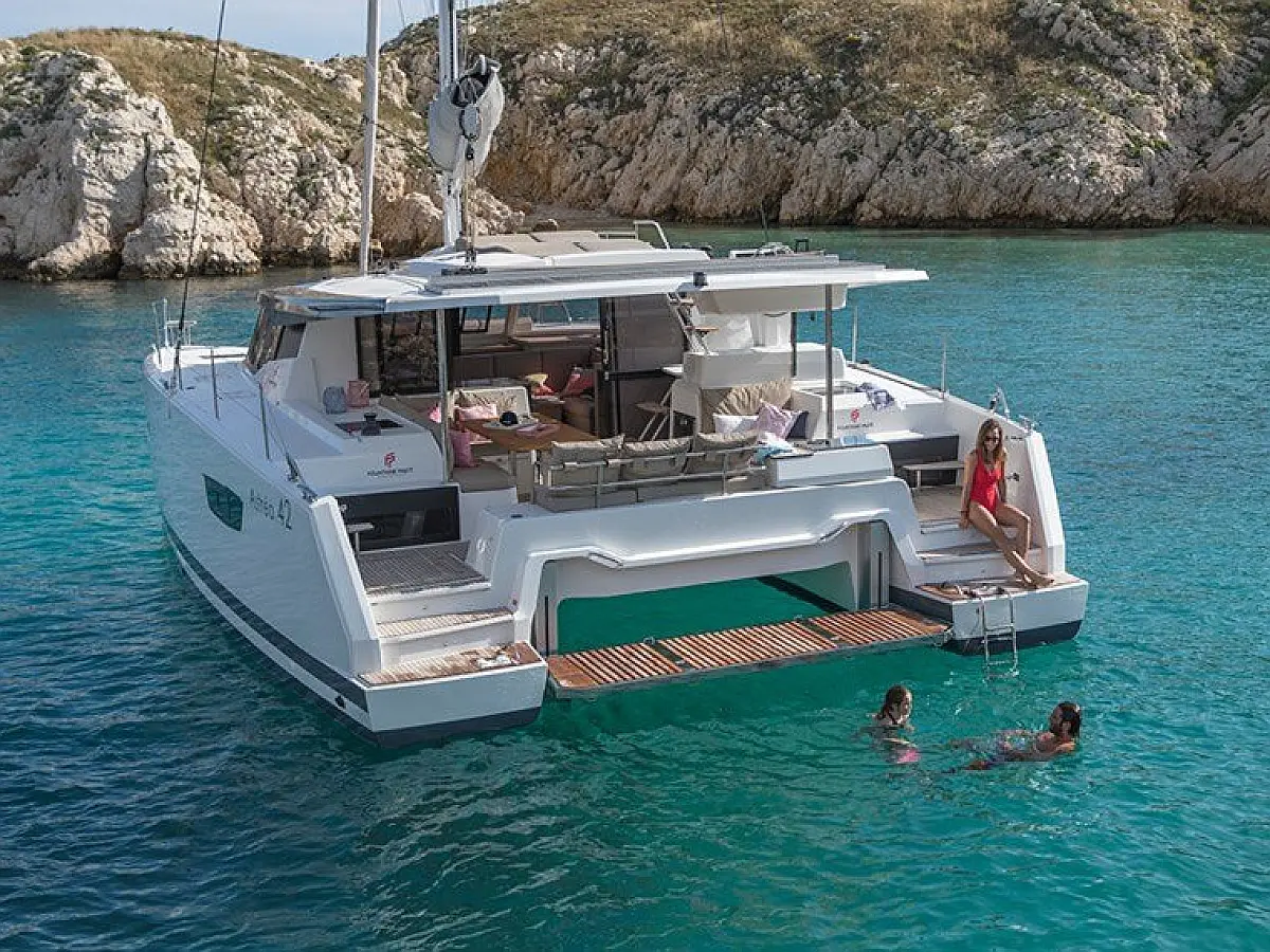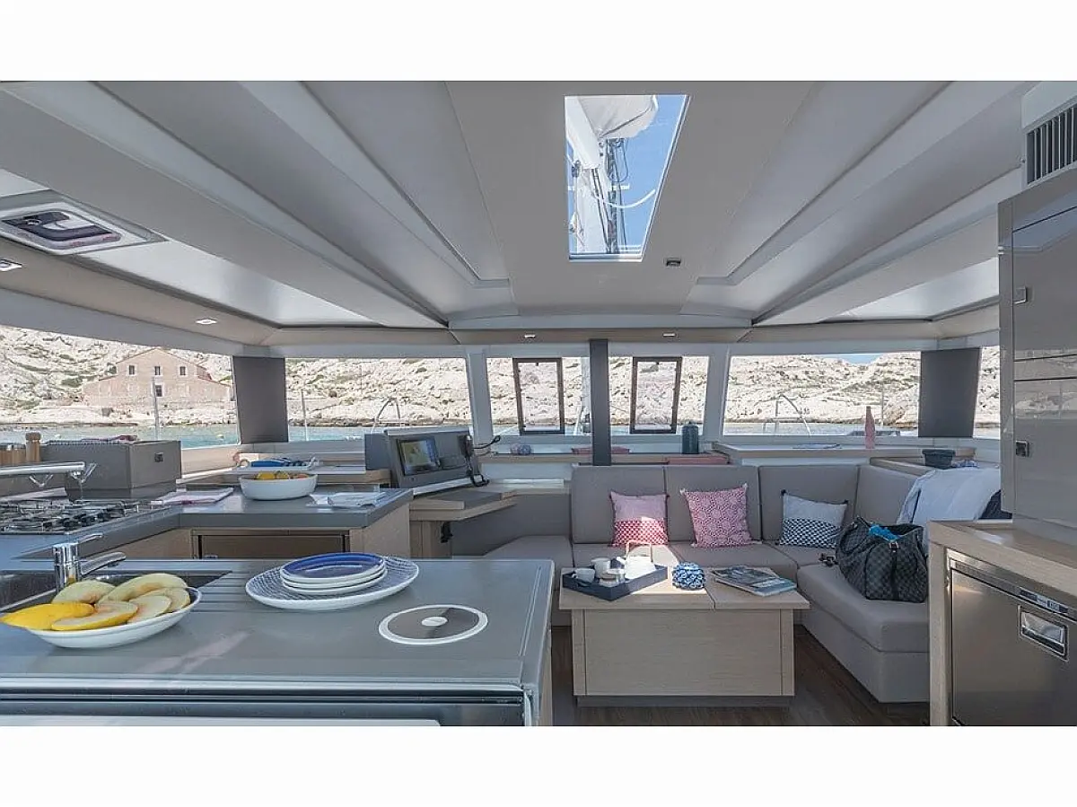 Bimini, Electric winches, Swimming platform, Dinghy, Coffee maker, Refrigerator, Water maker, Air condition, Inverter, Generator
