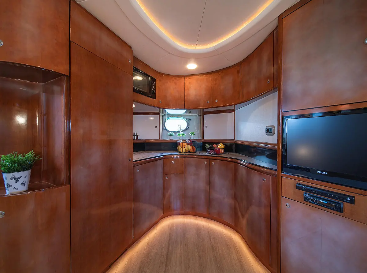 Ice maker, Water maker, Air condition, Heating, Solar Panels, Teak deck, Electric winches, Inverter, Bimini, Generator, Refrigerator, Coffee maker