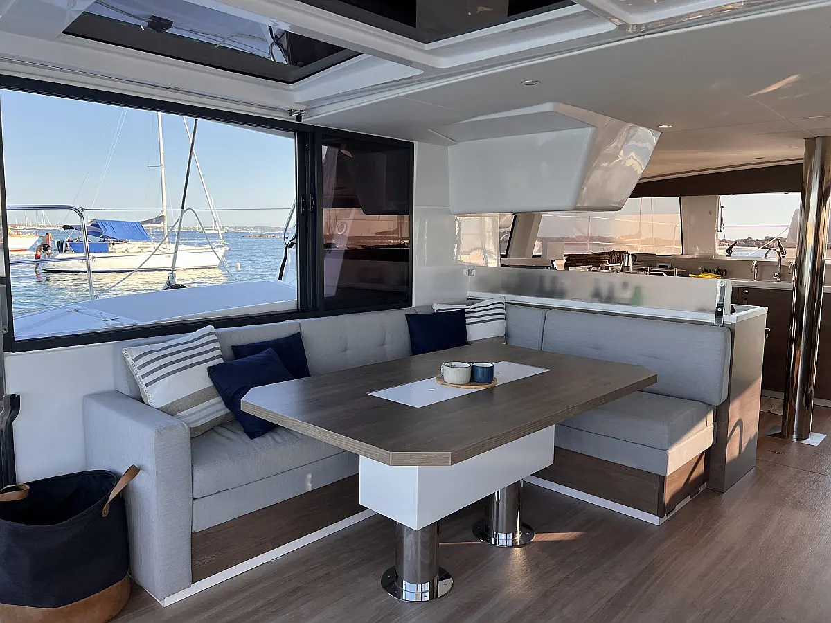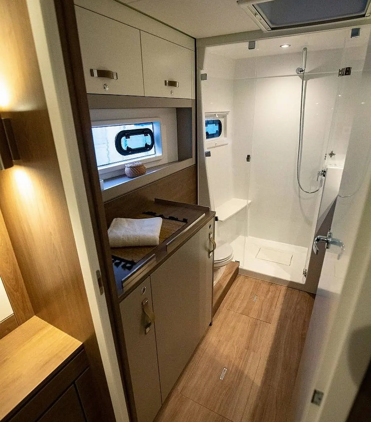 Water maker, Cockpit speakers, Cockpit cushions, Generator, Air condition, Solar Panels, Teak Cockpit, Refrigerator, Electric winches, Inverter, Outboard engine