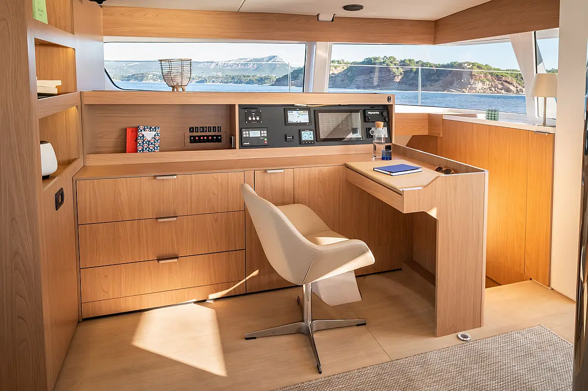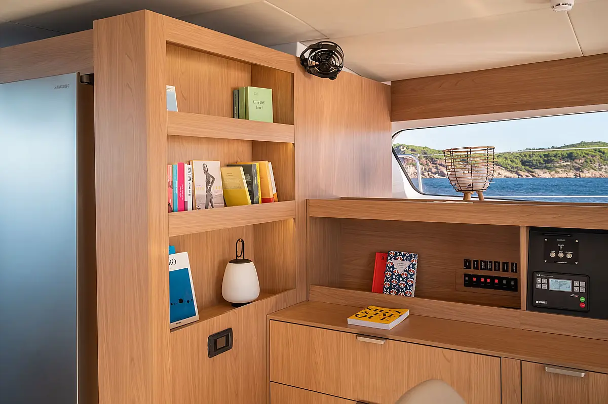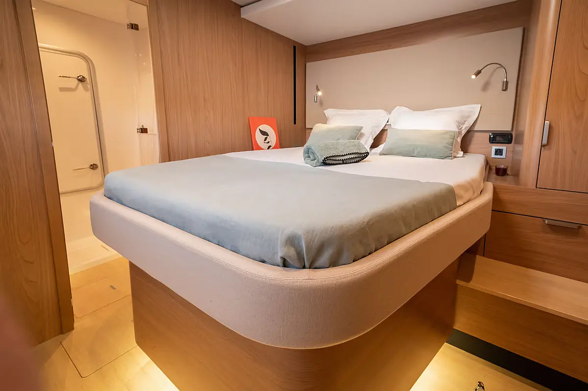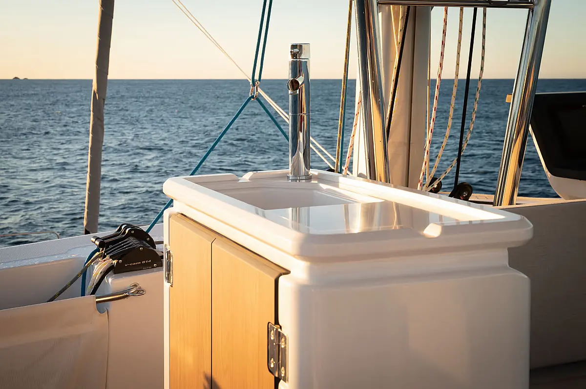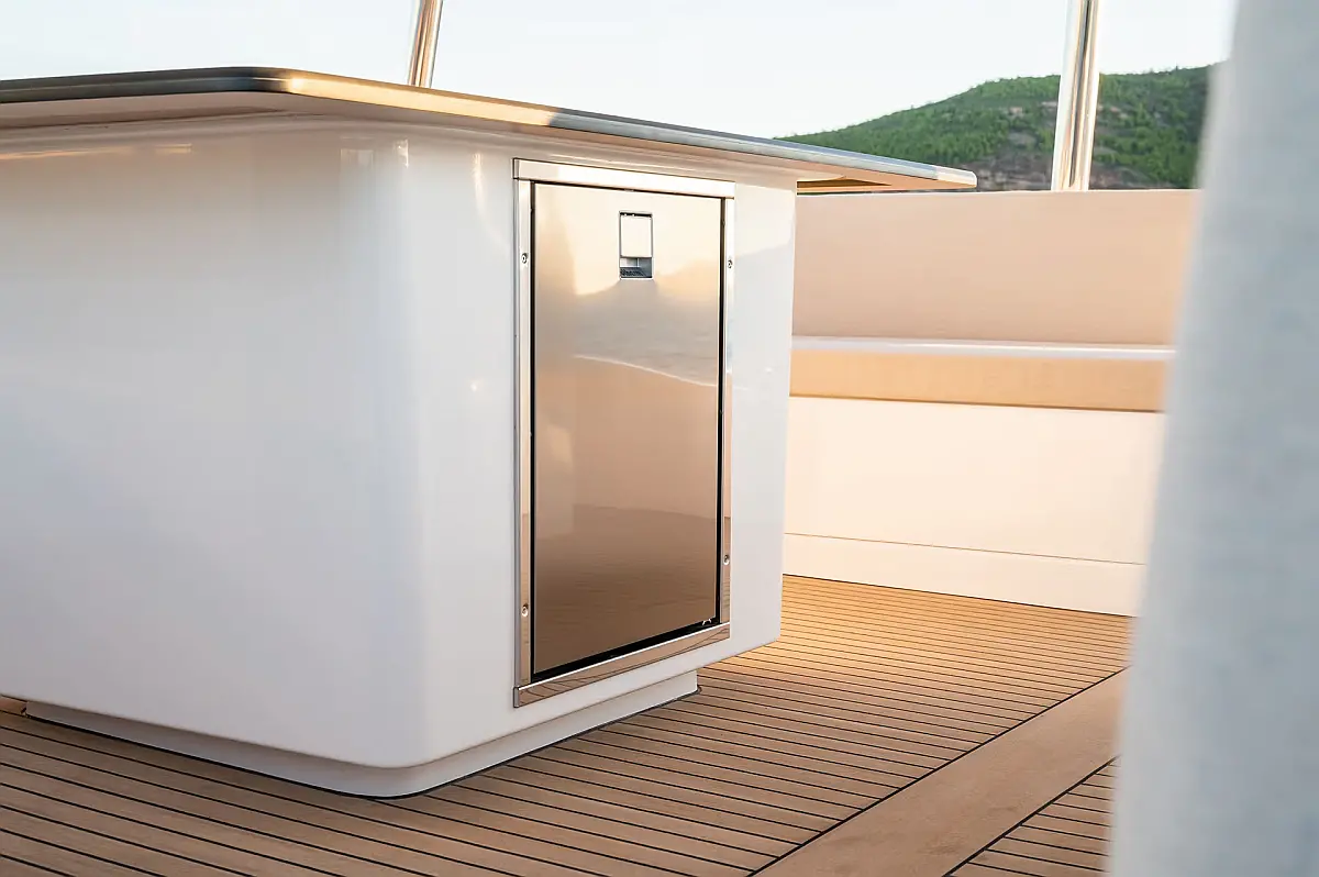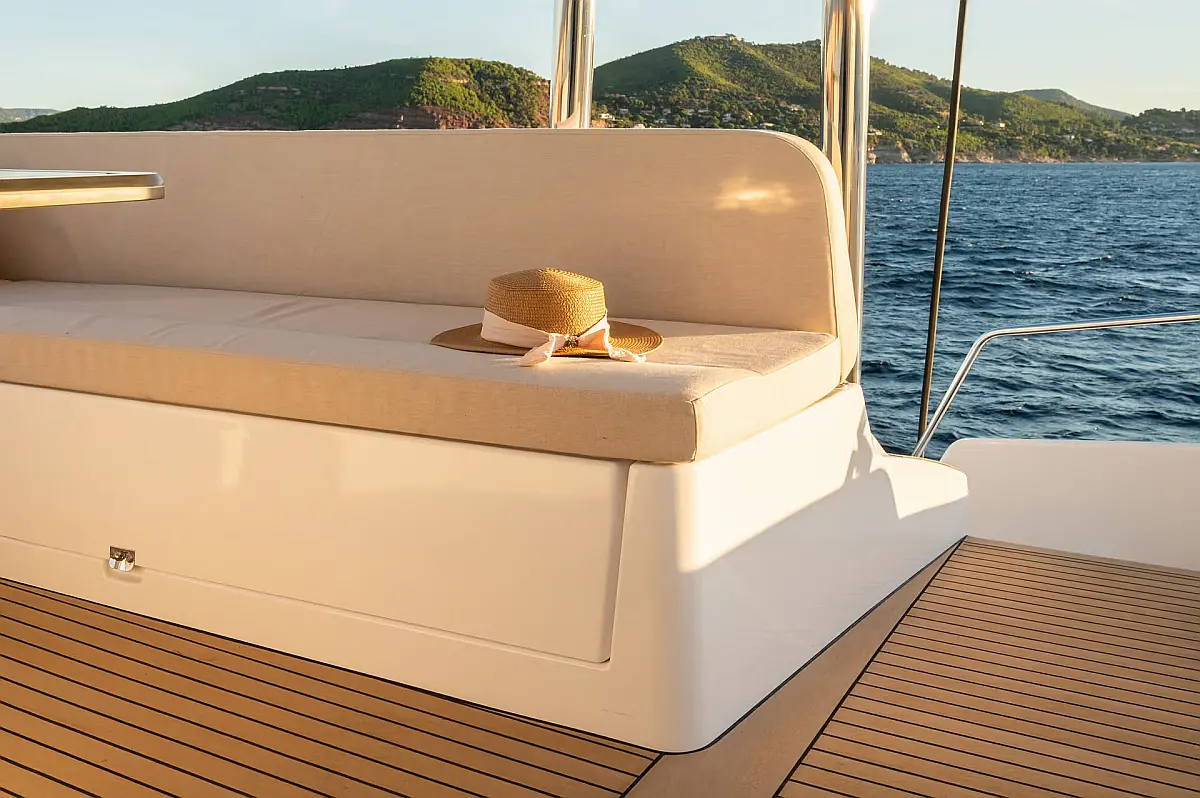 Swimming platform, Air condition, Cockpit cushions, Electric toilet, Generator, Dinghy, Refrigerator, Electric winches, Inverter, Outboard engine