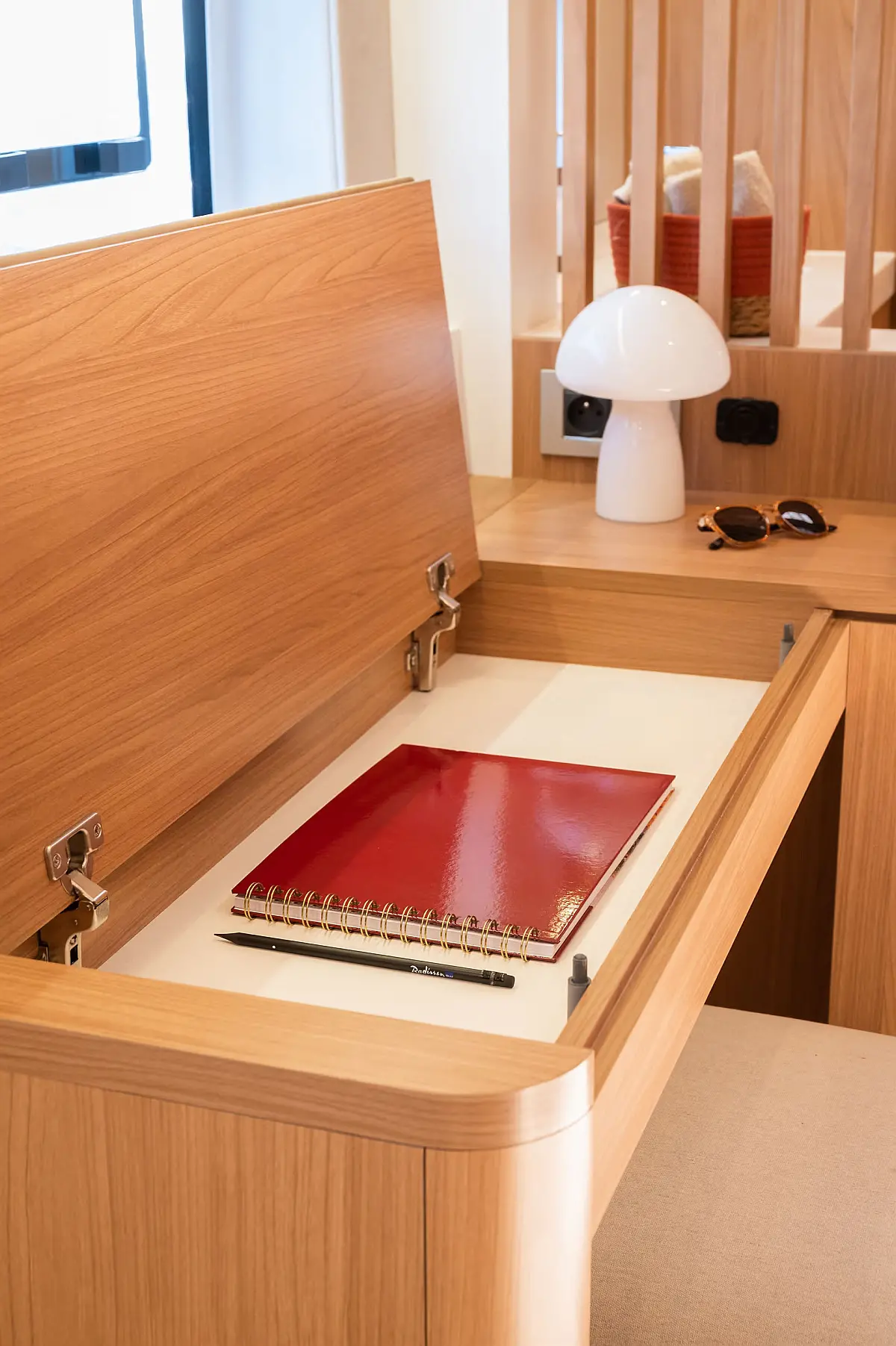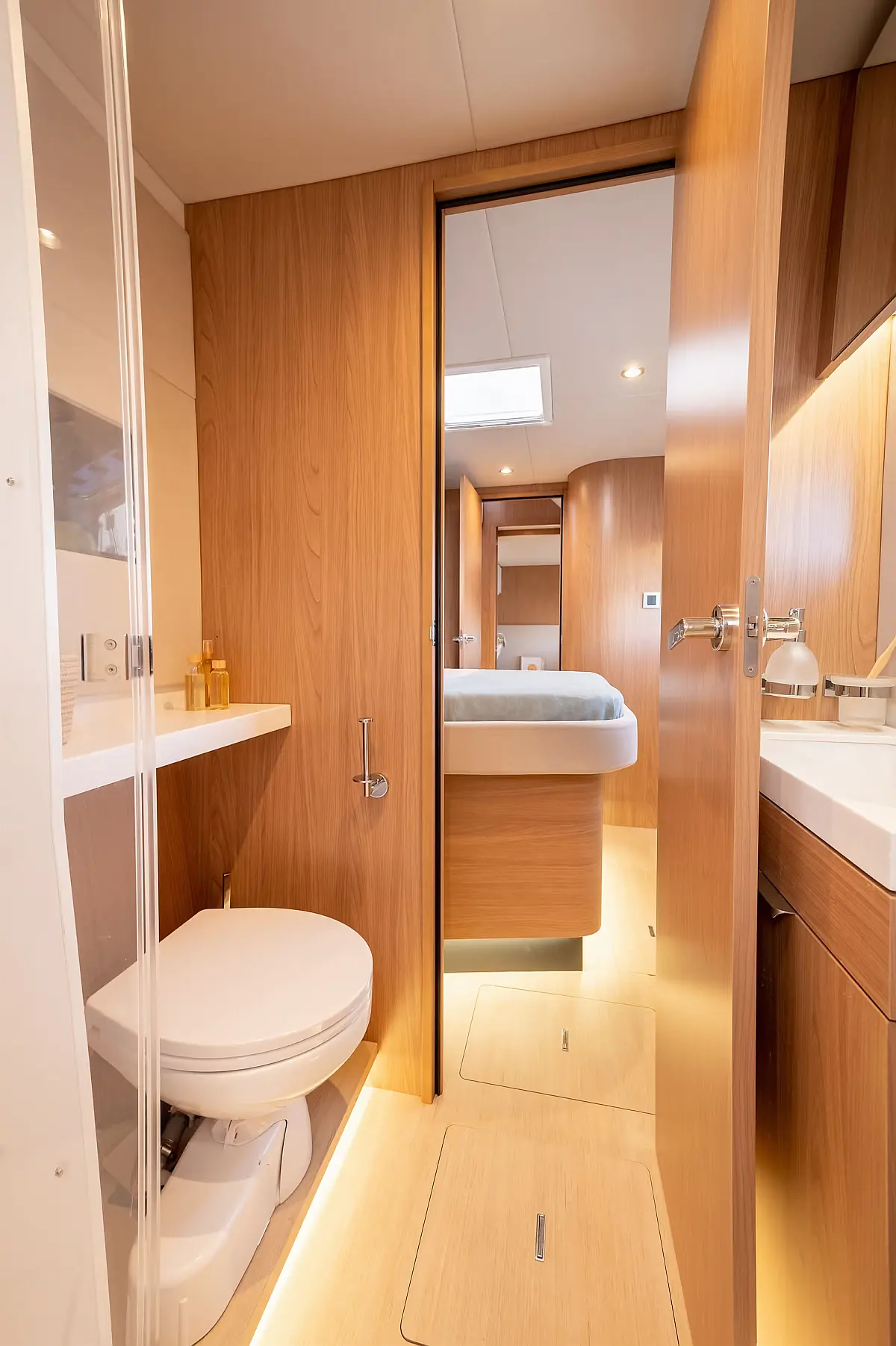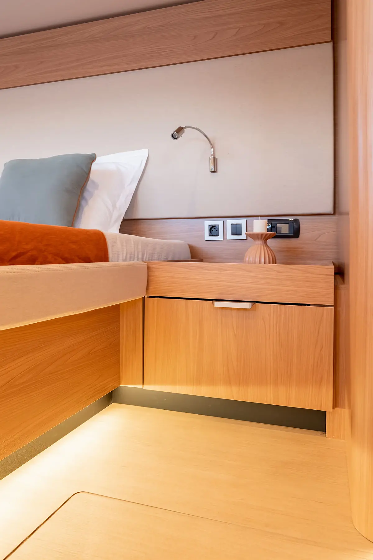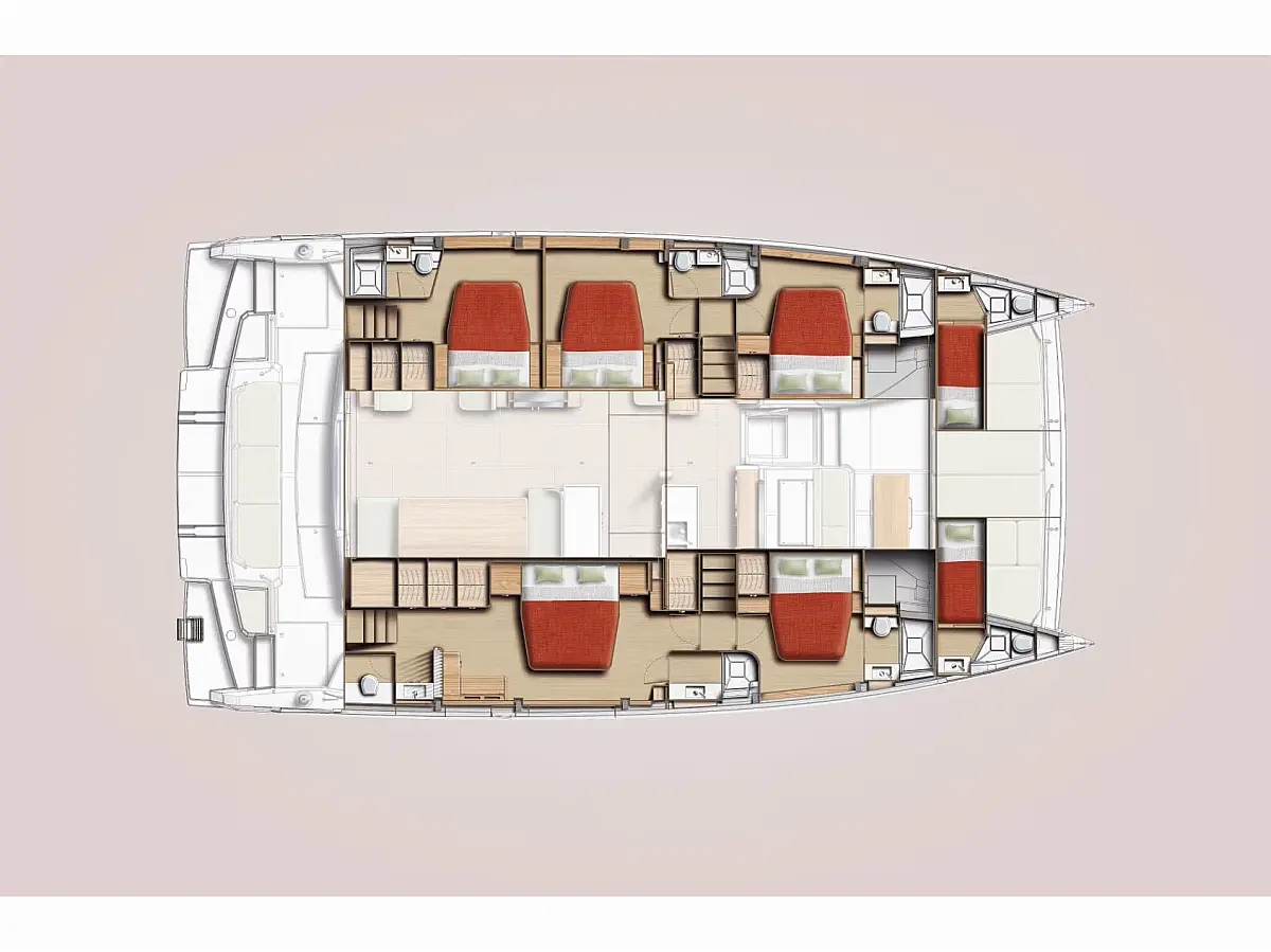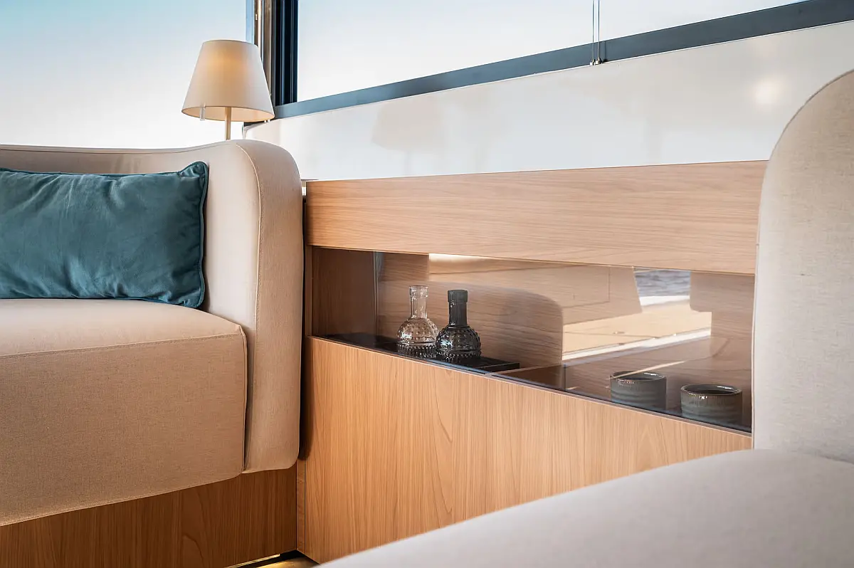 Swimming platform, Air condition, Cockpit cushions, Electric toilet, Generator, Dinghy, Refrigerator, Electric winches, Inverter, Outboard engine
