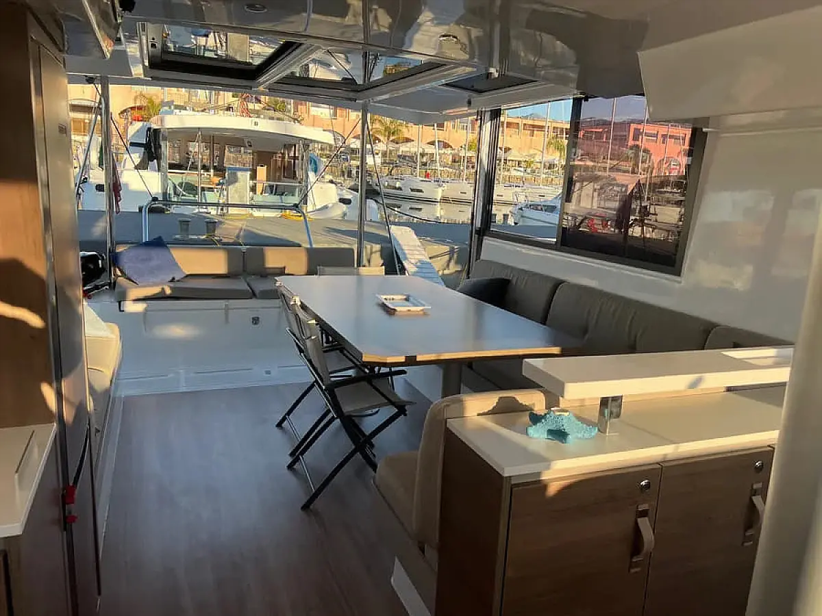 Outboard engine, Barbecue grill in cockpit, Water maker, Air condition, Coffee maker, Cockpit cushions, Electric toilet, Generator