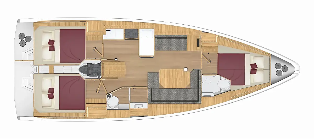 Refrigerator, Air condition, Dinghy, Sprayhood, Wi-Fi & Internet, Cockpit speakers, Solar Panels, Bimini, Teak Cockpit