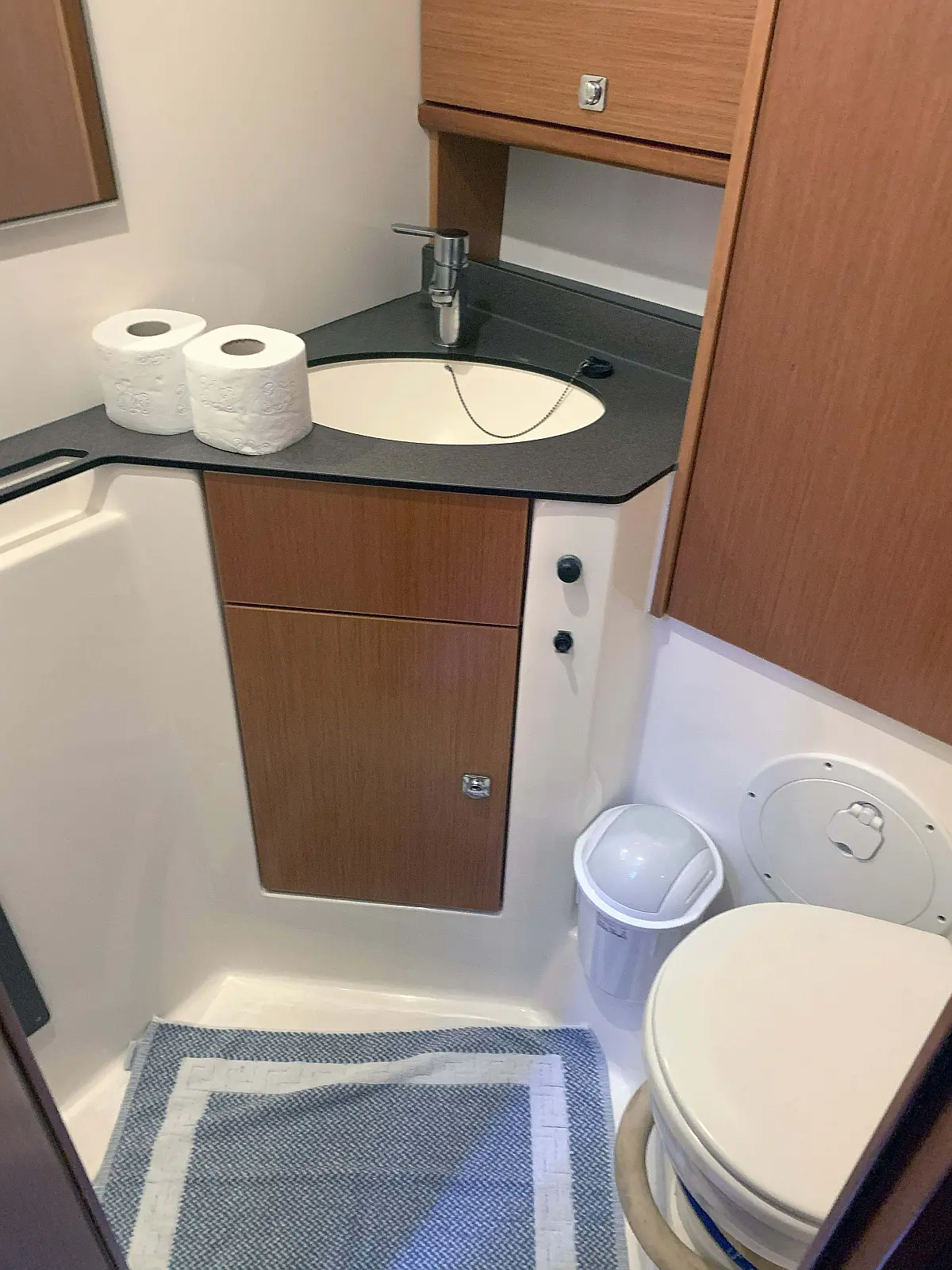 Sprayhood, Bimini, Cockpit speakers, Holding tank, Refrigerator, Swimming platform, Cockpit cushions, Electric toilet