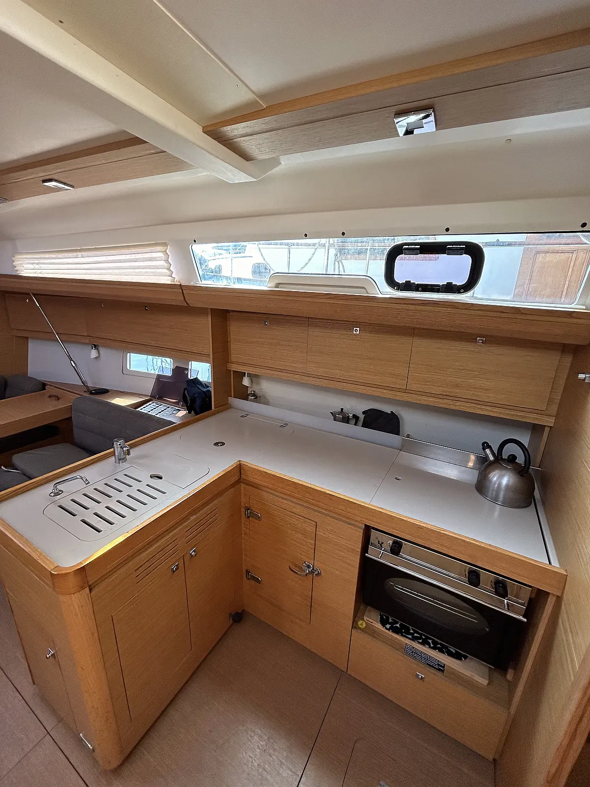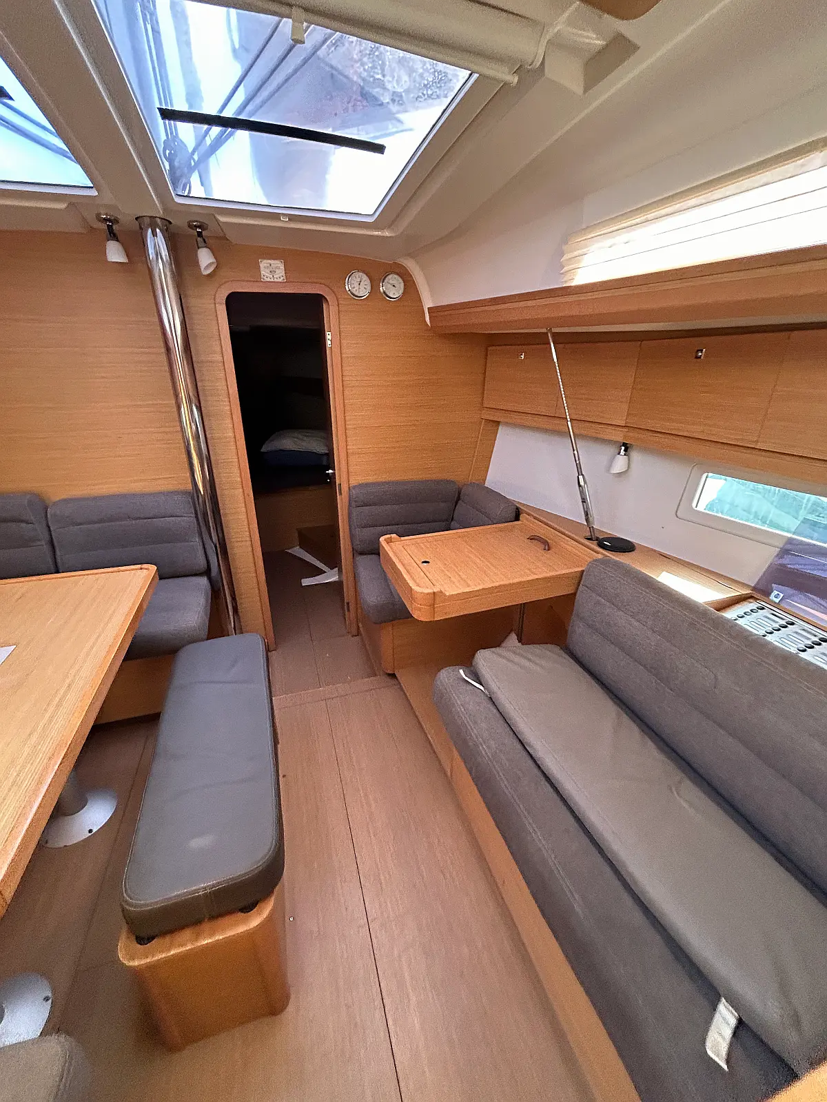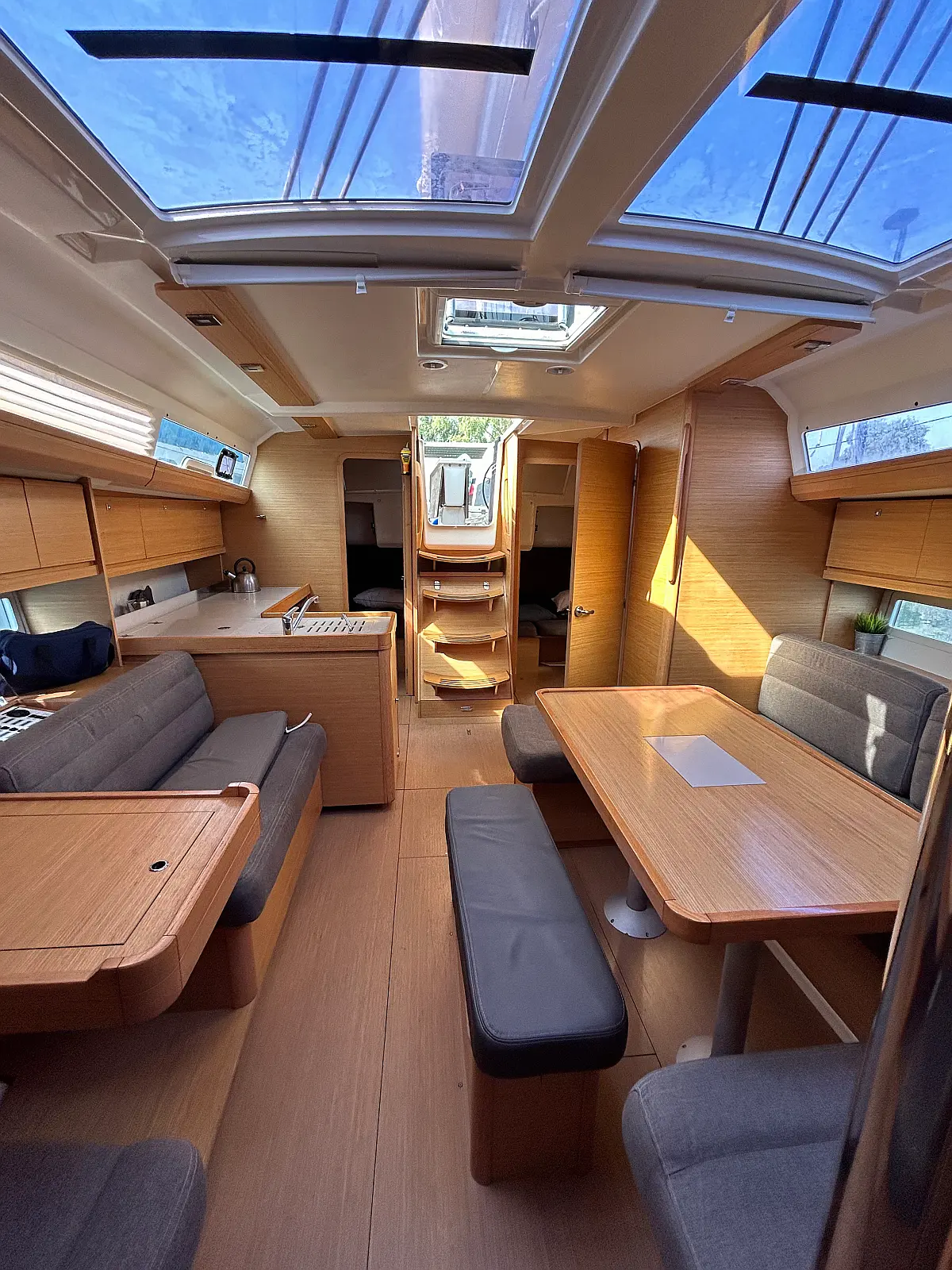 The 12.35 m Dufour 412 Grand large[G] Sail boat, built in 2018, is an ideal yacht for exploring the Greece. With 3 comfortable cabins, 2 WC/showers, and enough berths to accommodate up to 8 (6+2) guests, it provides ample space for relaxation and entertainment. This boat is available for charter.