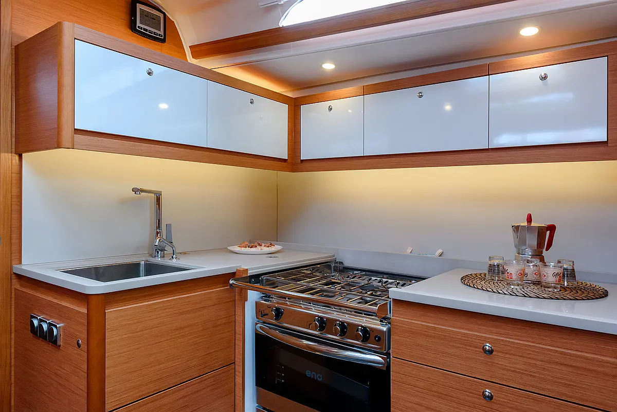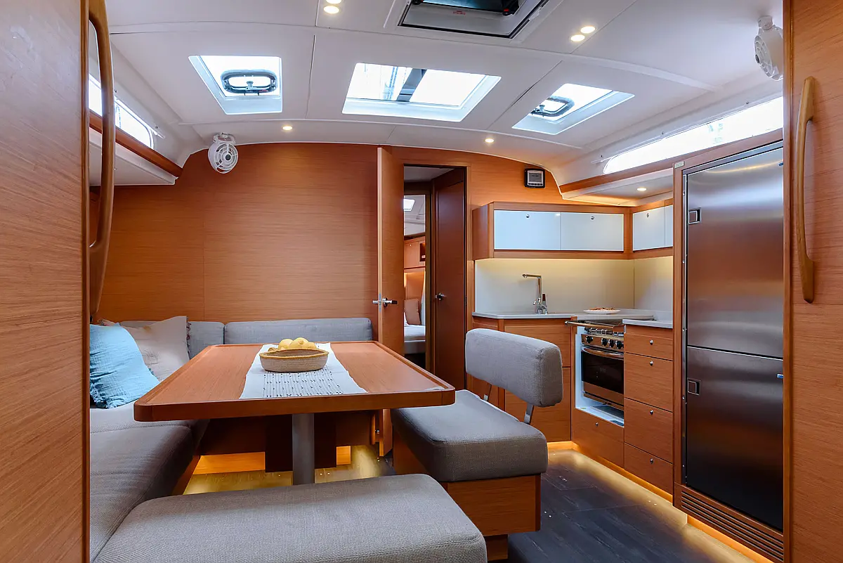 Bimini, Cockpit cushions, Swimming platform, Refrigerator, Electric toilet, Electric winches, Solar Panels, Sprayhood, Teak Cockpit, Dinghy, Water maker, Barbecue grill in cockpit, Inverter