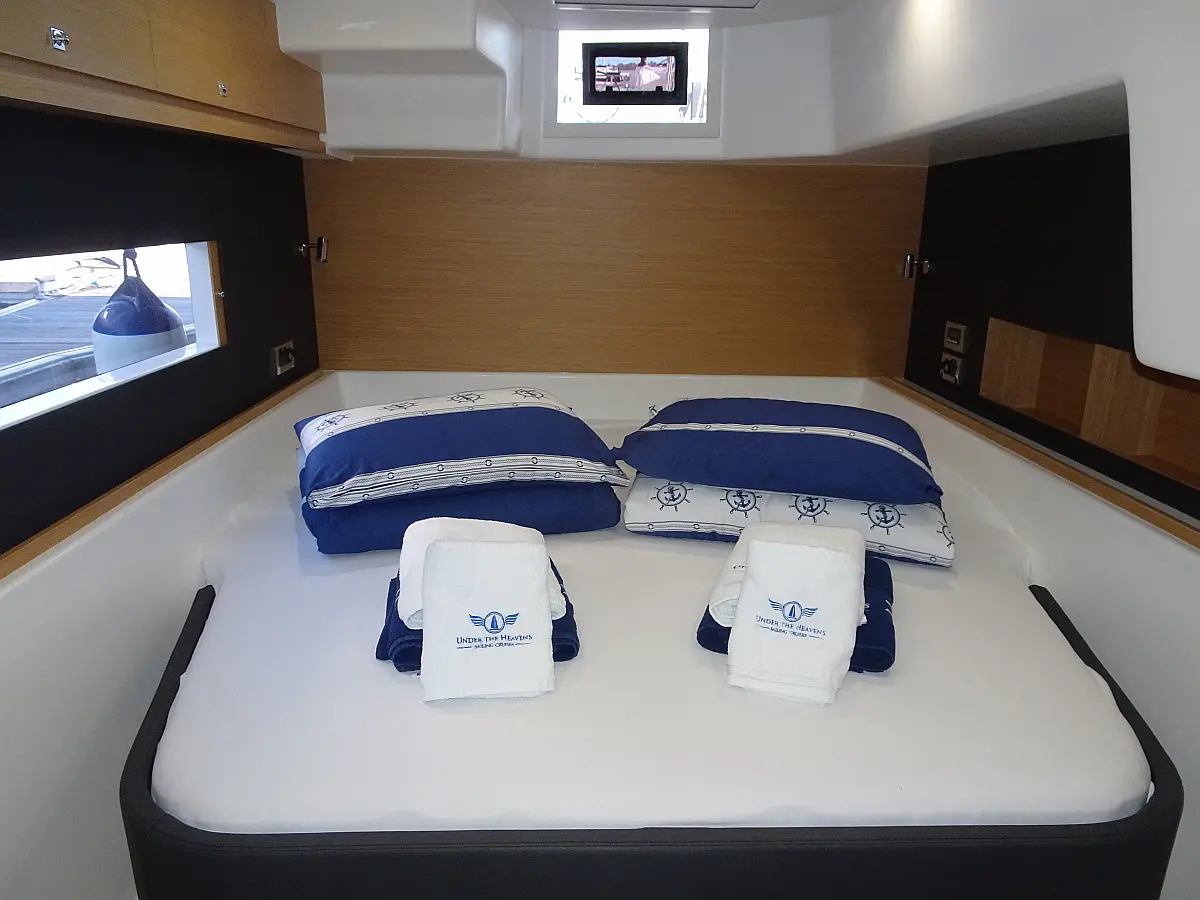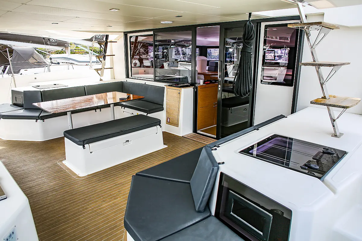 Washer/Dryer, Air condition, Generator, Sprayhood, Cockpit cushions, Outboard engine, Barbecue grill in cockpit, Bimini, Solar Panels, Electric winches
