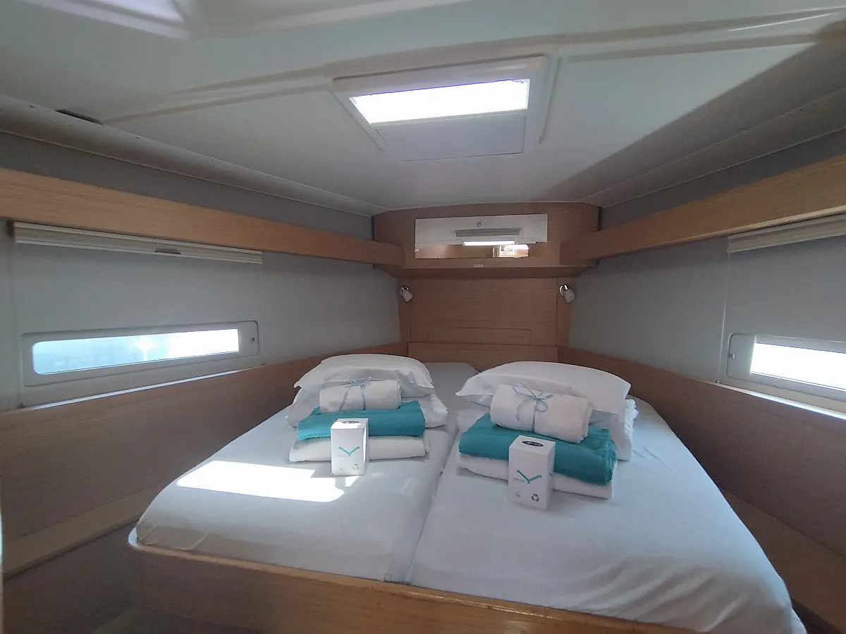 Teak Cockpit, Cockpit cushions, Barbecue grill in cockpit, Teak deck, Electric toilet, Refrigerator, Swimming platform, Electric winches, Hydraulic gangway, Inverter, Solar Panels