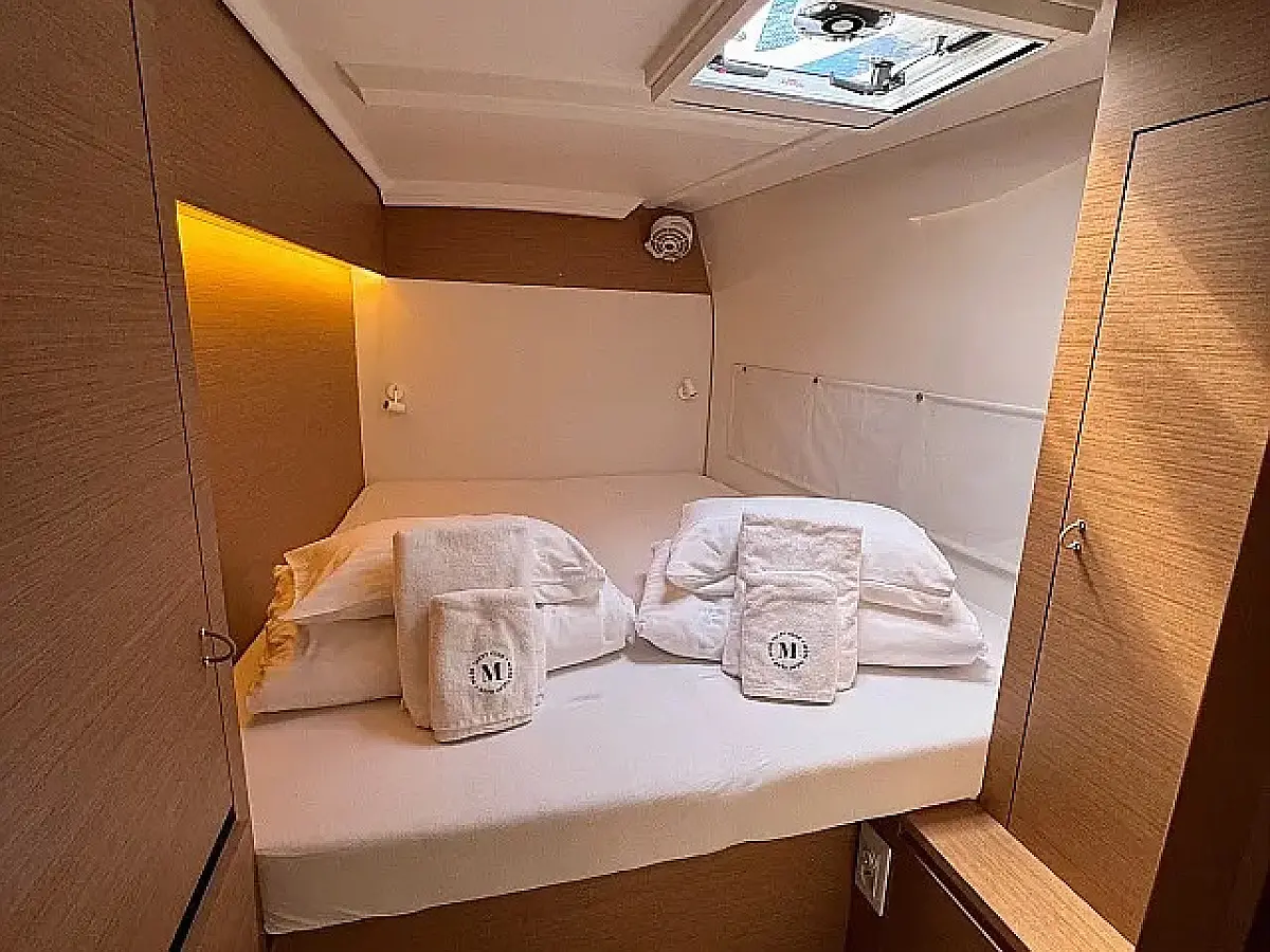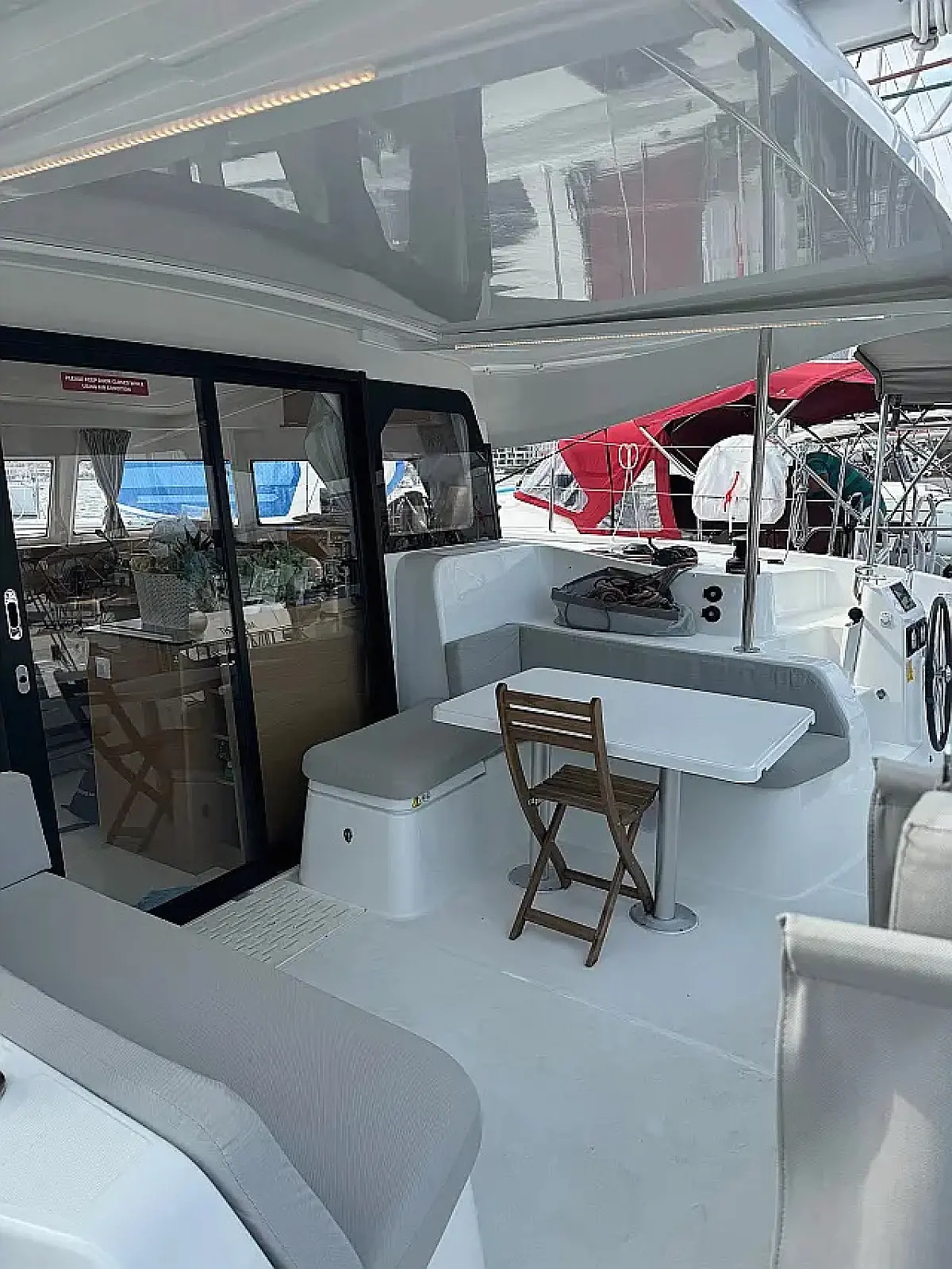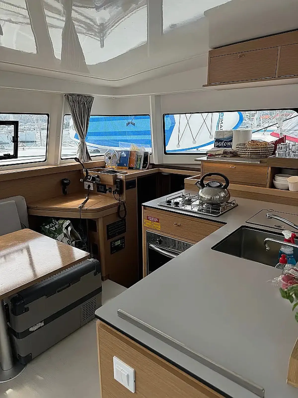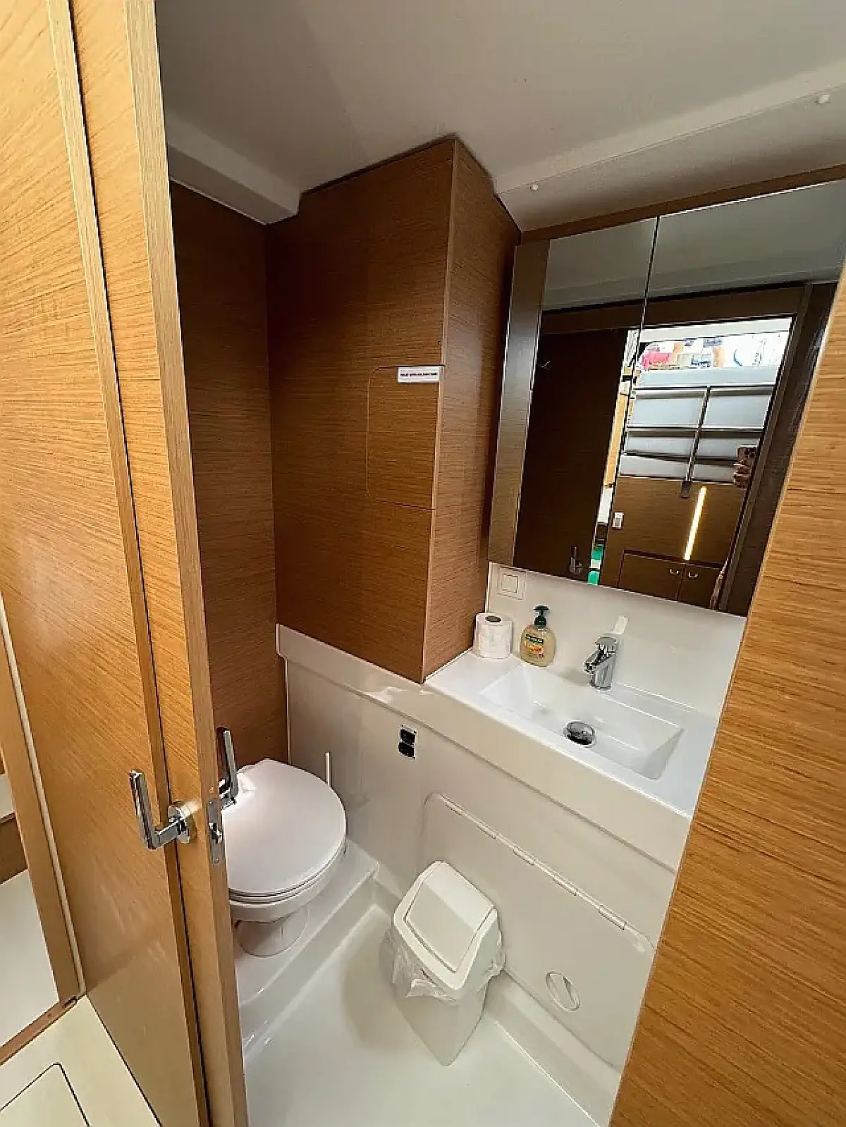 Air condition, Bimini, Cockpit cushions, Cockpit speakers, Dinghy, Coffee maker, Refrigerator, Electric toilet, Generator, Heating, Holding tank, Inverter, Outboard engine, Solar Panels, Wi-Fi & Internet