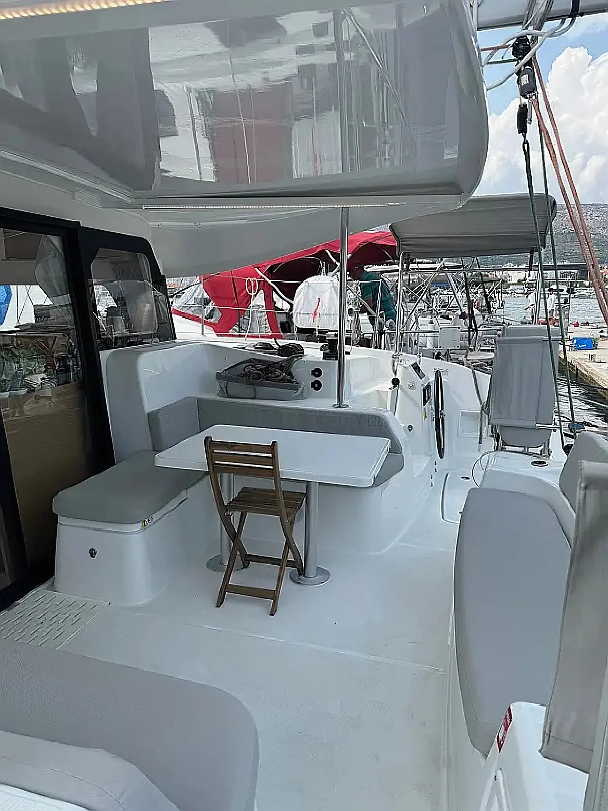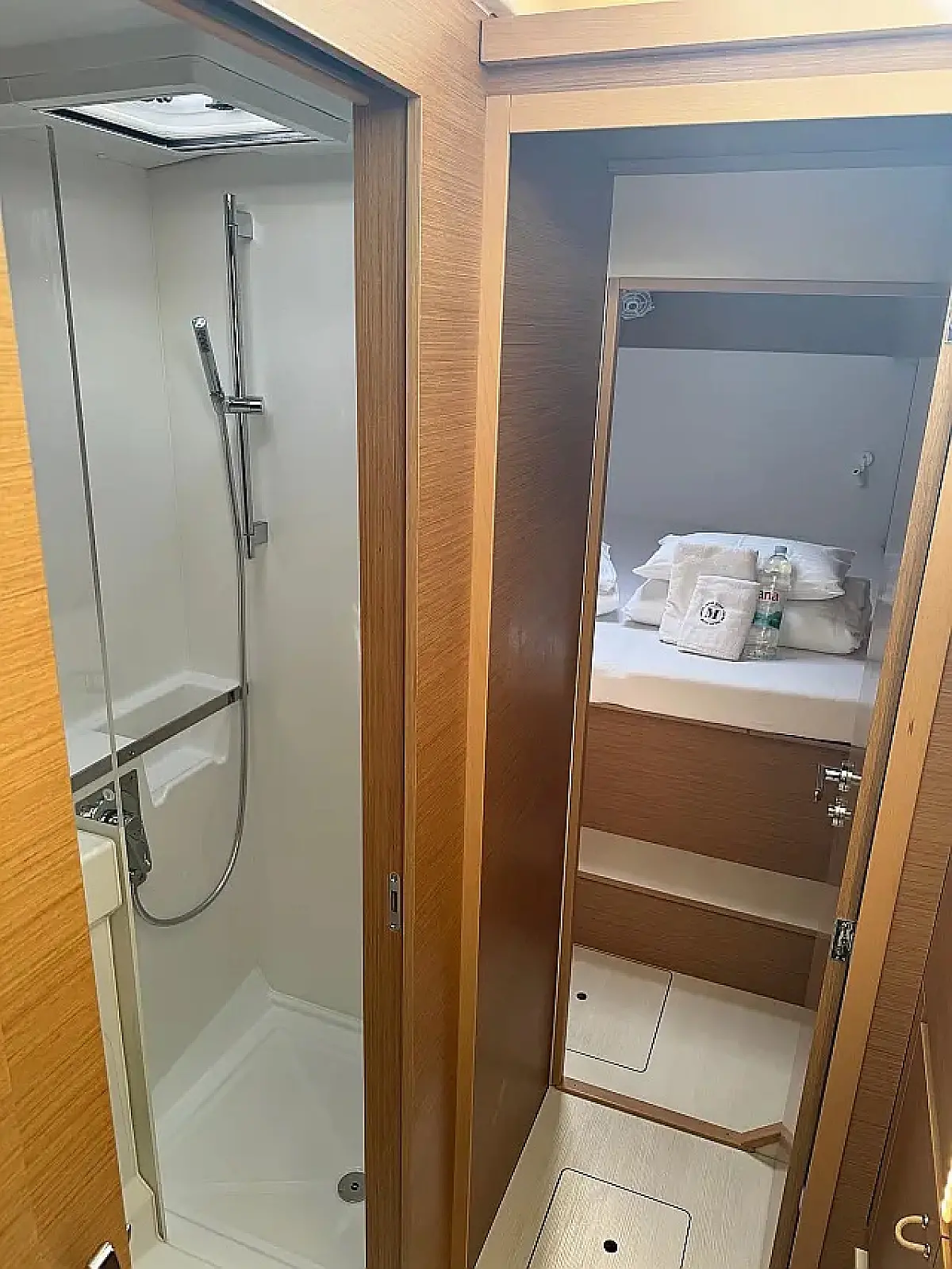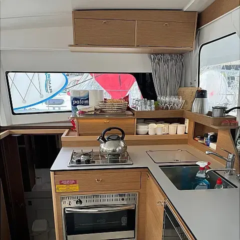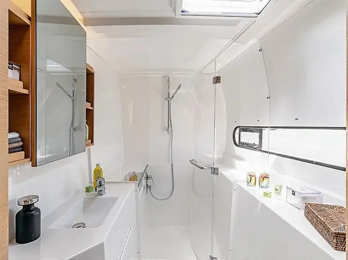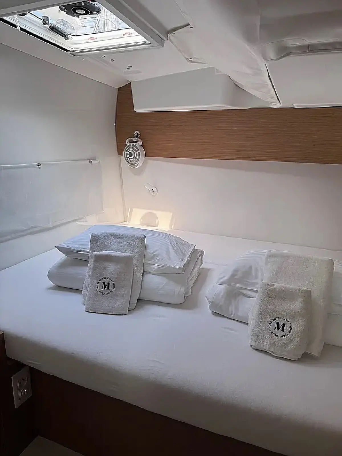 Air condition, Bimini, Cockpit cushions, Cockpit speakers, Dinghy, Coffee maker, Refrigerator, Electric toilet, Generator, Heating, Holding tank, Inverter, Outboard engine, Solar Panels, Wi-Fi & Internet