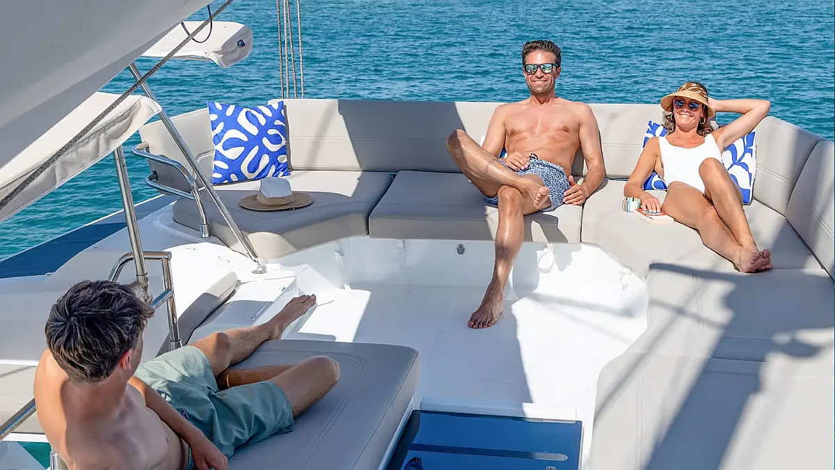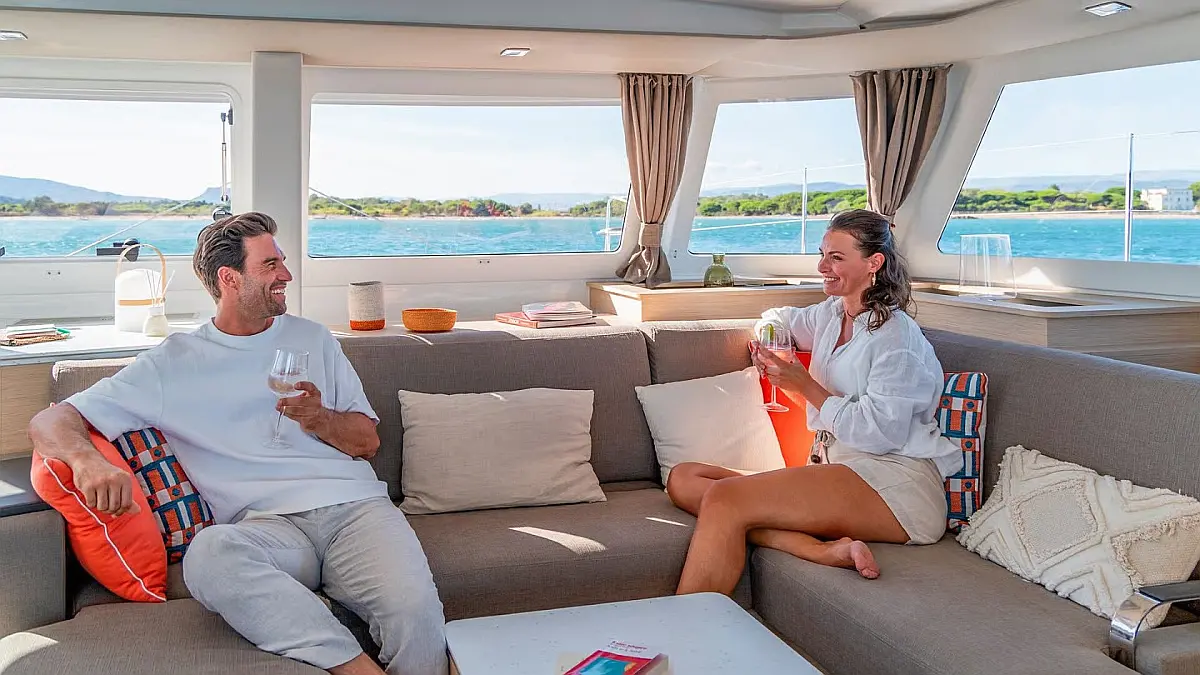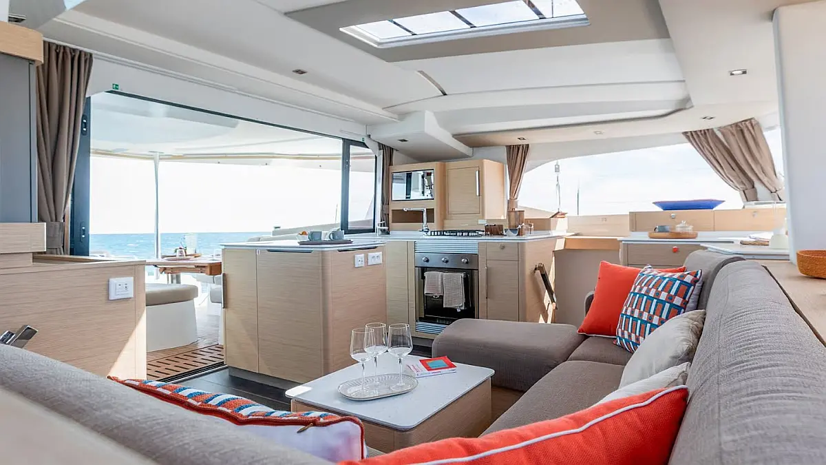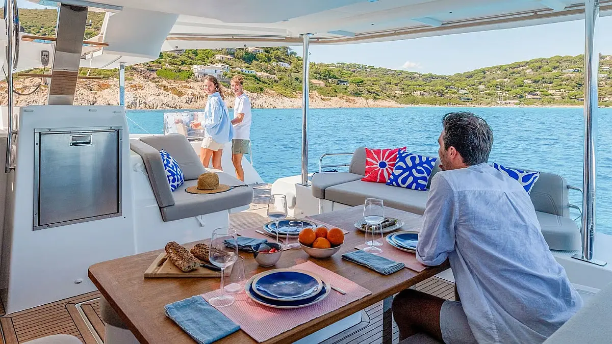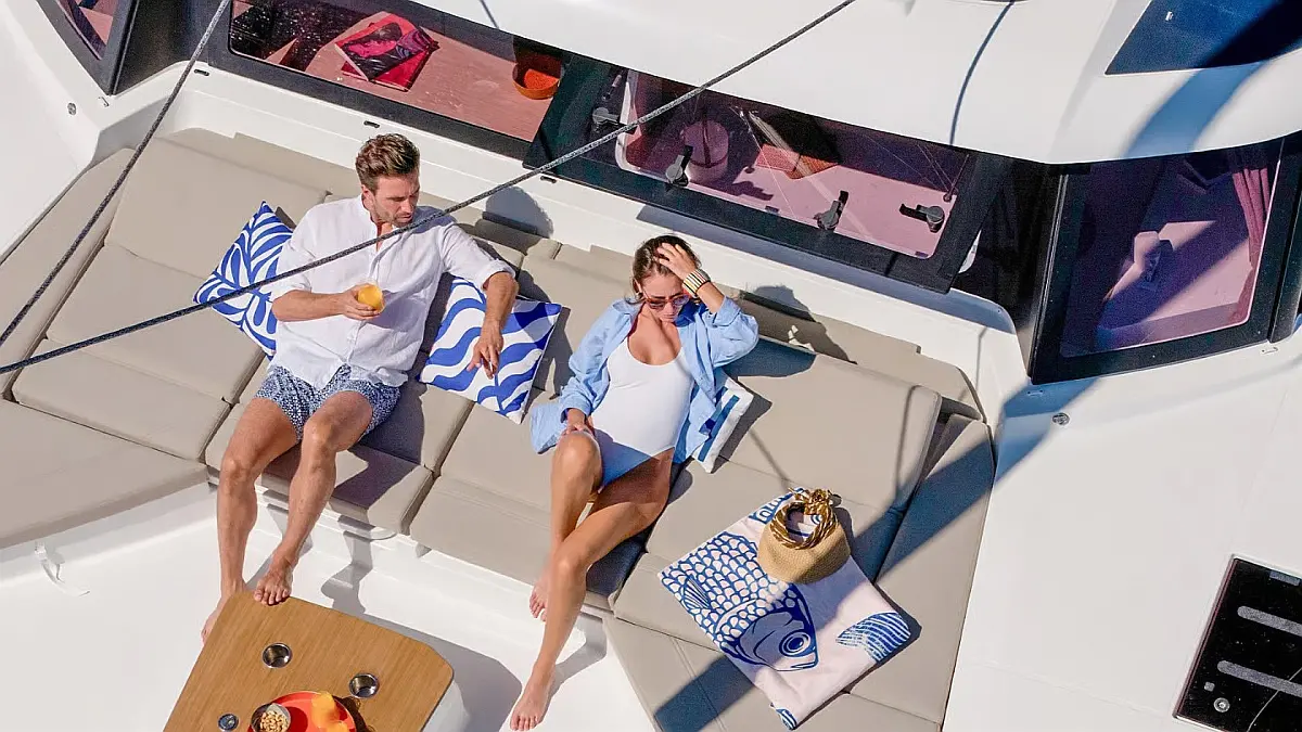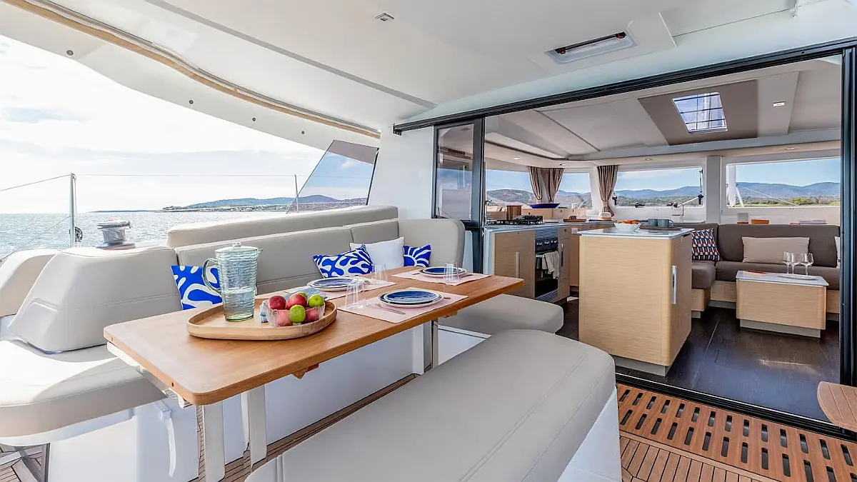 Bimini, Refrigerator, Barbecue grill in cockpit, Dinghy, Teak Cockpit, Coffee maker, Air condition, Electric winches, Generator, Heating, Solar Panels, Cockpit cushions