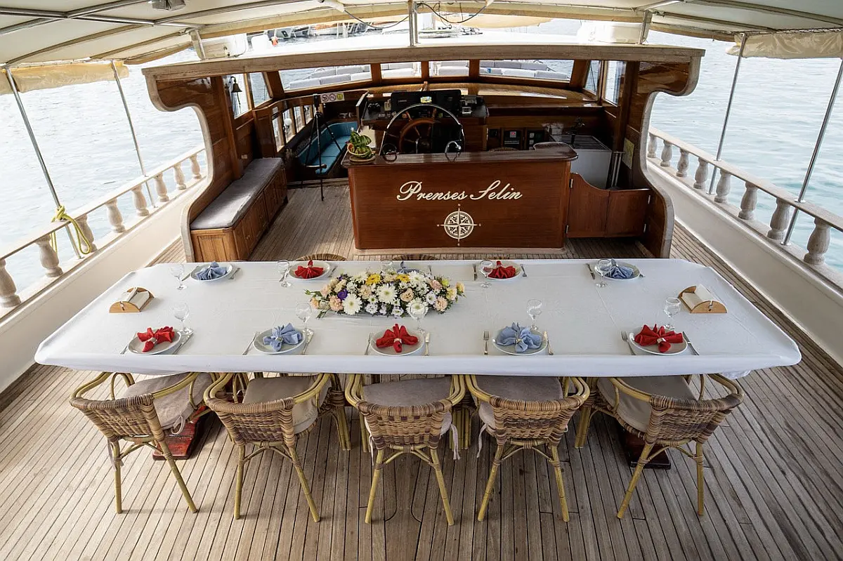 The 37.00 m Gulet - Prenses Selin Gulet, built in 2005, is an ideal yacht for exploring the Turkey. With 8 comfortable cabins, 8 WC/showers, and enough berths to accommodate up to 16 guests, it provides ample space for relaxation and entertainment. This boat is available for charter.