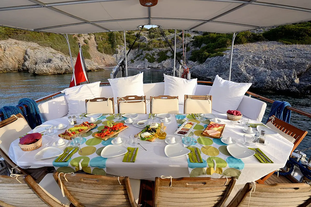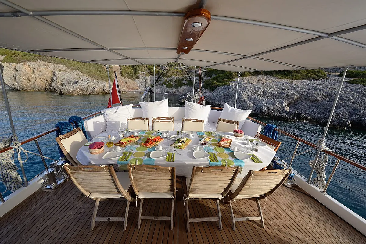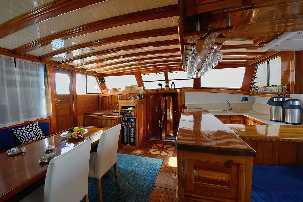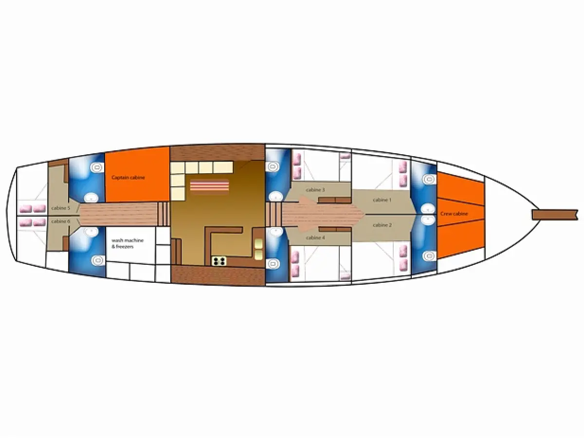 Outboard engine, Dinghy, Coffee maker, Ice maker, Refrigerator, Air condition, Generator, Heating