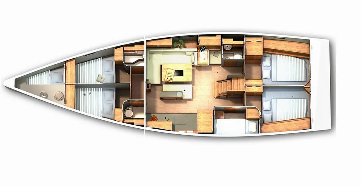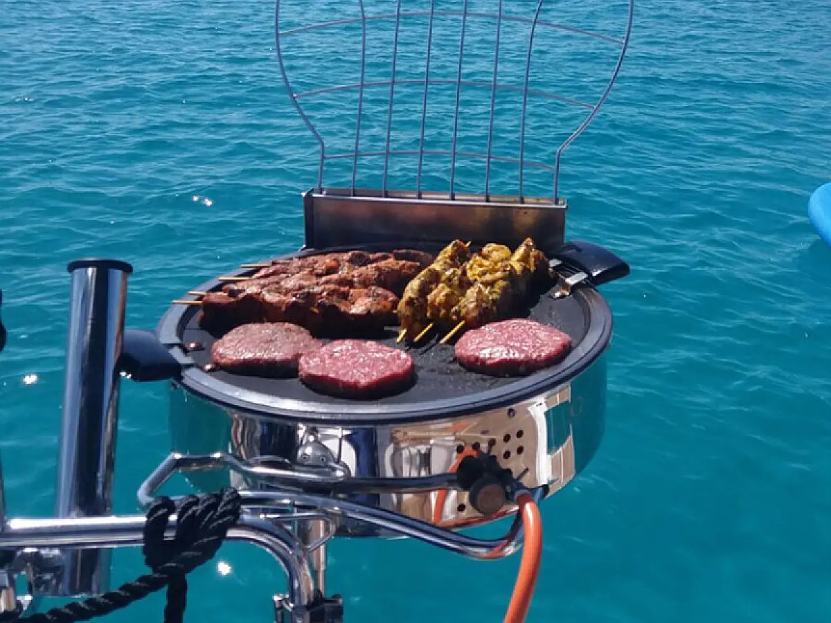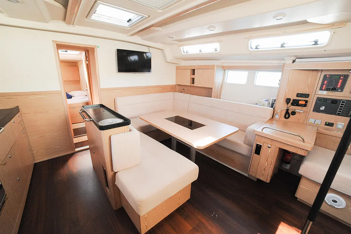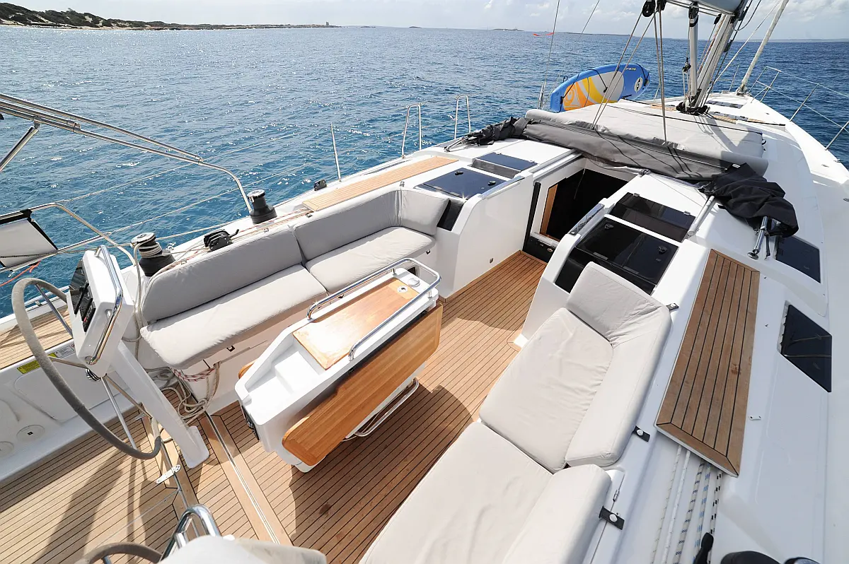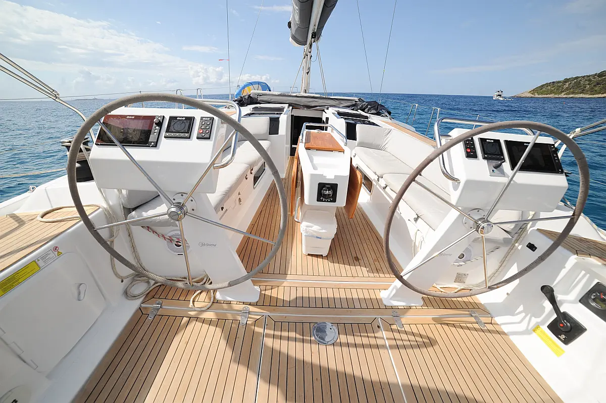Teak deck, Electric winches, Cockpit cushions, Refrigerator, Wi-Fi & Internet, Teak Cockpit, Coffee maker, Electric toilet, Water maker