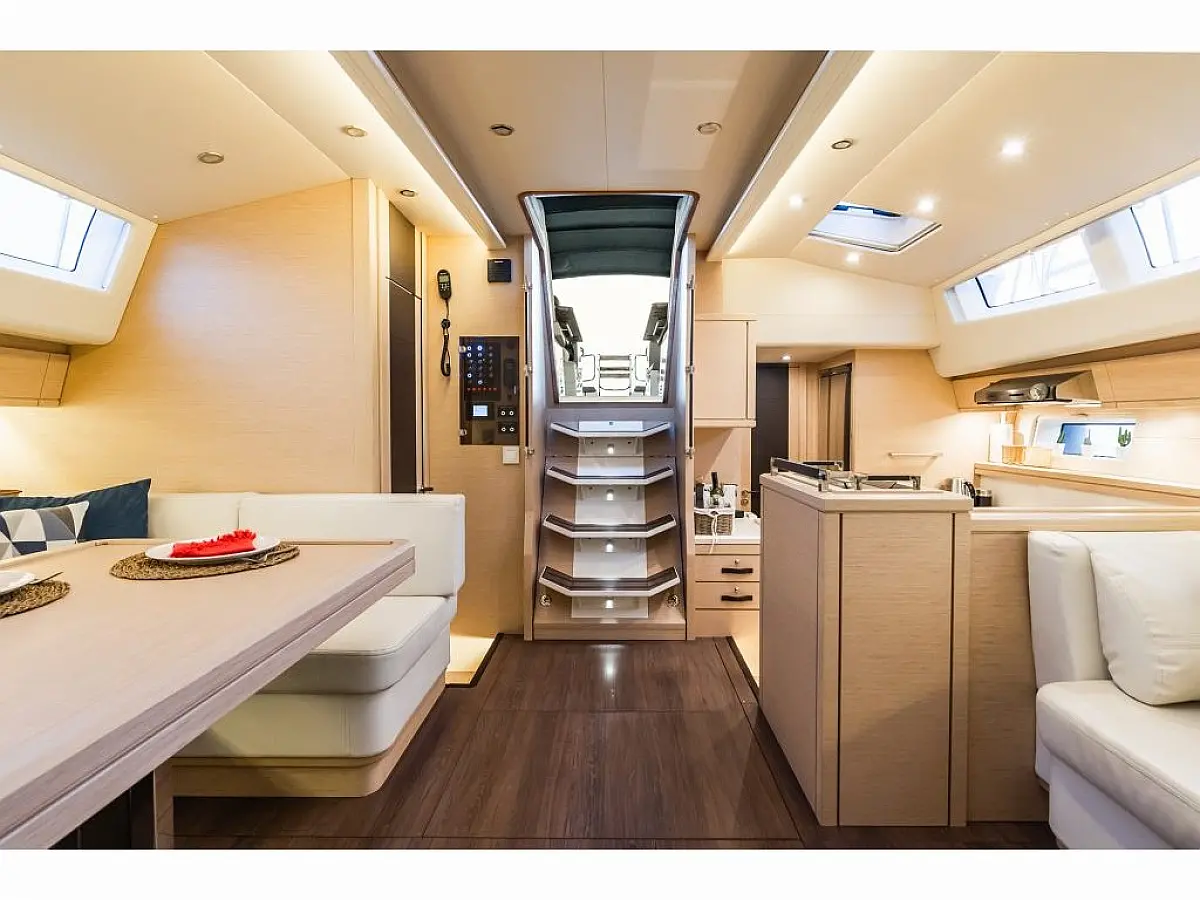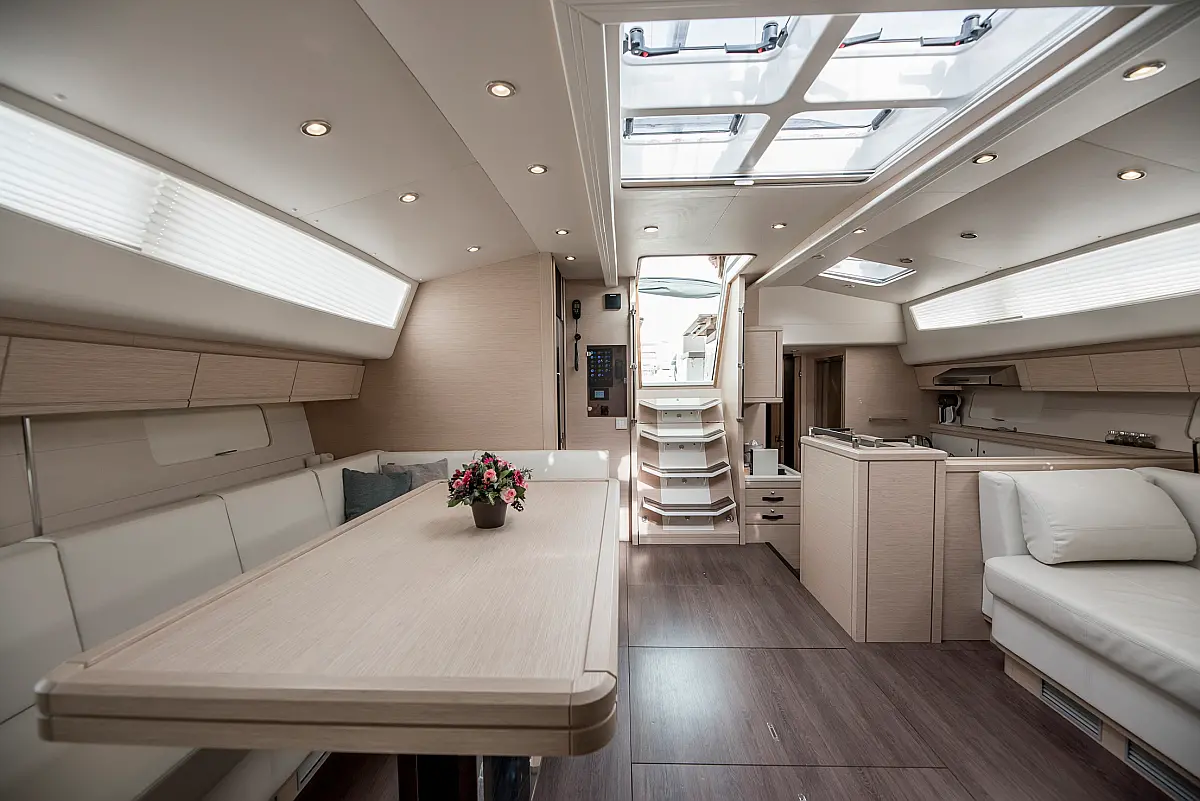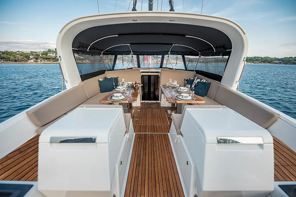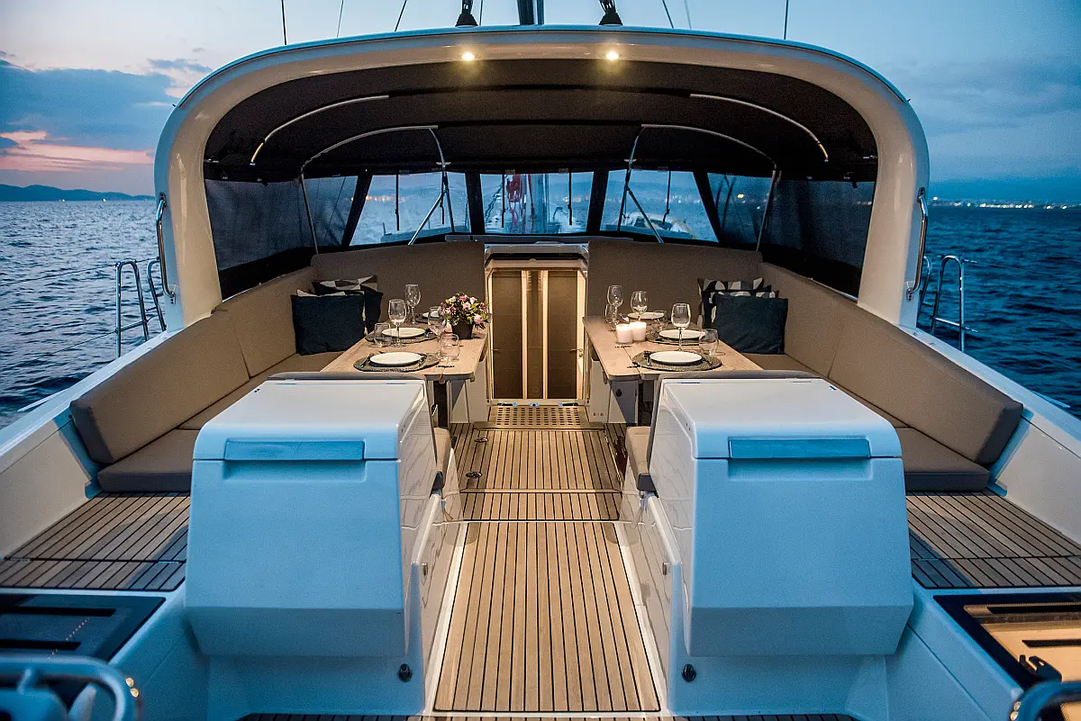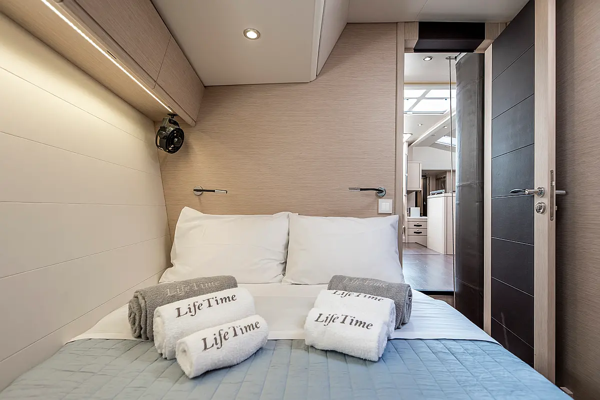 Dinghy, Outboard engine, Bimini, Cockpit cushions, Teak Cockpit, Solar Panels, Air condition, Convertible table, Electric toilet, Refrigerator, Generator, Hydraulic gangway, Ice maker, Wi-Fi & Internet, Water maker