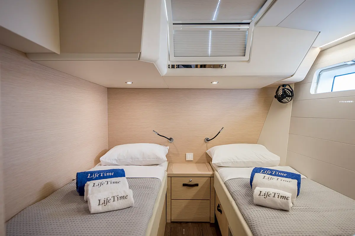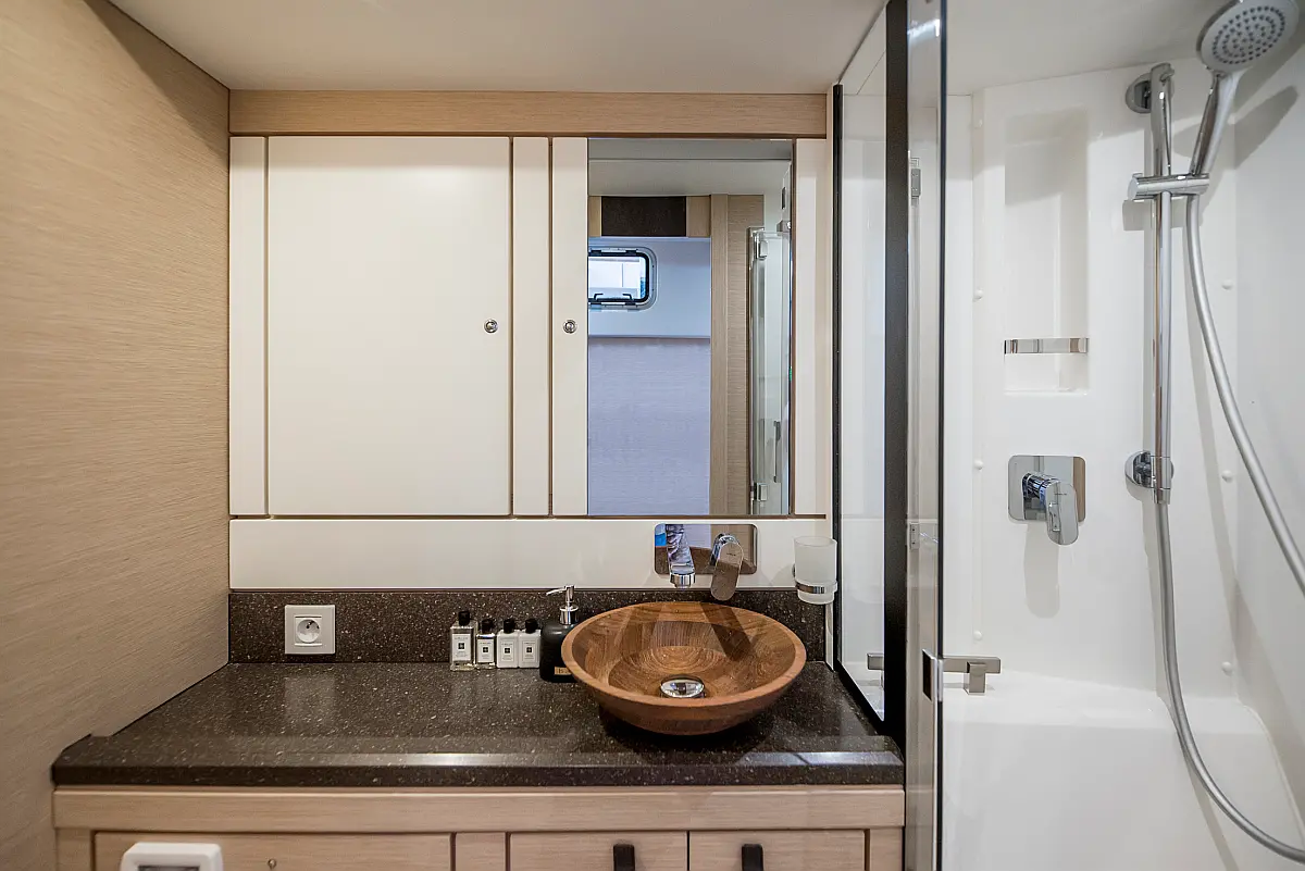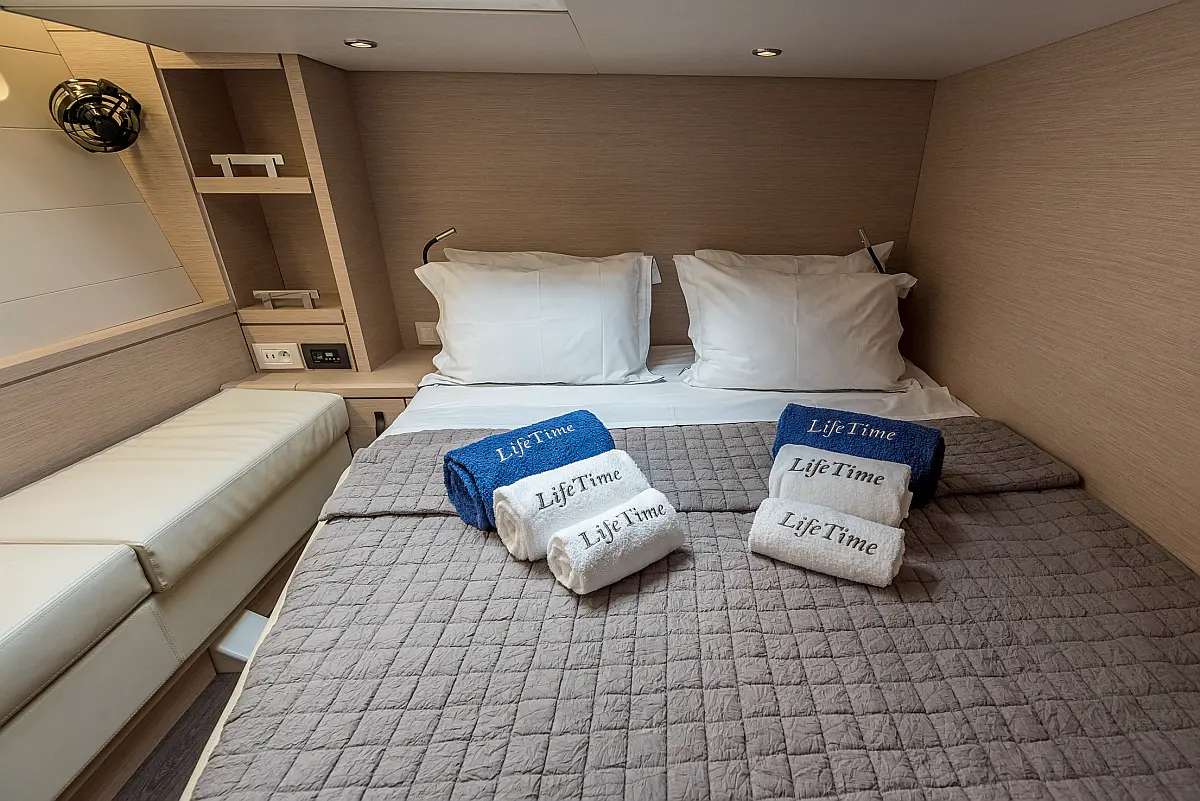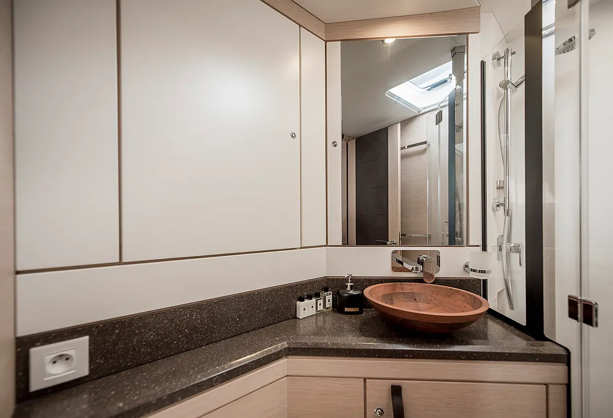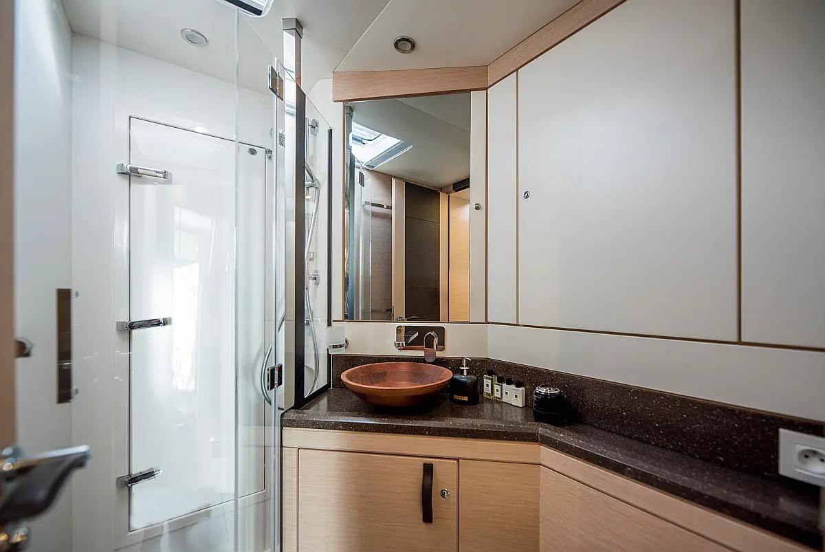 Dinghy, Outboard engine, Bimini, Cockpit cushions, Teak Cockpit, Solar Panels, Air condition, Convertible table, Electric toilet, Refrigerator, Generator, Hydraulic gangway, Ice maker, Wi-Fi & Internet, Water maker
