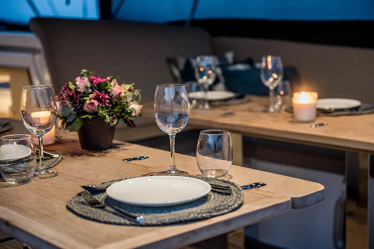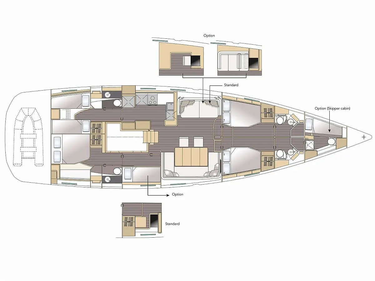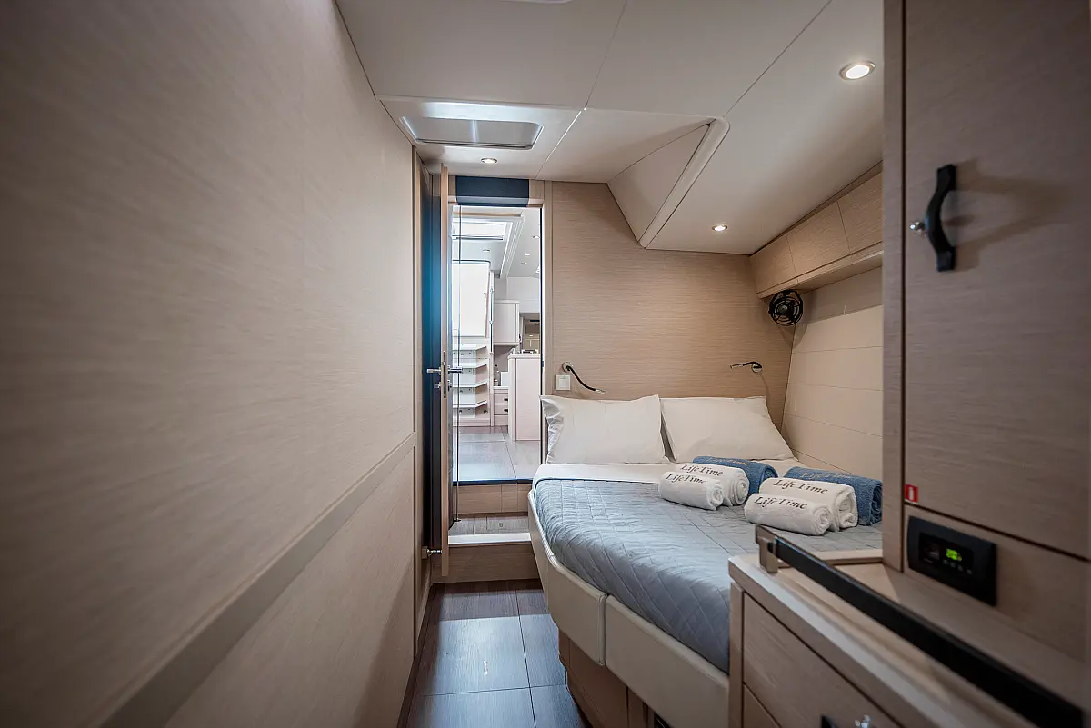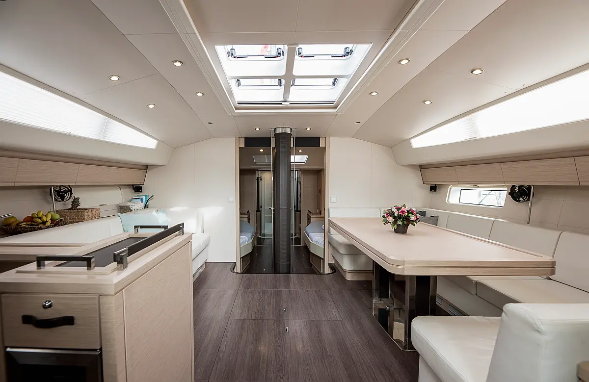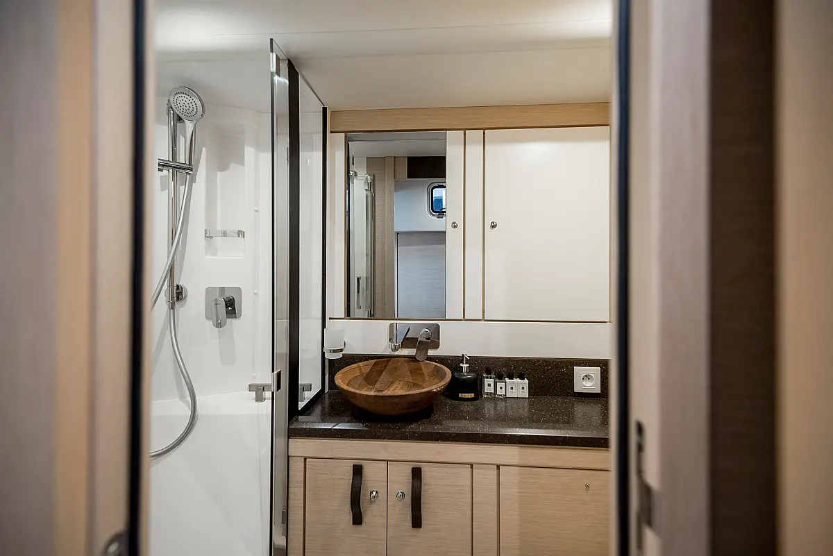 Dinghy, Outboard engine, Bimini, Cockpit cushions, Teak Cockpit, Solar Panels, Air condition, Convertible table, Electric toilet, Refrigerator, Generator, Hydraulic gangway, Ice maker, Wi-Fi & Internet, Water maker