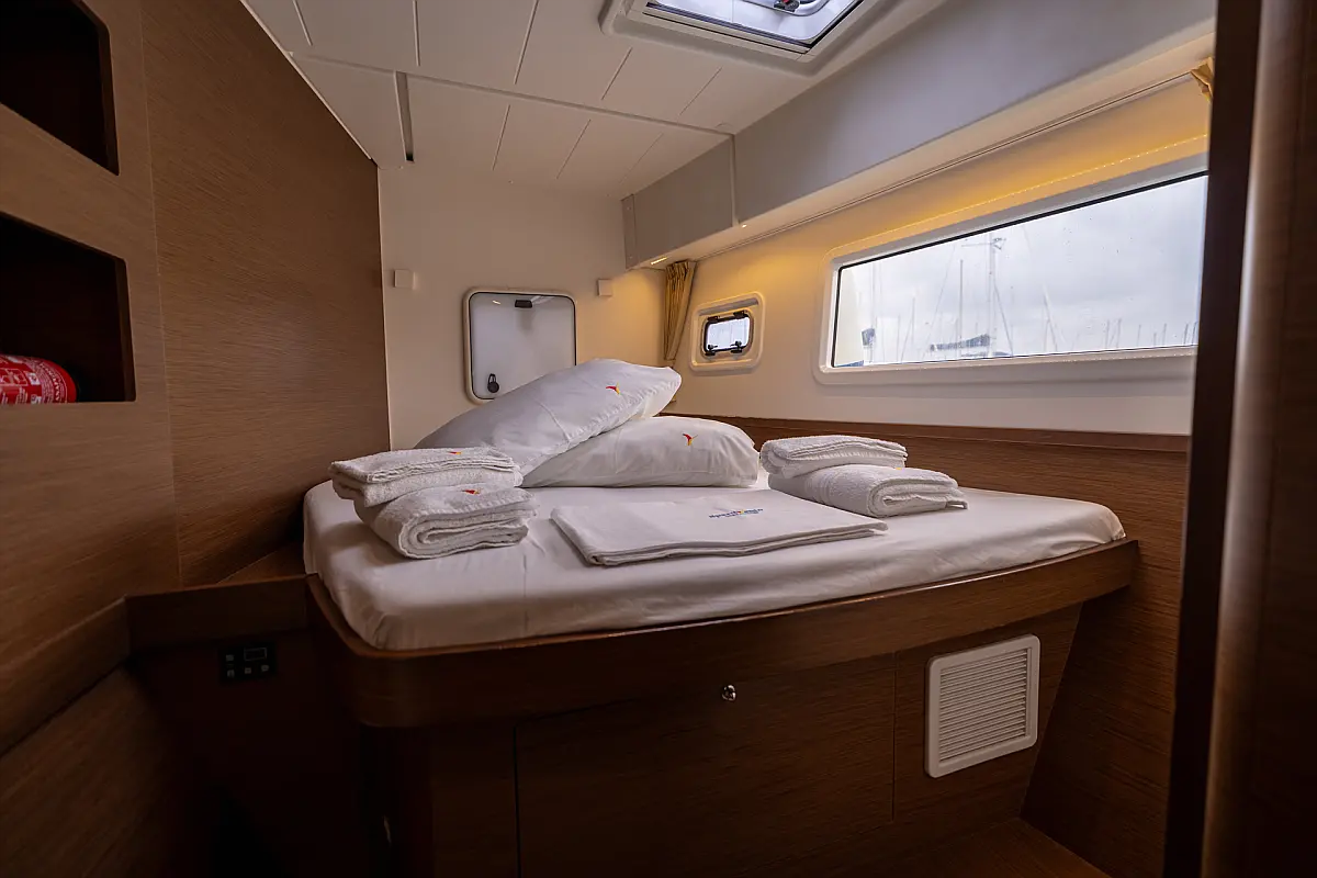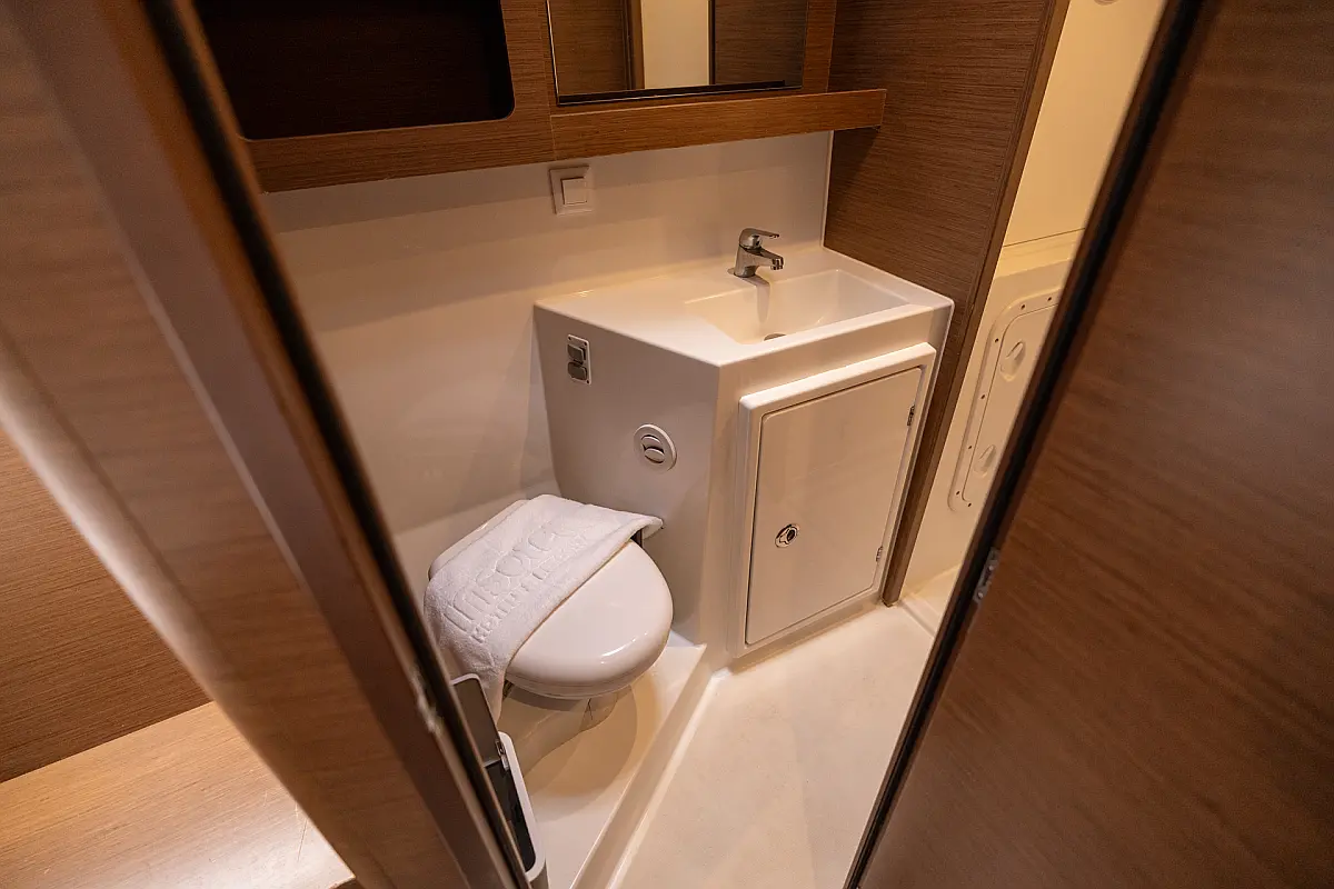 Dinghy, Outboard engine, Electric winches, Air condition, Inverter, Cockpit cushions, Water maker, Generator, Electric toilet, Refrigerator