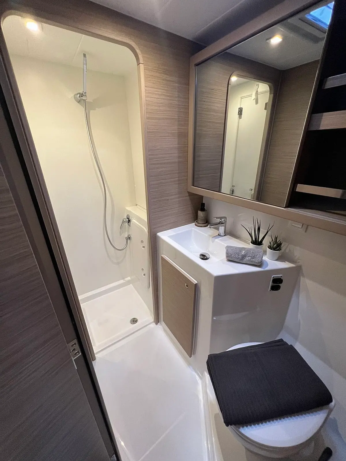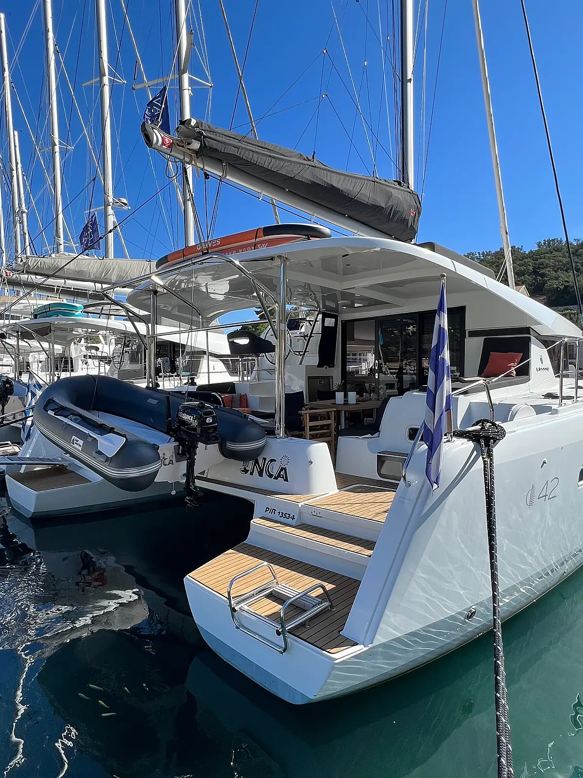 Wi-Fi & Internet, Ice maker, Teak deck, Air condition, Water maker, Generator, Inverter, Electric toilet, Cockpit cushions, Coffee maker