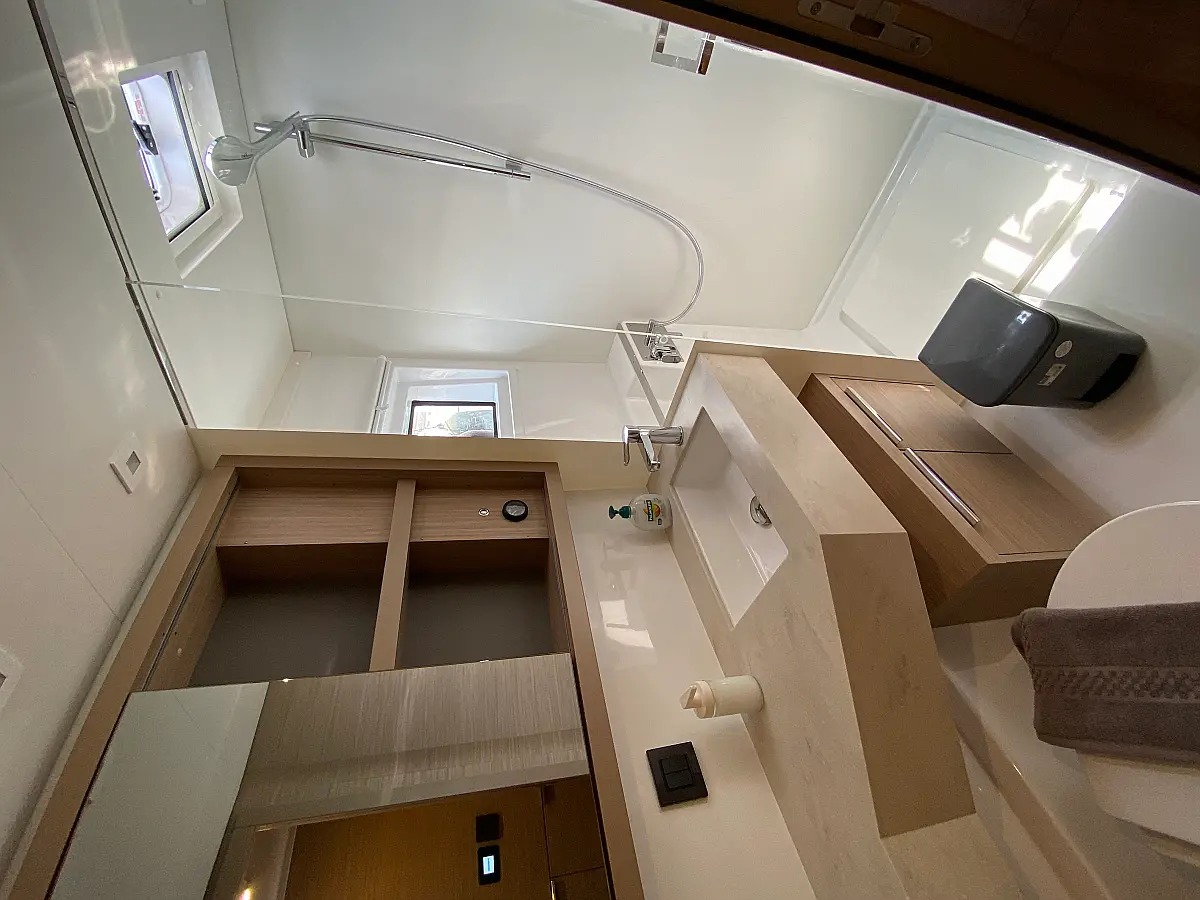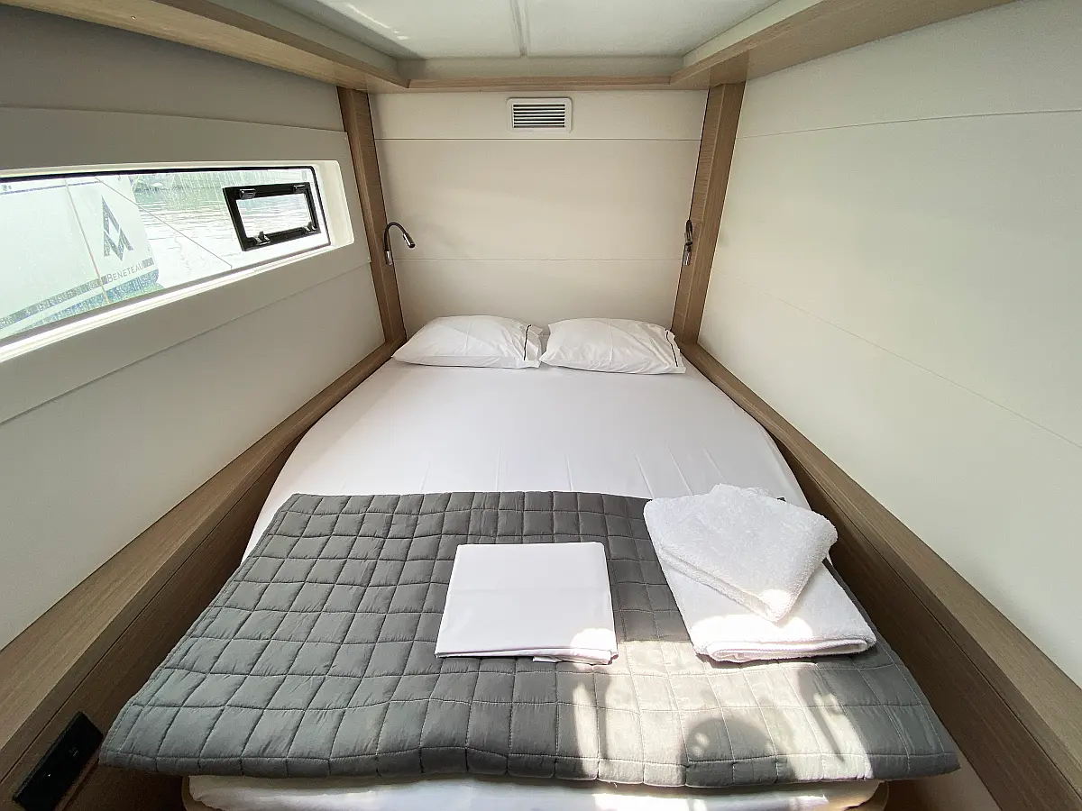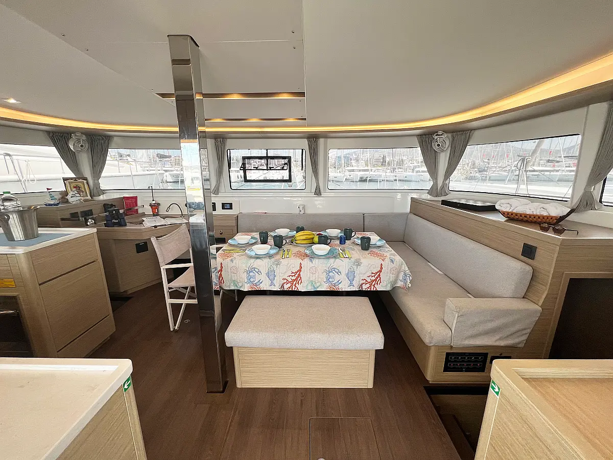 Air condition, Wi-Fi & Internet, Hydraulic gangway, Teak Cockpit, Bimini, Cockpit cushions, Dinghy, Outboard engine, Cockpit speakers, Generator, Inverter, Electric winches, Electric toilet, Water maker, Refrigerator, Coffee maker, Sprayhood