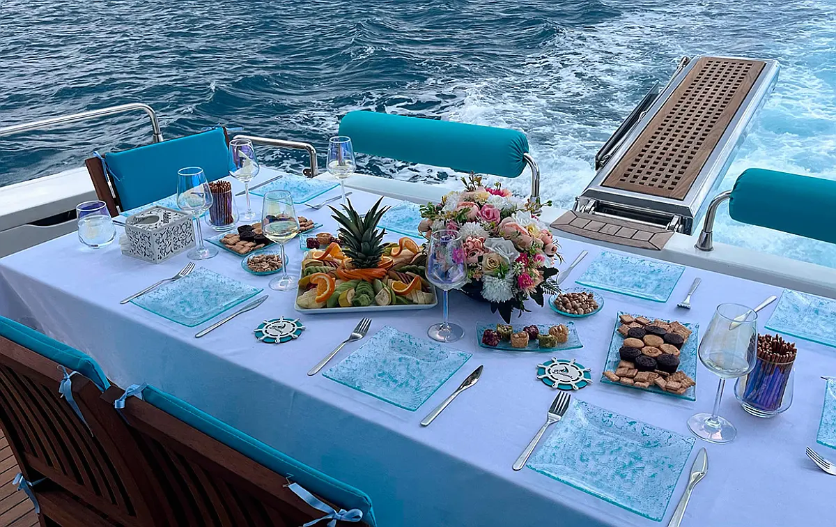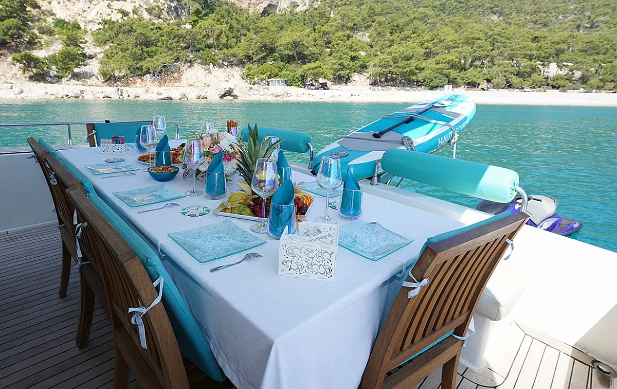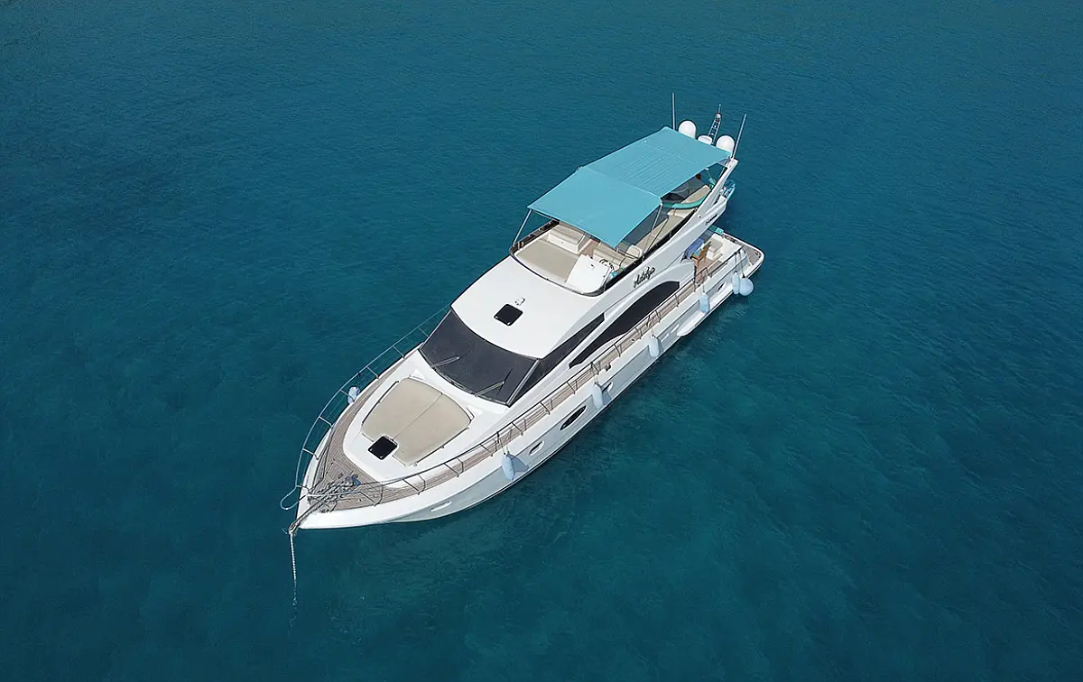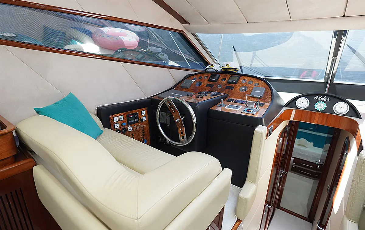 Generator, Bimini, Teak deck, Flybridge, Air condition, Refrigerator, Dishwasher, Ice maker, Heating, Water maker