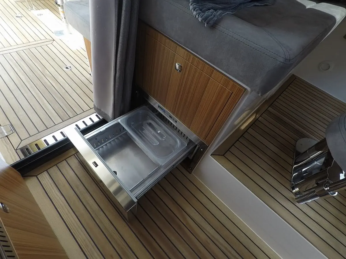 Get direct access from the helm to the starboard passageway through a sliding door. With a quick movement, the skipper can step out from the helm to facilitate mooring. Docking and handling without a crew has never been so easy!