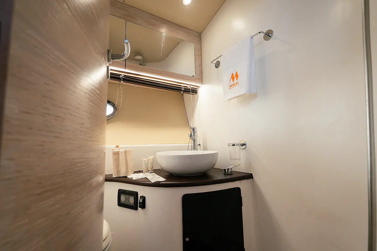 The 15.60 m Mig 50 Motoryacht, built in 2005, is an ideal yacht for exploring the Italy. With 3 comfortable cabins, 2 WC/showers, and enough berths to accommodate up to 6 guests, it provides ample space for relaxation and entertainment. This boat is available for charter.