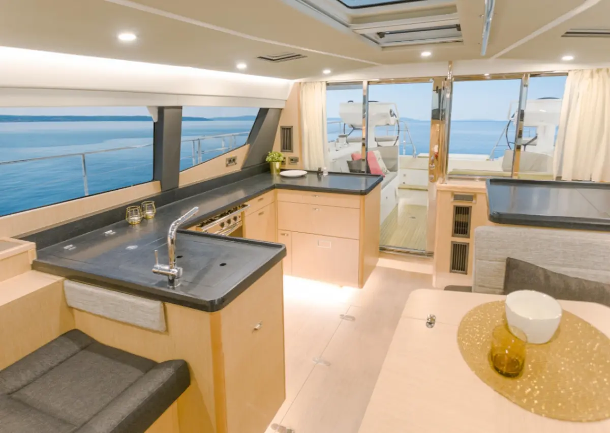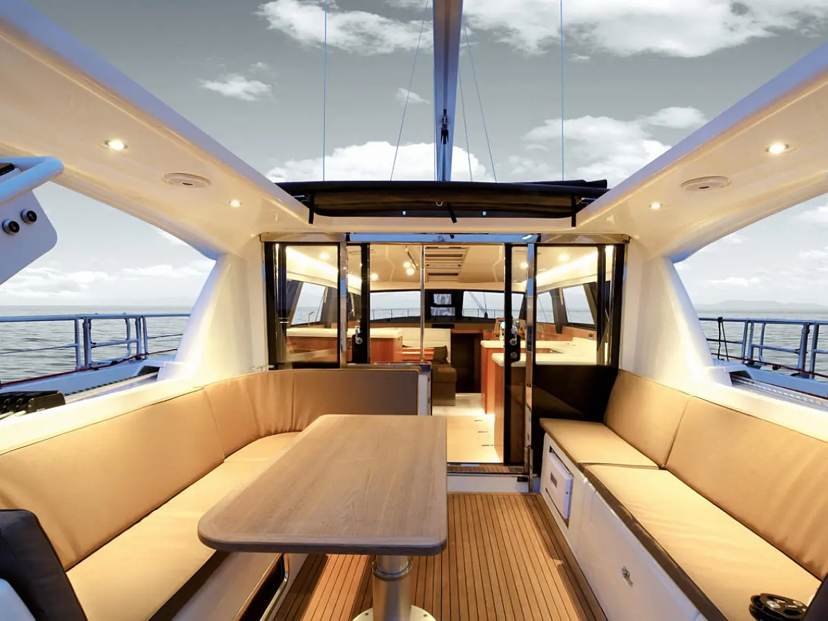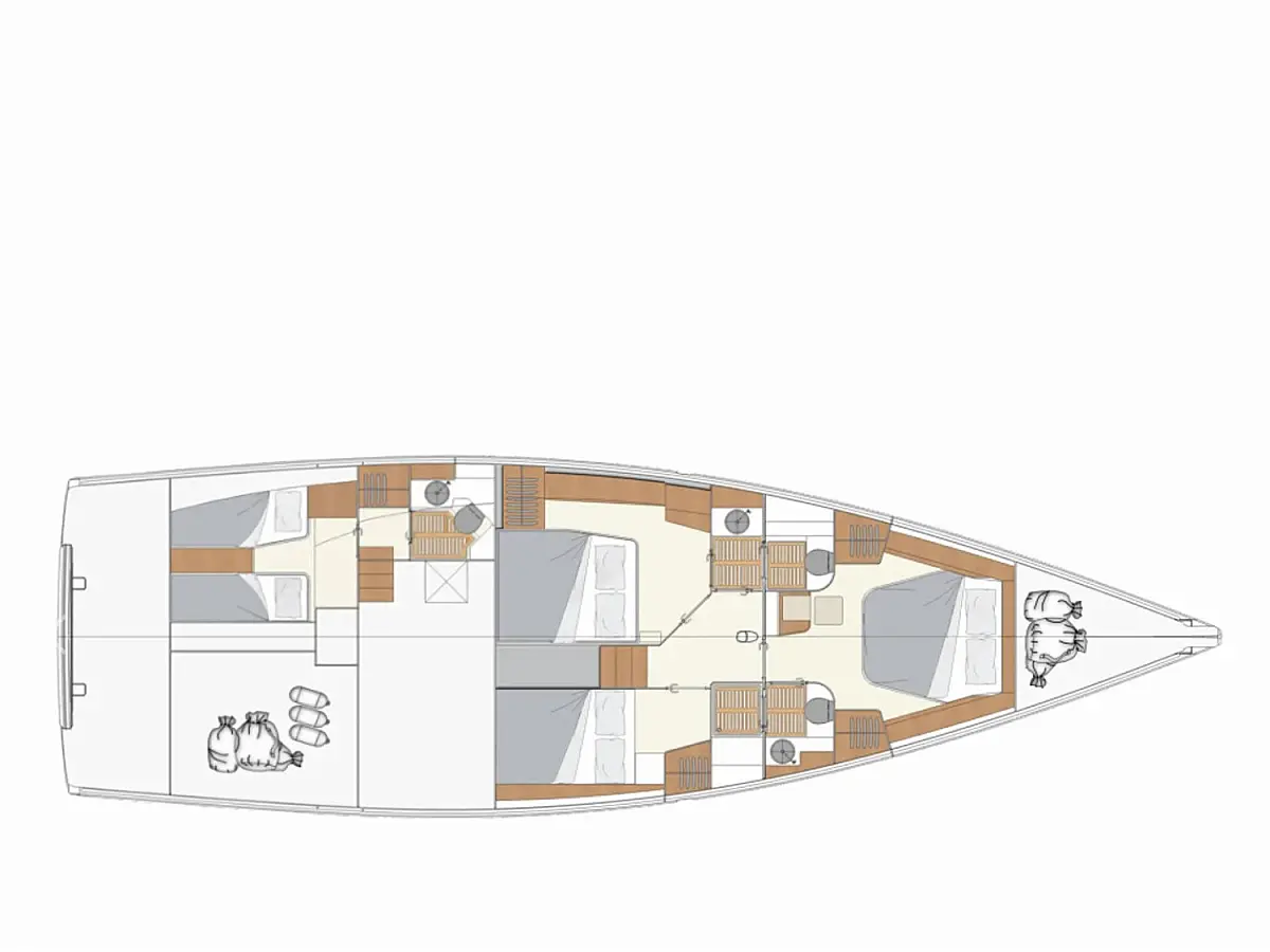 Heating, Swimming platform, Teak deck, Air condition, Generator, Water maker, Bimini, Coffee maker, Cockpit cushions, Electric winches, Refrigerator, Solar Panels, Dinghy