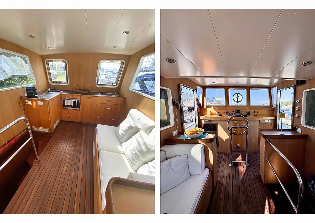 Bimini, Cockpit cushions, Electric toilet, Air condition, Coffee maker, Generator, Dinghy