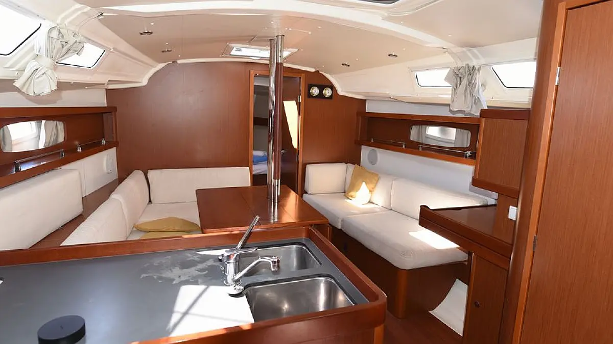 Cockpit speakers, Cockpit cushions, Refrigerator, Teak Cockpit, Holding tank, Sprayhood, Dinghy, Bimini, Solar Panels, Inverter