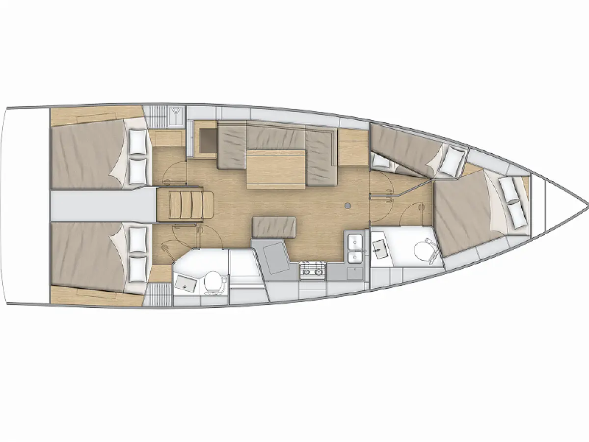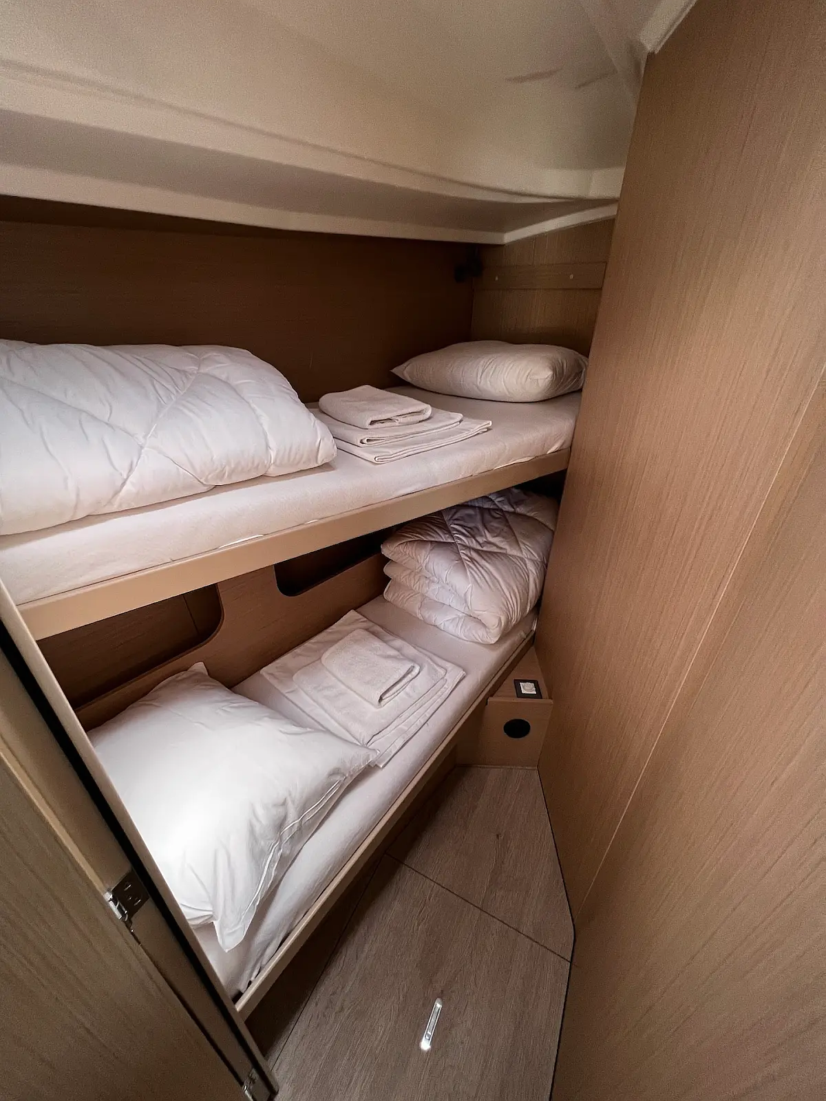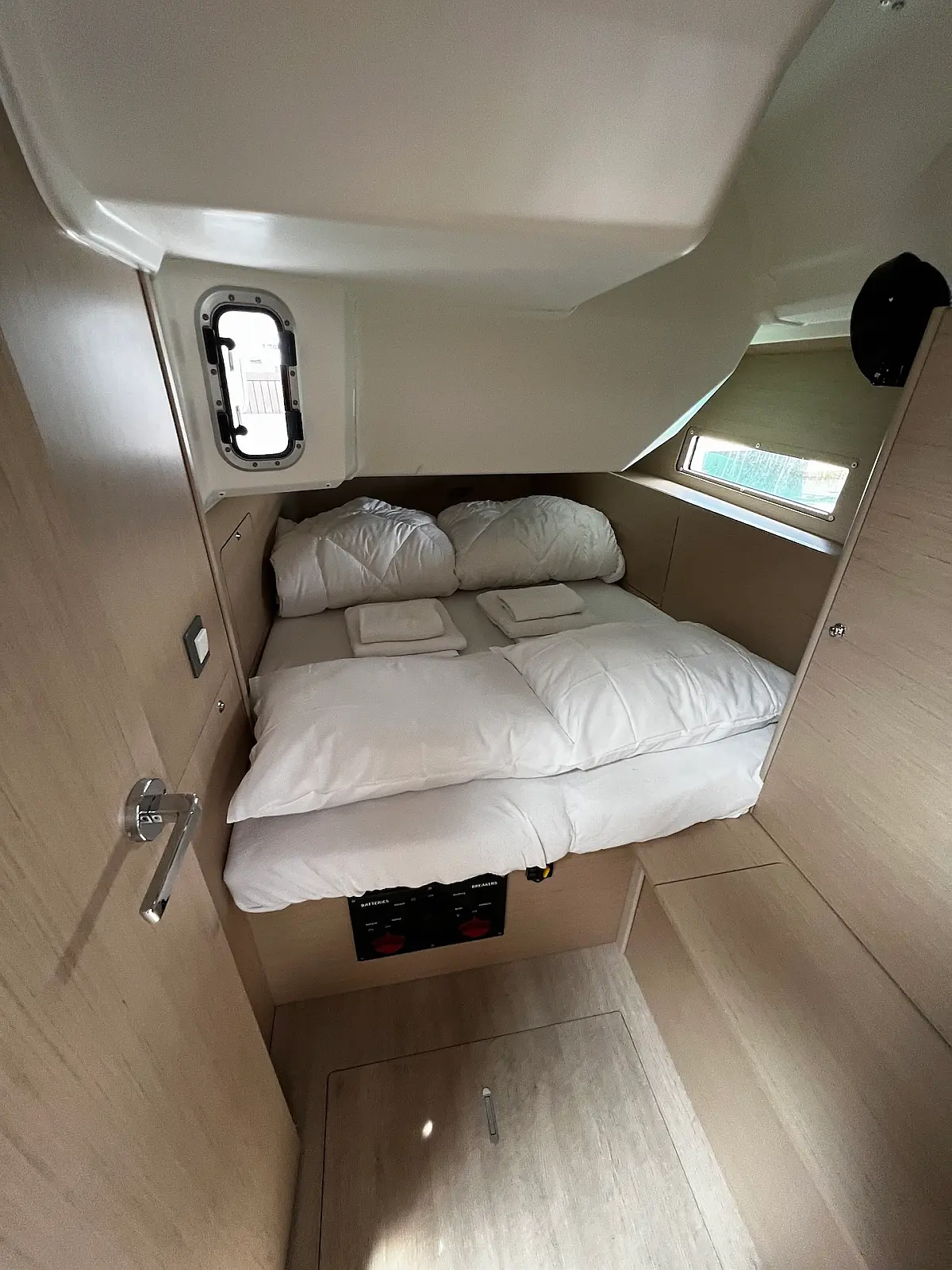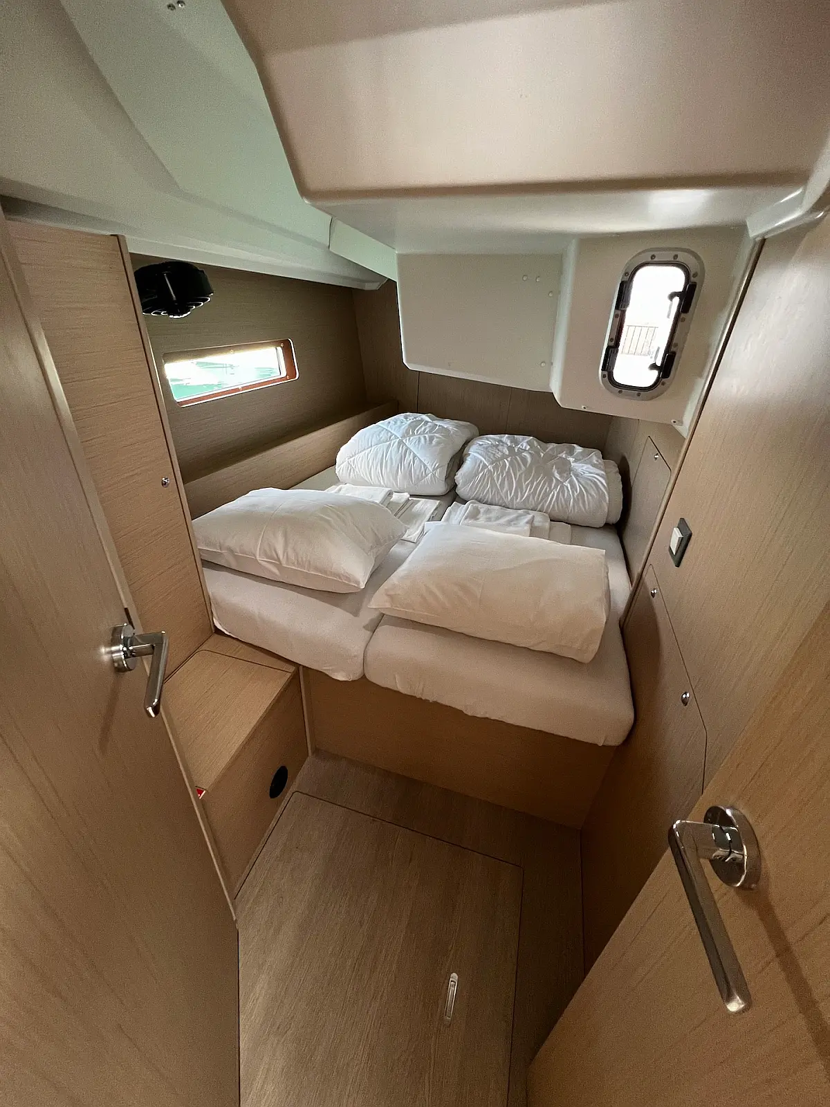 Refrigerator, Dinghy, Heating, Solar Panels, Electric toilet, Bimini, Swimming platform, Cockpit cushions, Sprayhood