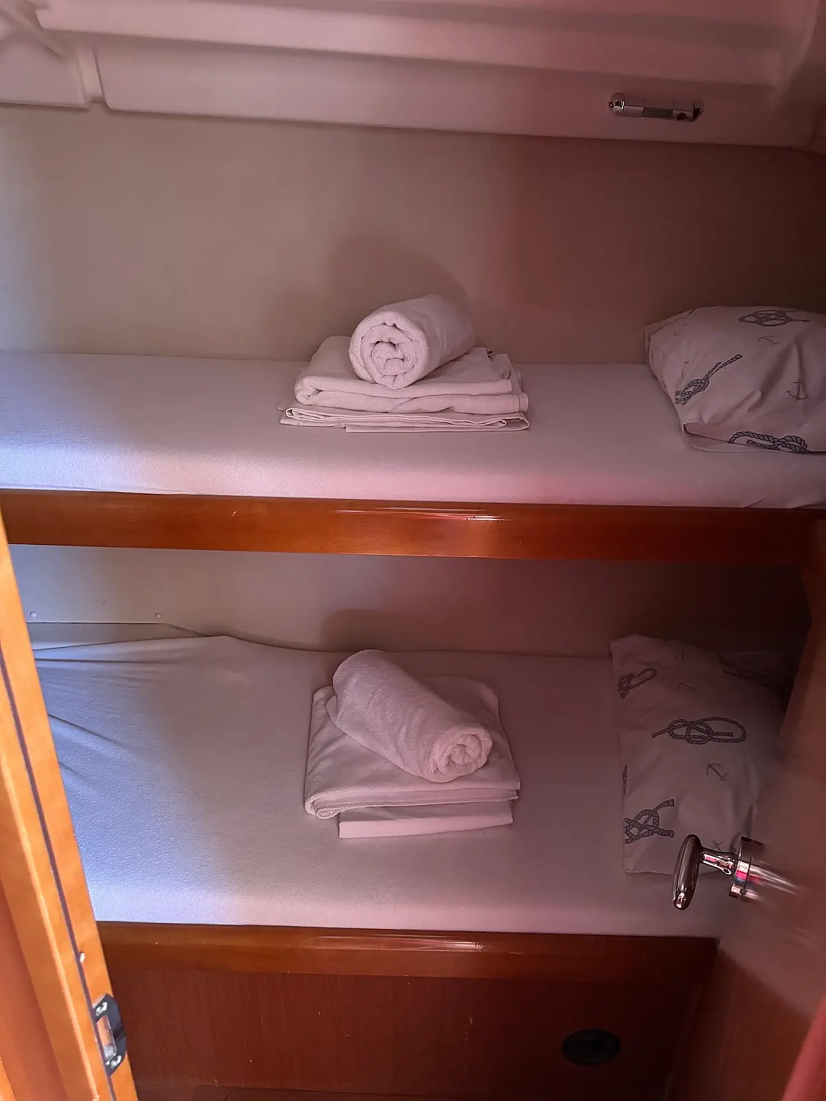 Refrigerator, Dinghy, Heating, Teak deck, Bimini, Teak Cockpit, Sprayhood