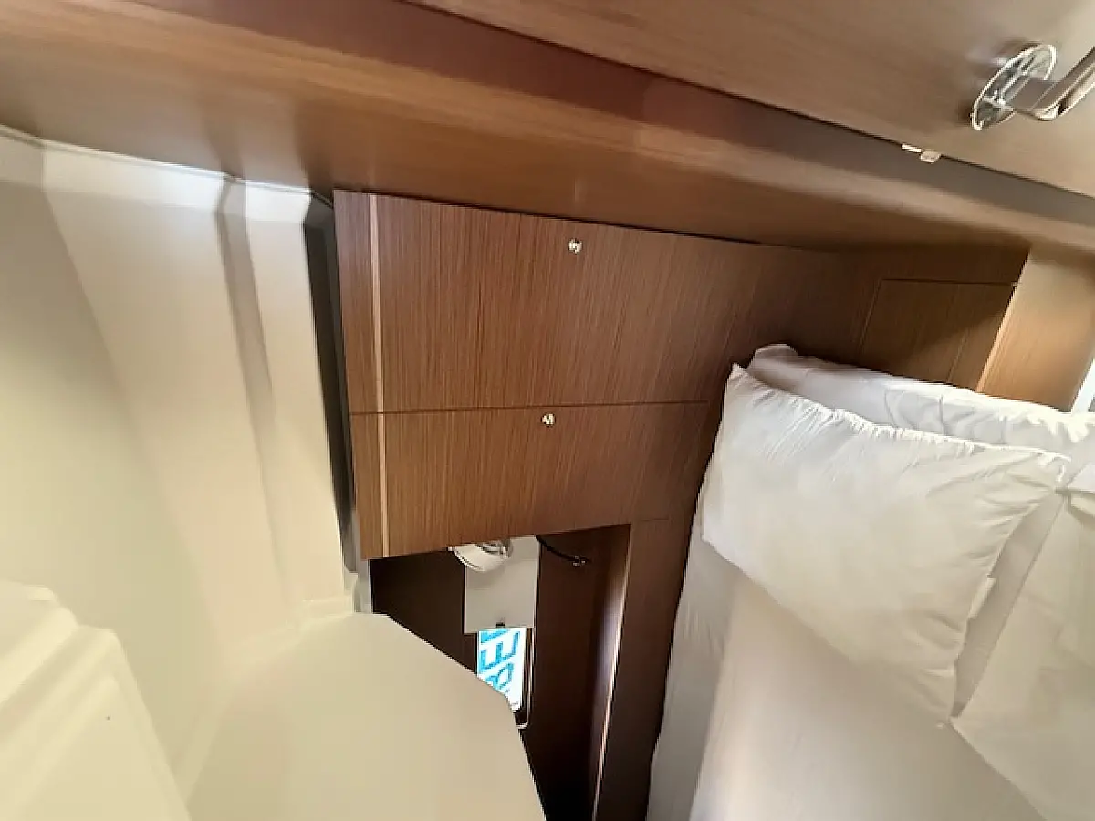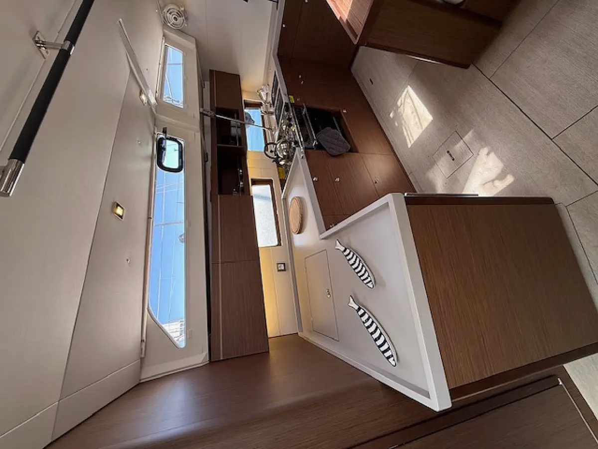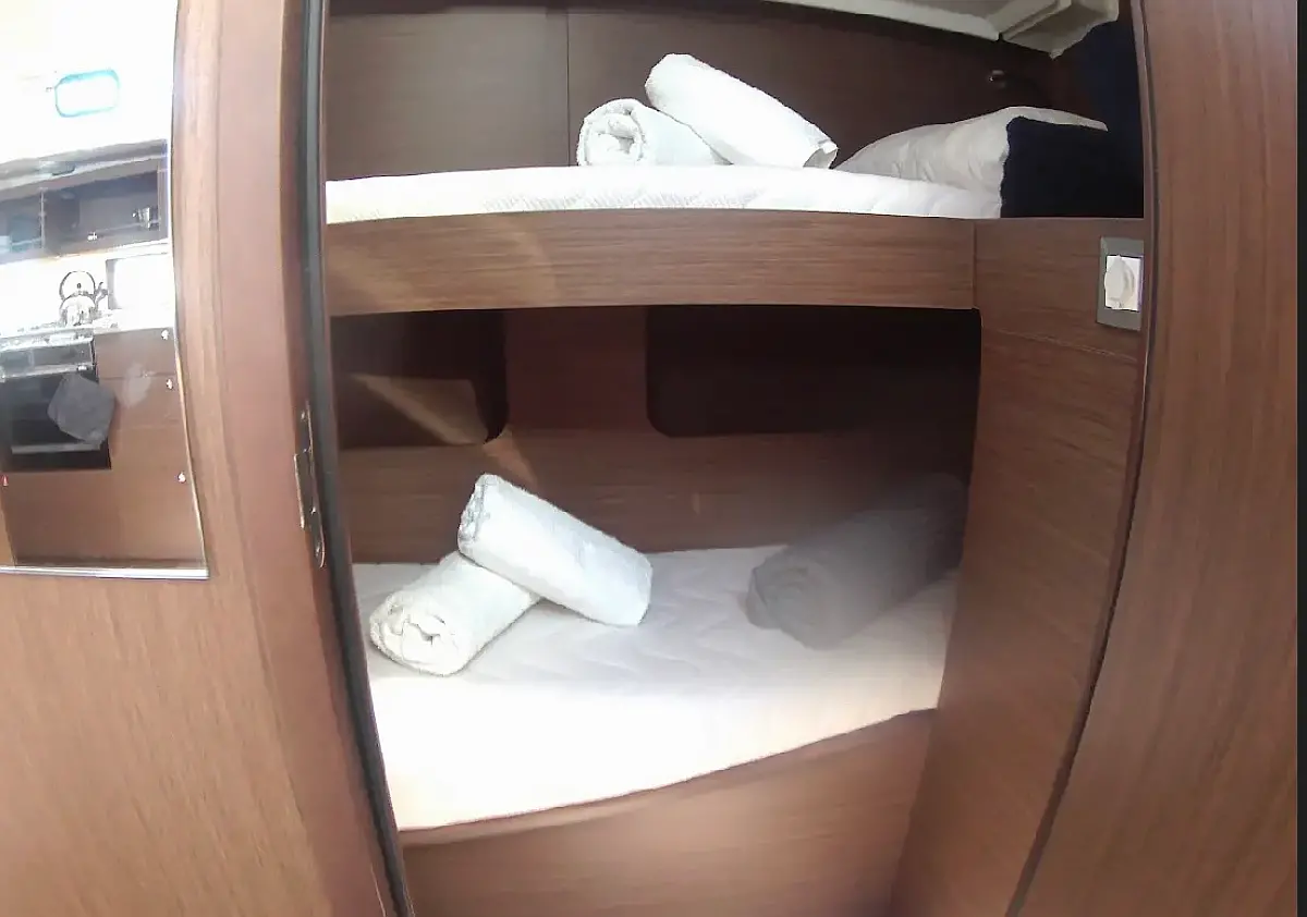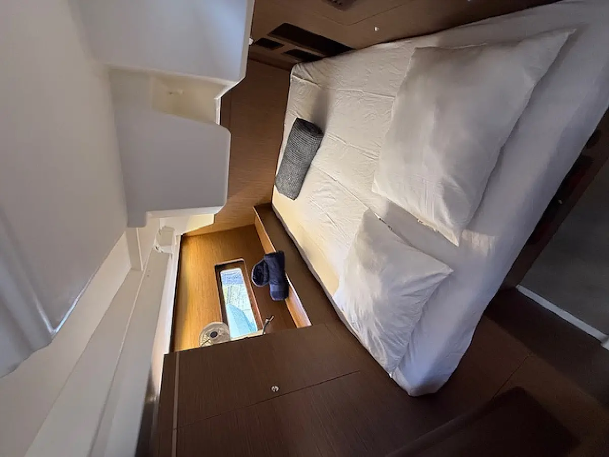 The 5-cabin sailing yacht Beneteau Oceanis 46.1 - Cookie was built in 2024 and is currently moored at Preveza Main Port, Greece. The Cookie offers a spacious and comfortable layout, accommodating up to 10 guests in 4 double cabins and 1 bunk bed cabin. For your convenience, pillows and bed linens are included in the charter price. This exquisite sailing yacht features 3 bathrooms, each equipped with a shower, ensuring privacy and comfort for all guests on board. The Beneteau Oceanis 46.1 is equipped with a range of premium features, including a roller mainsail, solar panels, radar, generator, bimini top, and a bow thruster, enhancing both performance and ease of navigation. Additionally, it offers heating, air conditioning, a high-quality sound system, a DVD player, and deck speakers, ensuring a luxurious and enjoyable sailing experience. The kitchen area is fully equipped with a freezer, coffee machine, refrigerator, oven, and stove, providing all the essentials for onboard dining and entertaining. This exceptional yacht is managed by the charter company Globus Yachting, guaranteeing professional service and top-tier maintenance.