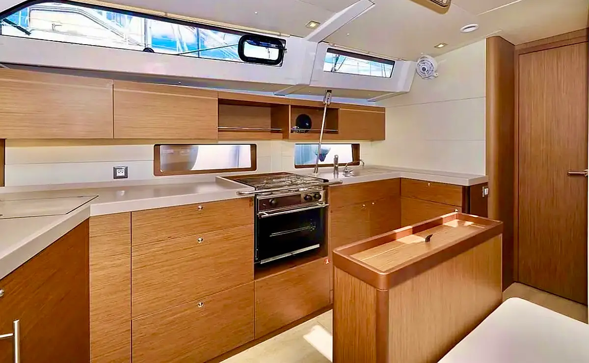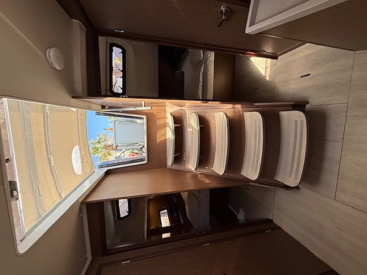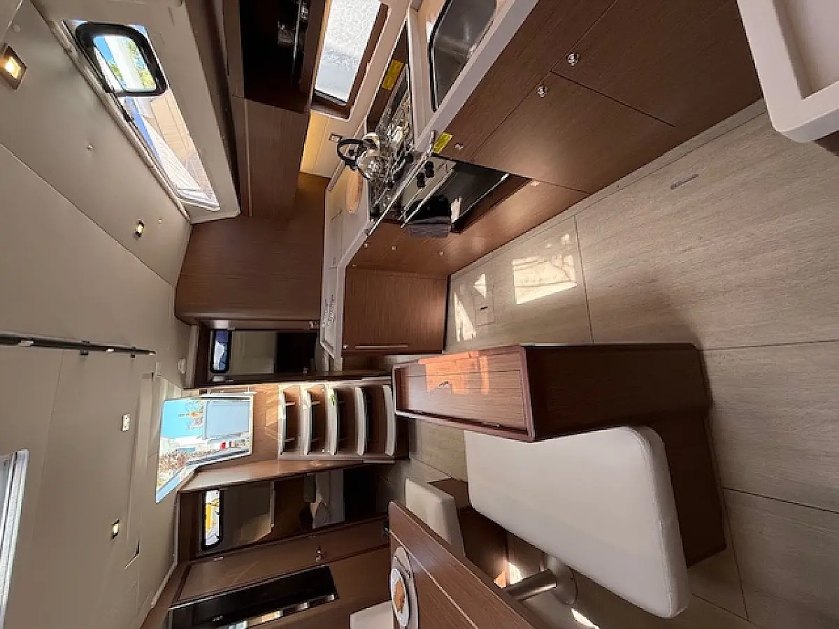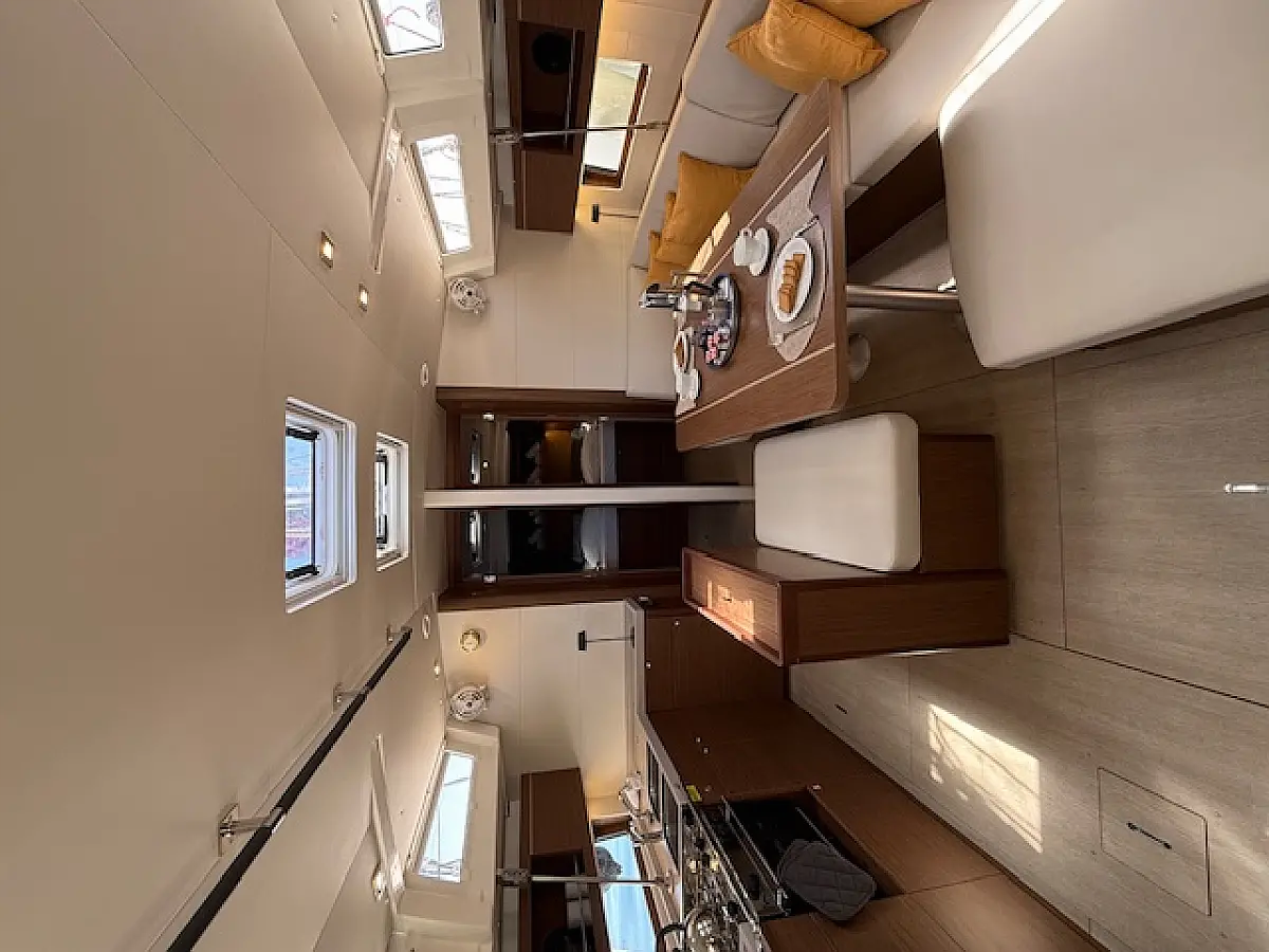 The 5-cabin sailing yacht Beneteau Oceanis 46.1 - Cookie was built in 2024 and is currently moored at Preveza Main Port, Greece. The Cookie offers a spacious and comfortable layout, accommodating up to 10 guests in 4 double cabins and 1 bunk bed cabin. For your convenience, pillows and bed linens are included in the charter price. This exquisite sailing yacht features 3 bathrooms, each equipped with a shower, ensuring privacy and comfort for all guests on board. The Beneteau Oceanis 46.1 is equipped with a range of premium features, including a roller mainsail, solar panels, radar, generator, bimini top, and a bow thruster, enhancing both performance and ease of navigation. Additionally, it offers heating, air conditioning, a high-quality sound system, a DVD player, and deck speakers, ensuring a luxurious and enjoyable sailing experience. The kitchen area is fully equipped with a freezer, coffee machine, refrigerator, oven, and stove, providing all the essentials for onboard dining and entertaining. This exceptional yacht is managed by the charter company Globus Yachting, guaranteeing professional service and top-tier maintenance.