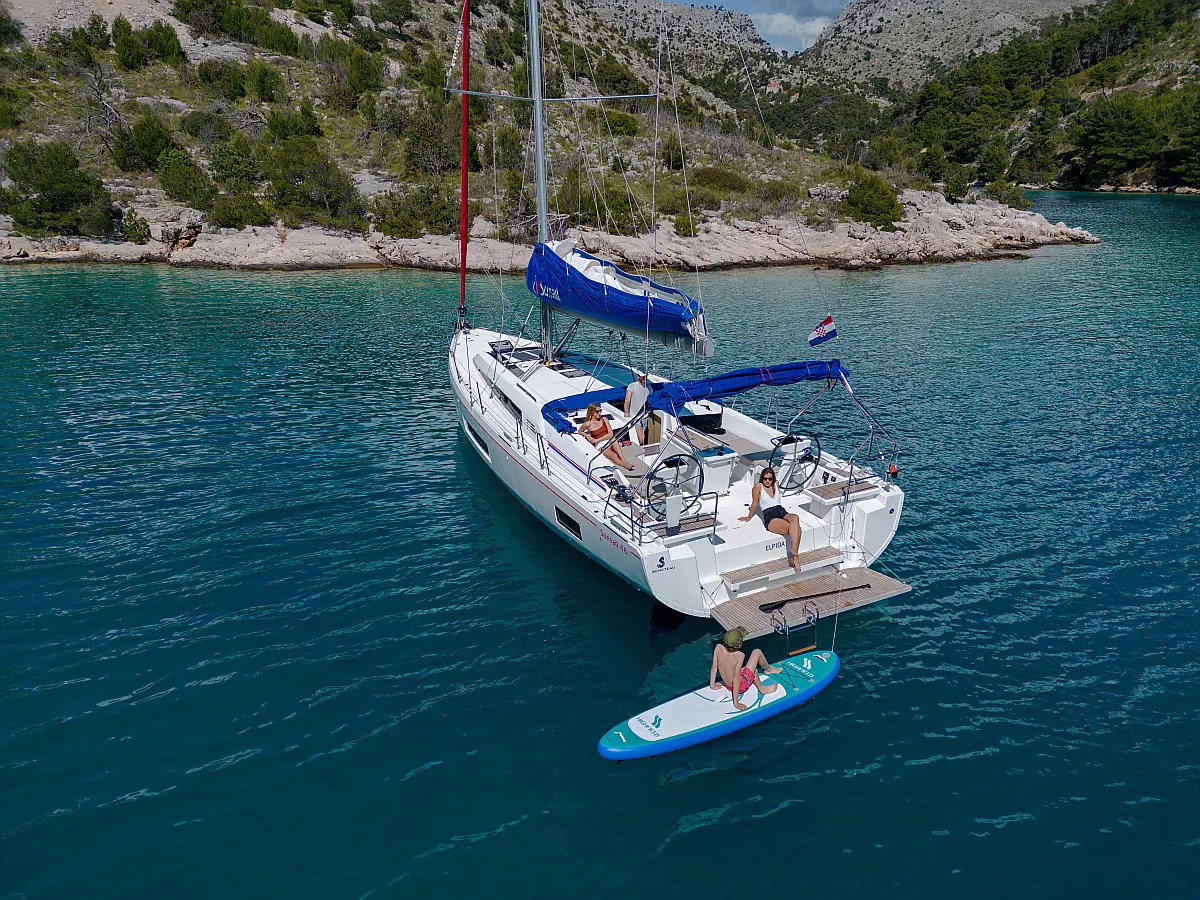 Refrigerator, Coffee maker, Cockpit speakers, Cockpit cushions, Dinghy, Bimini, Sprayhood
