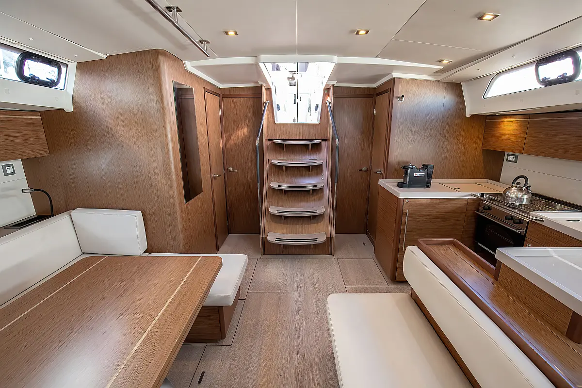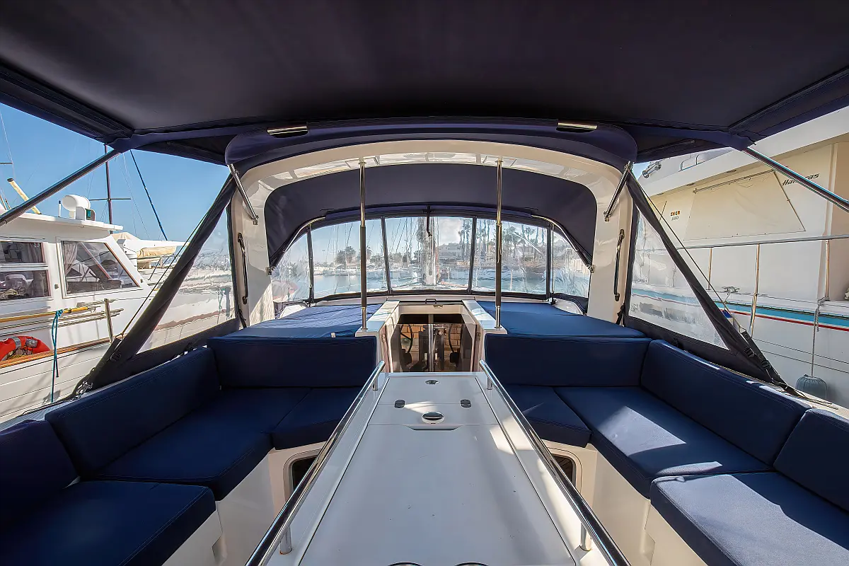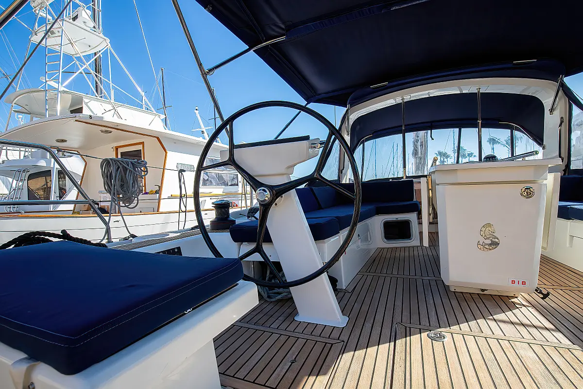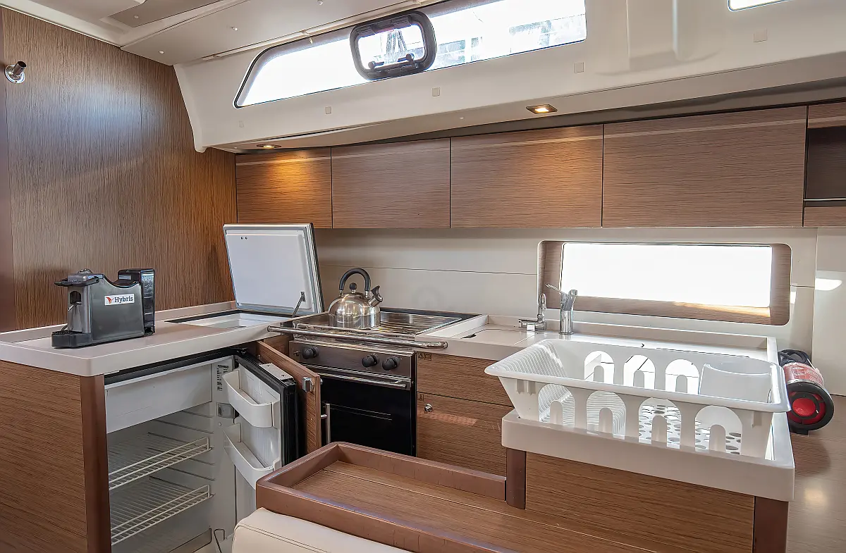 Dinghy, Outboard engine, Cockpit cushions, Electric winches, Inverter, Coffee maker, Teak deck, Electric toilet, Refrigerator