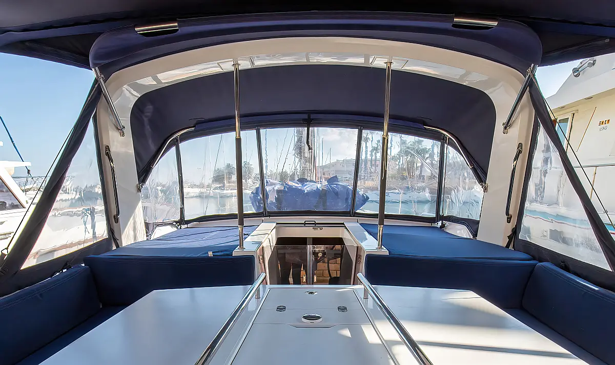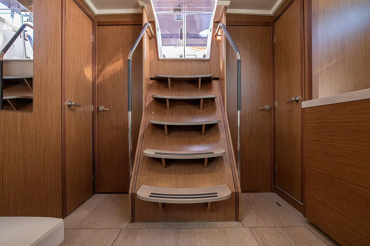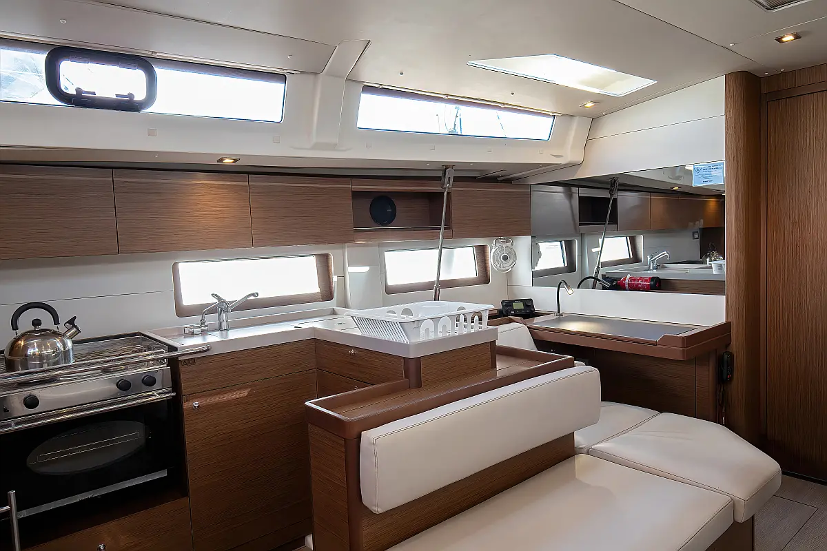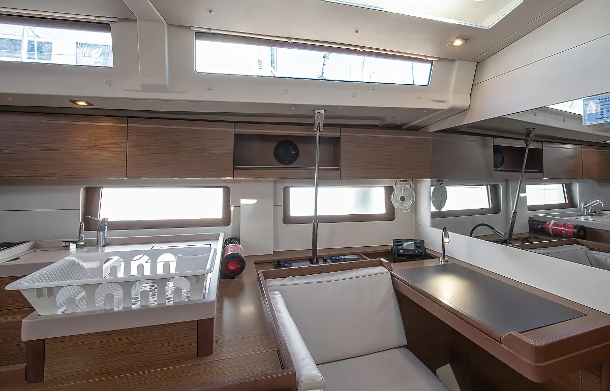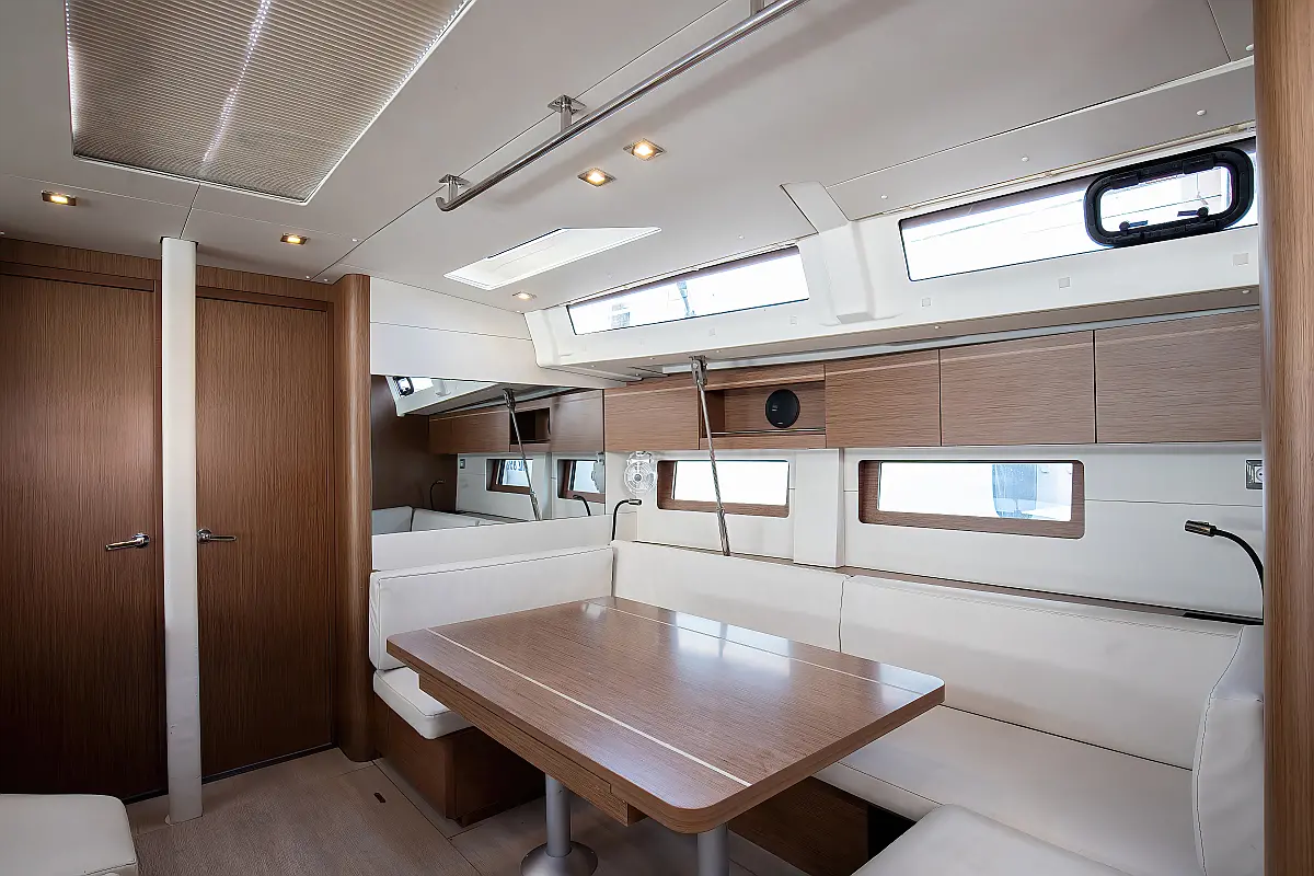 Dinghy, Outboard engine, Cockpit cushions, Electric winches, Inverter, Coffee maker, Teak deck, Electric toilet, Refrigerator