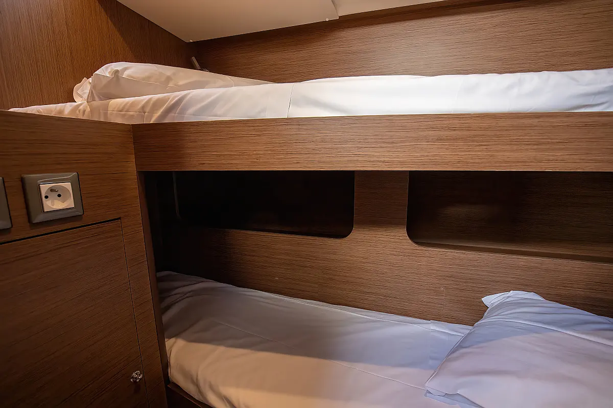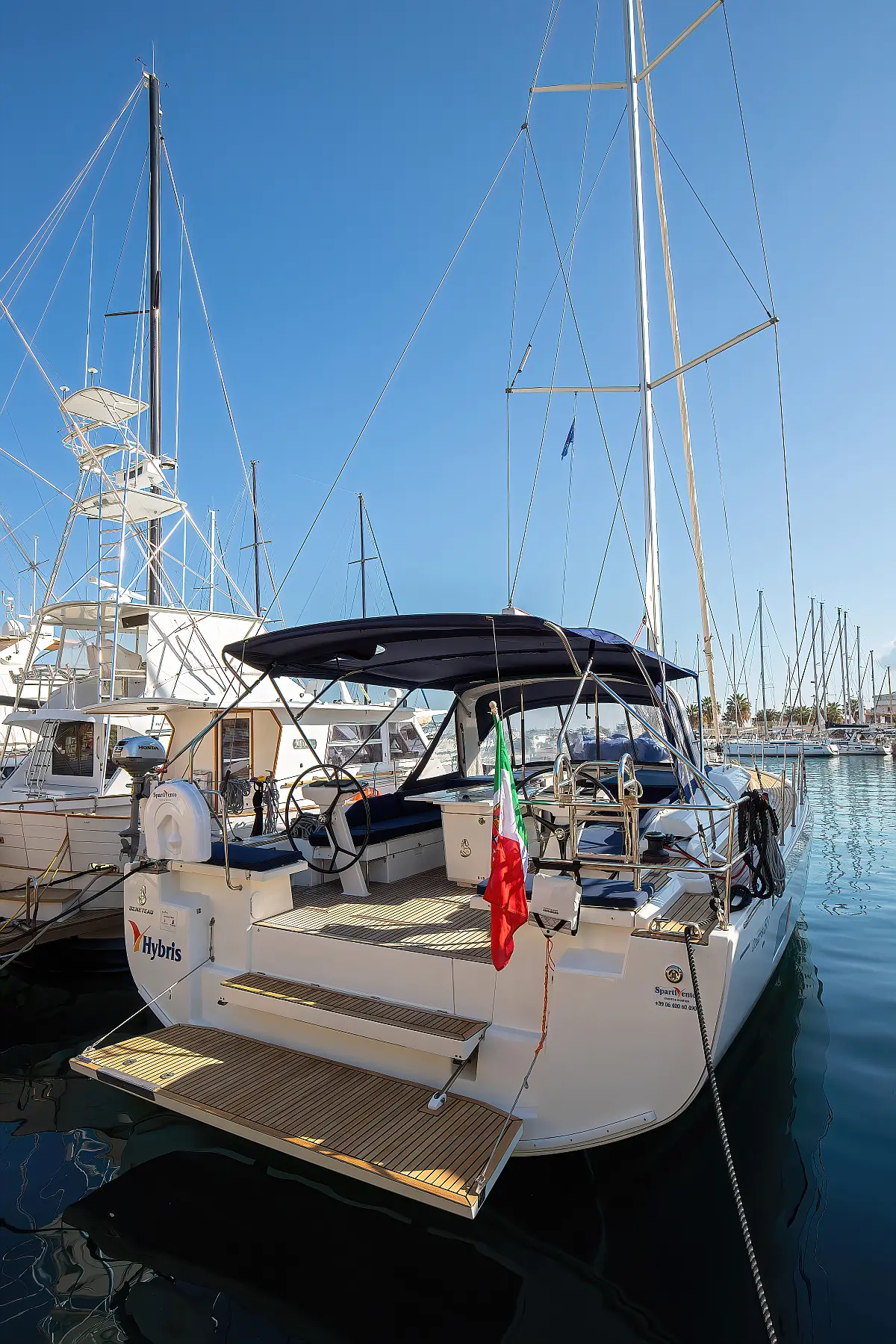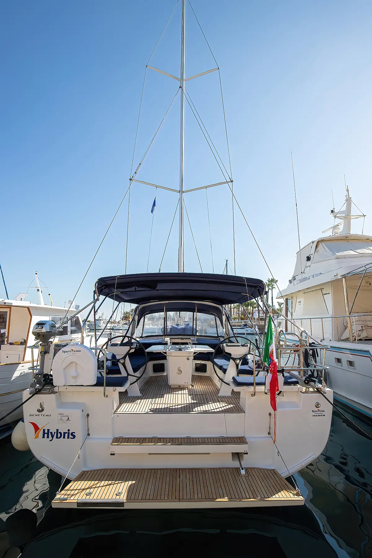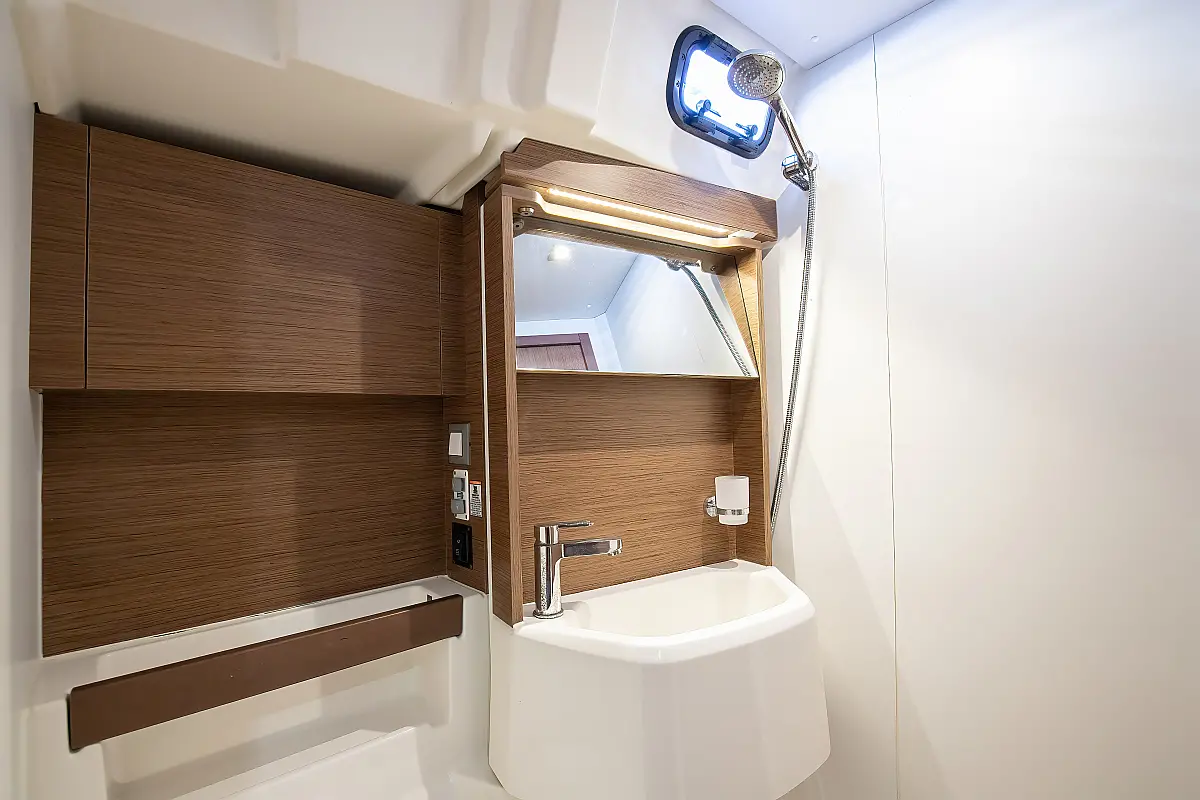 Dinghy, Outboard engine, Cockpit cushions, Electric winches, Inverter, Coffee maker, Teak deck, Electric toilet, Refrigerator