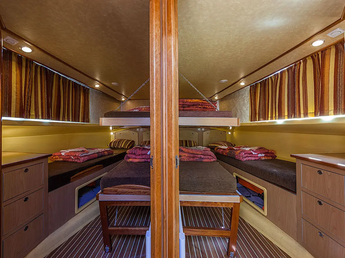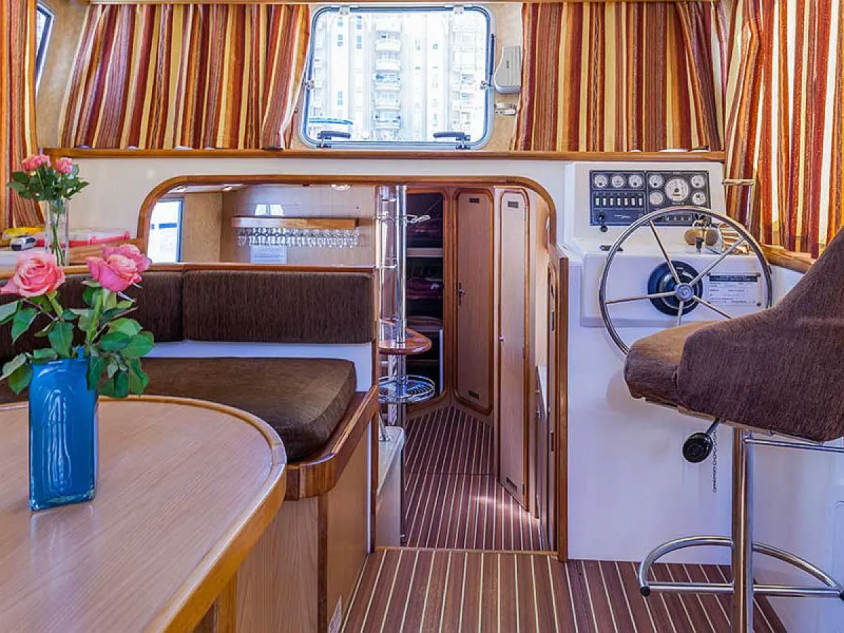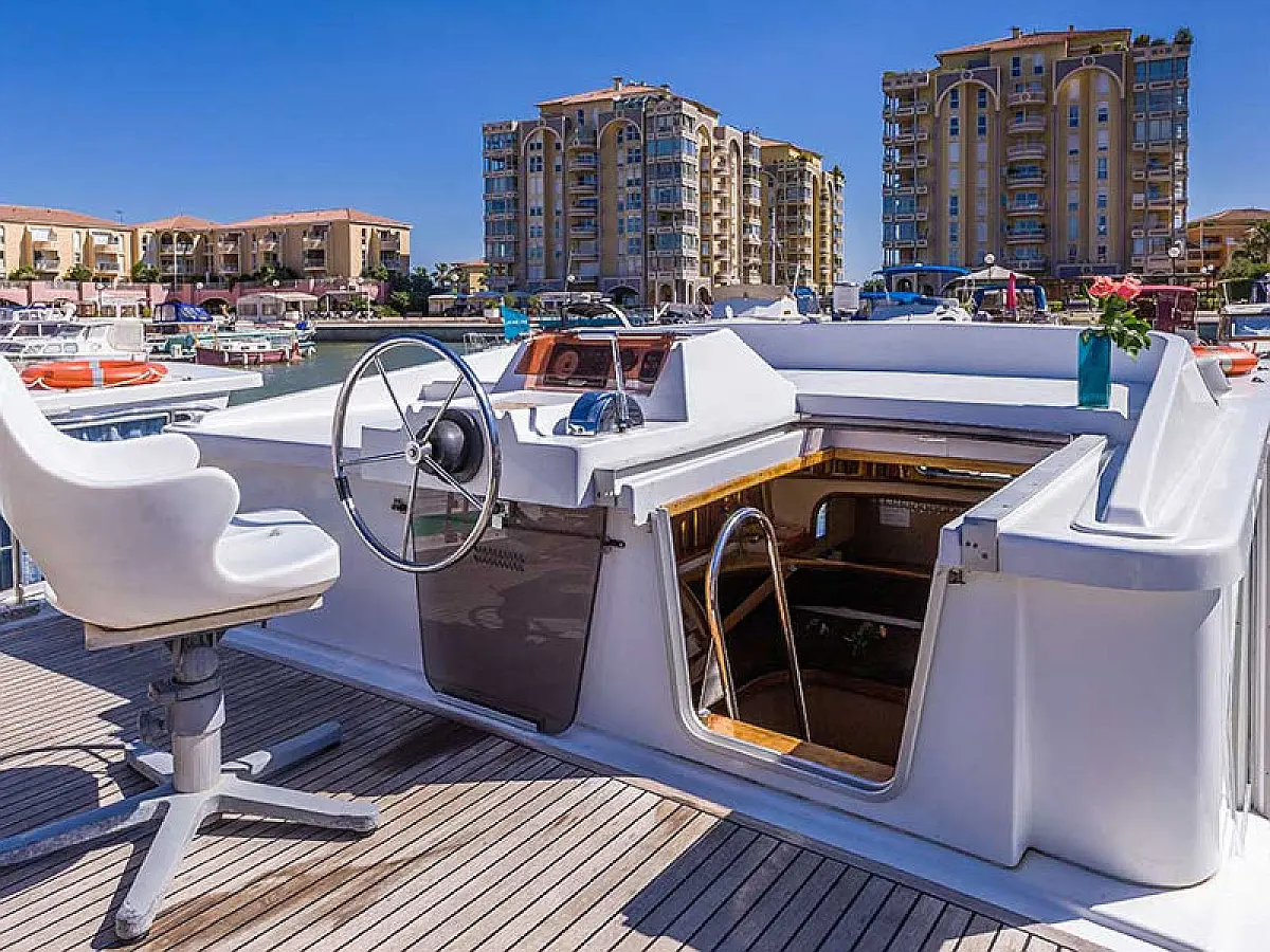 The 14.90 m Pénichette 1500FB FR Motor boat, built in 2004, is an ideal yacht for exploring the France. With 4 comfortable cabins, 4 WC/showers, and enough berths to accommodate up to 12 (8+4) guests, it provides ample space for relaxation and entertainment. This boat is available for charter.