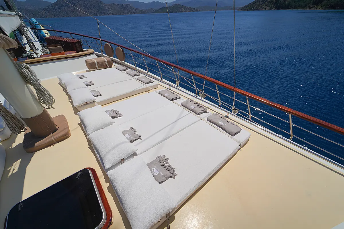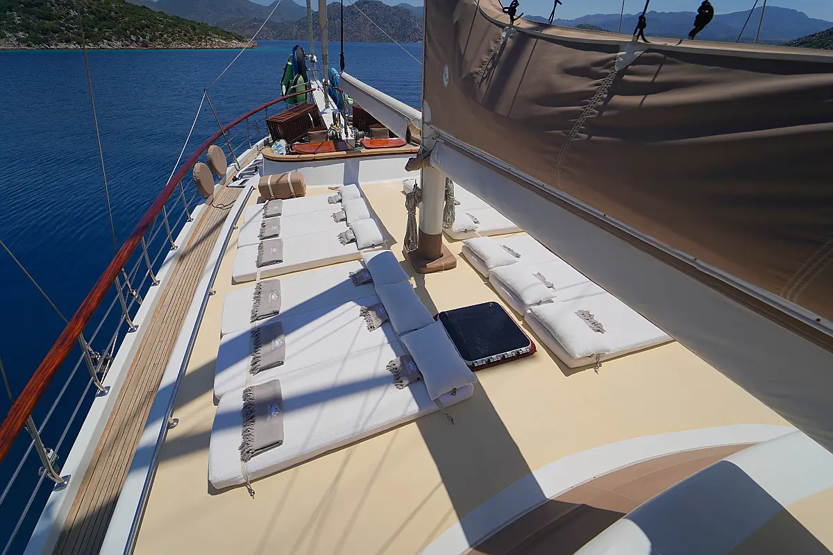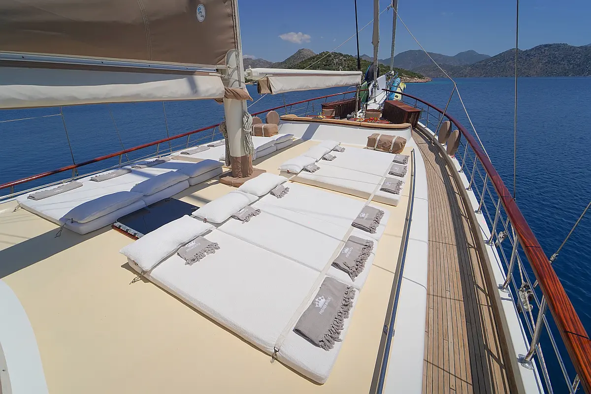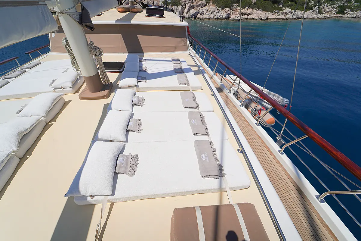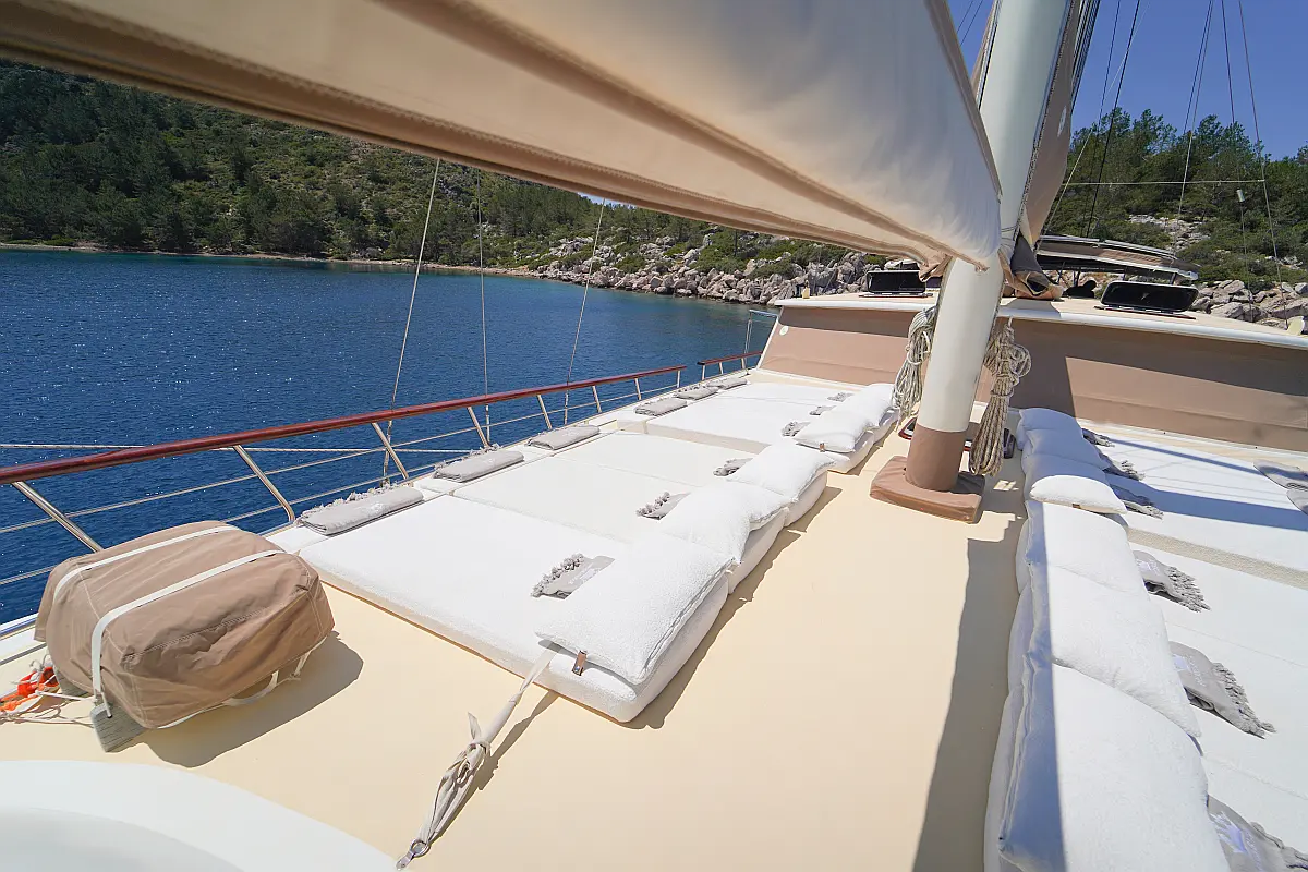 The 31.00 m Prenses Bugce Gulet, built in 2017, is an ideal yacht for exploring the Turkey. With 6 (1 Master, 1 small size Master, 2 Double, 2 Triple) comfortable cabins, 6 WC/showers, and enough berths to accommodate up to 12 guests, it provides ample space for relaxation and entertainment. This boat is available for charter.