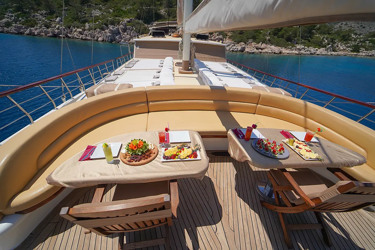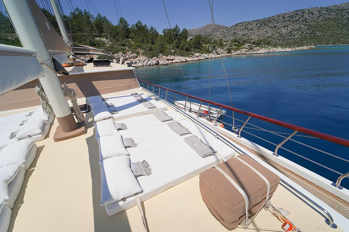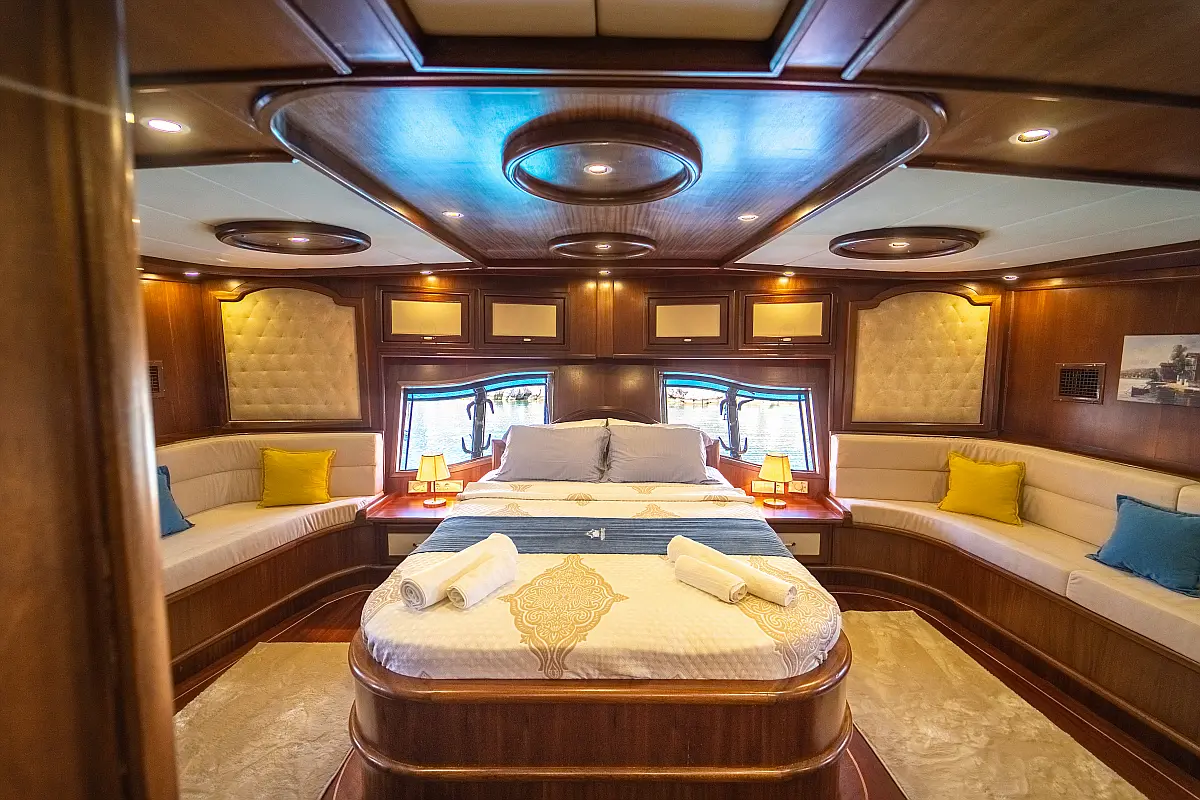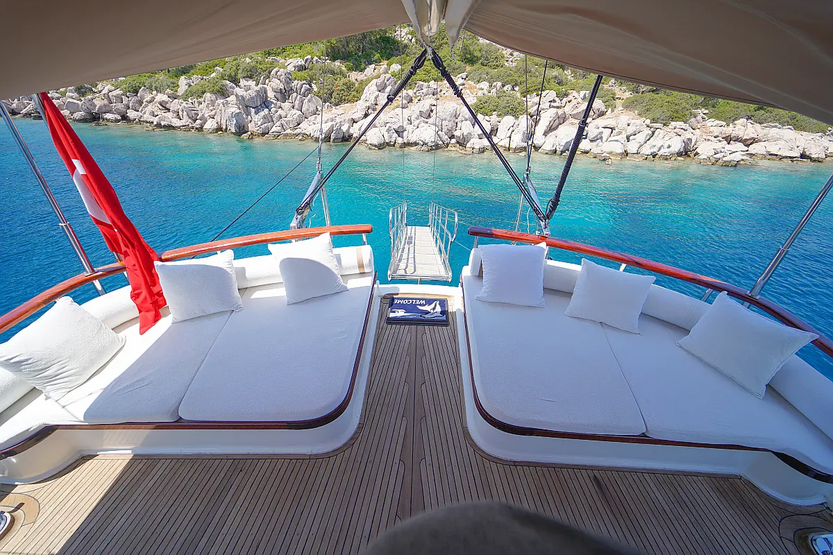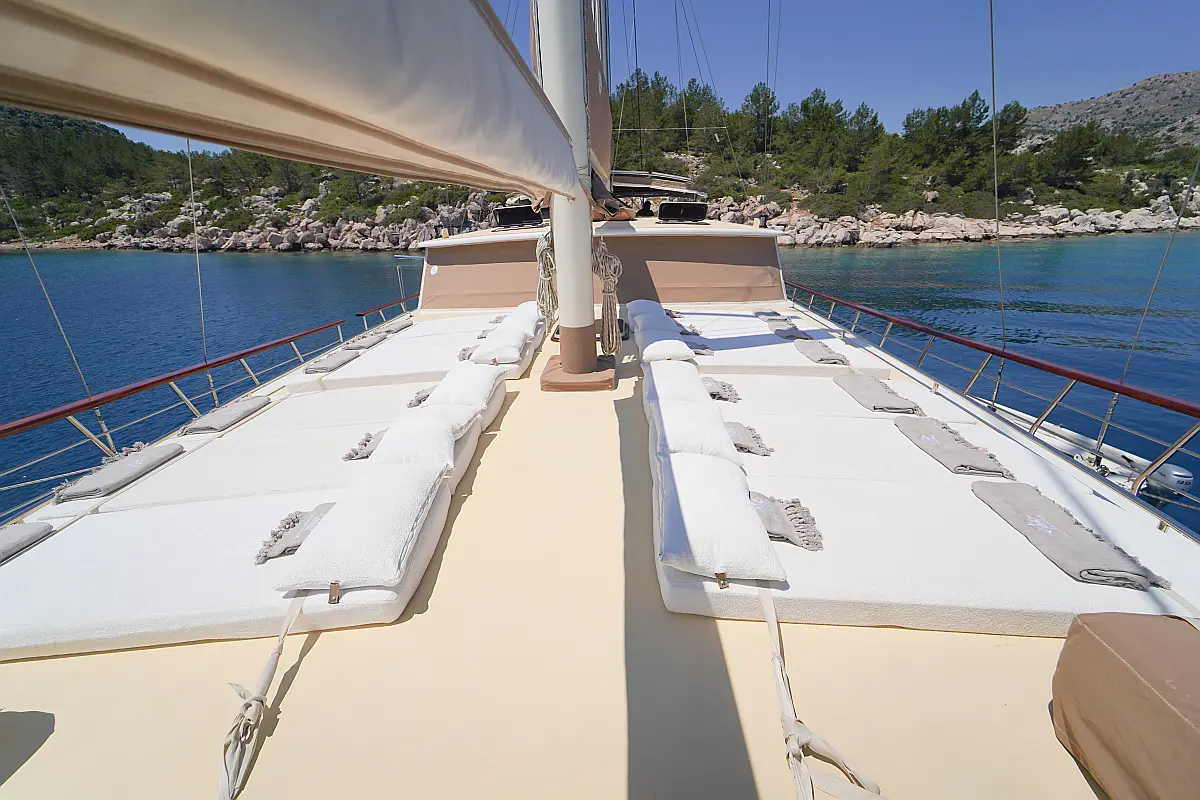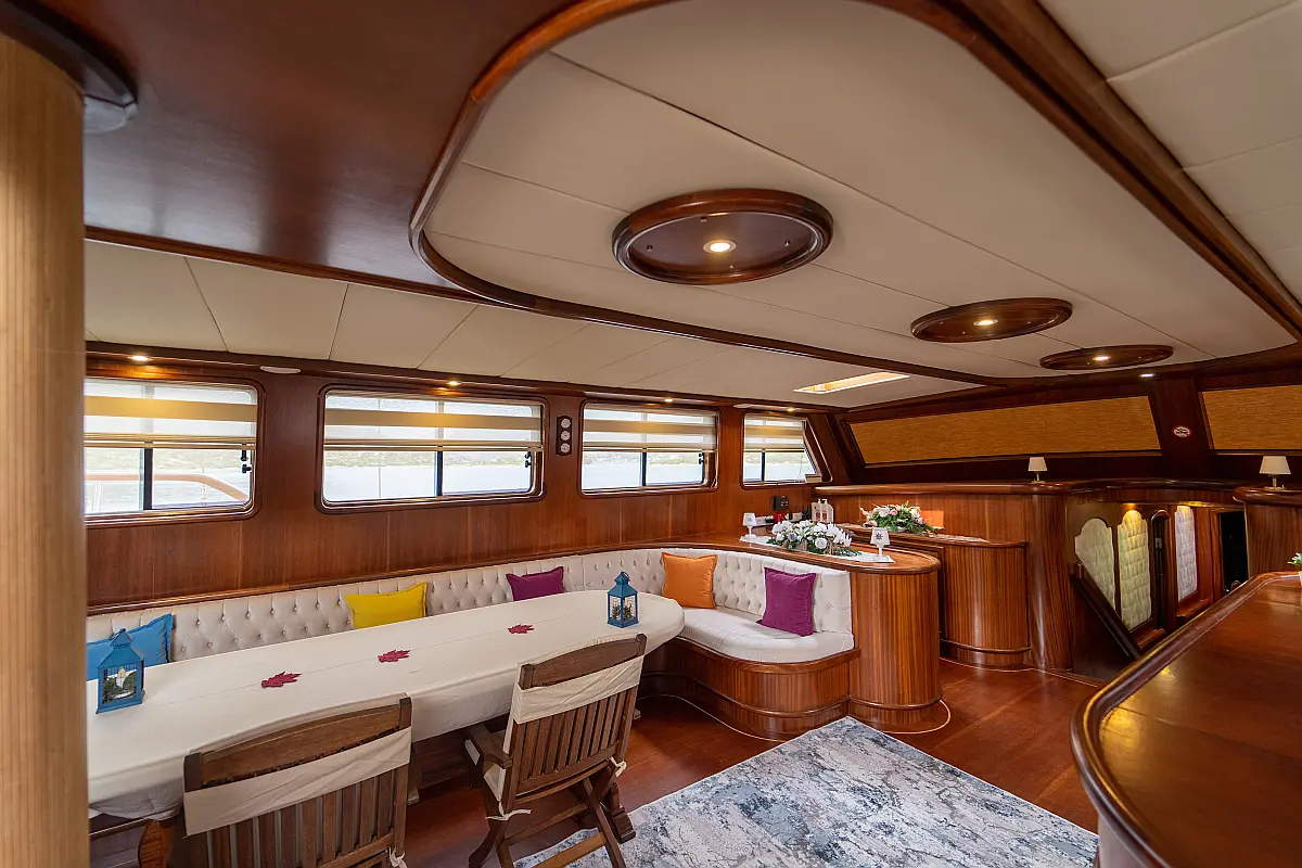 The 31.00 m Prenses Bugce Gulet, built in 2017, is an ideal yacht for exploring the Turkey. With 6 (1 Master, 1 small size Master, 2 Double, 2 Triple) comfortable cabins, 6 WC/showers, and enough berths to accommodate up to 12 guests, it provides ample space for relaxation and entertainment. This boat is available for charter.
