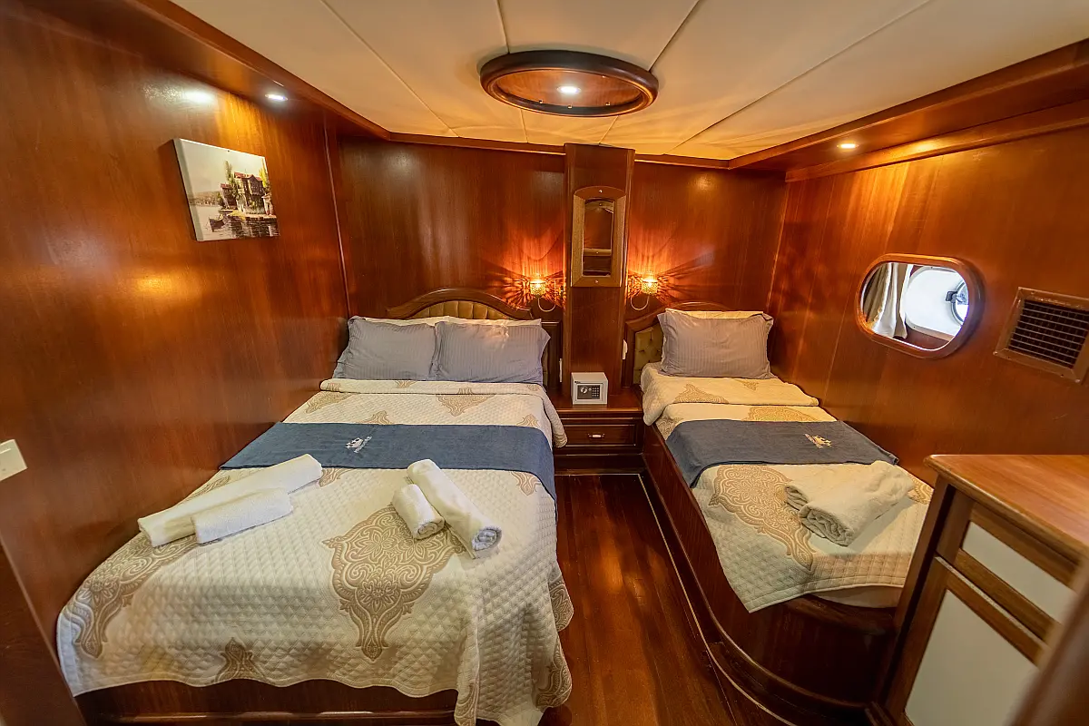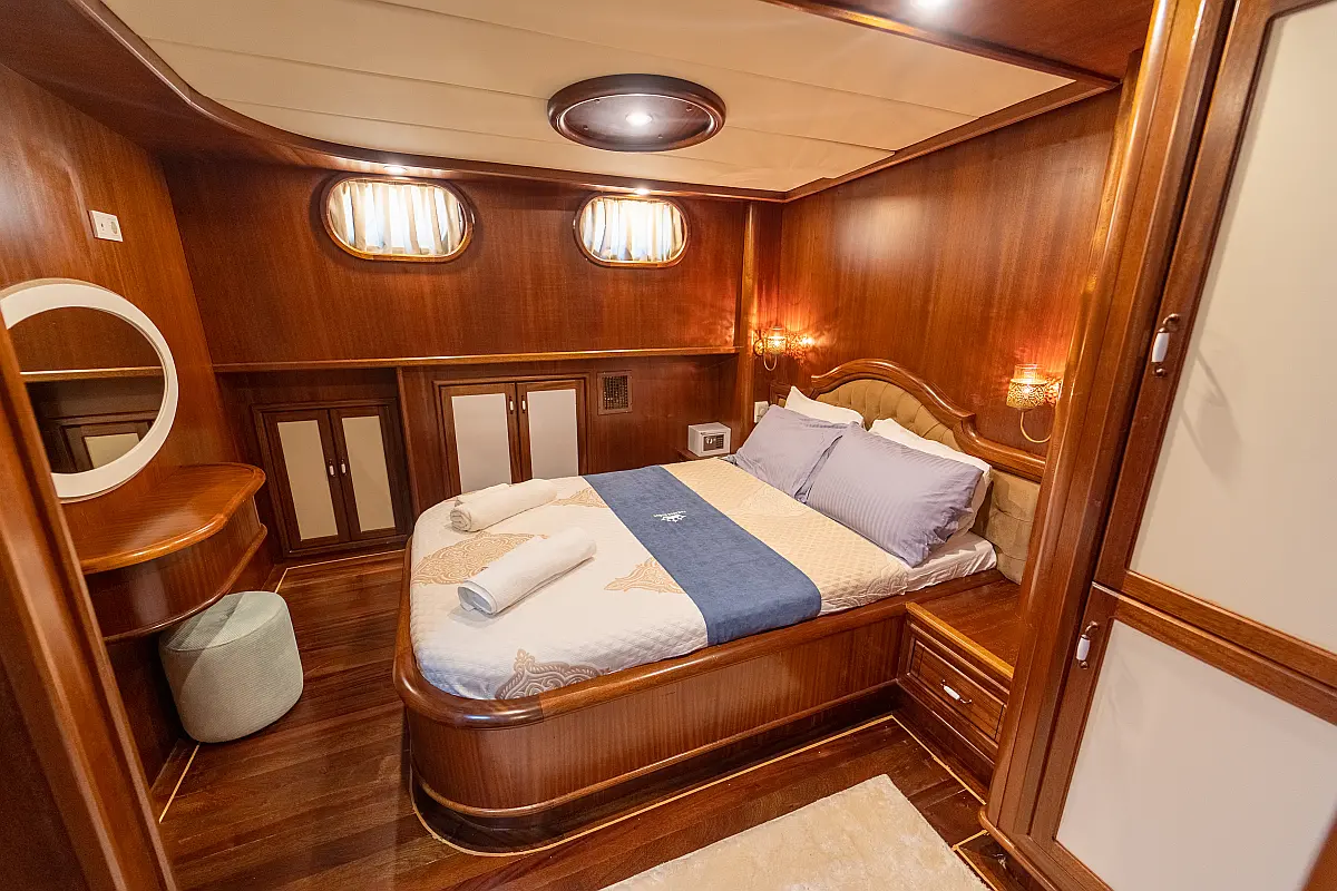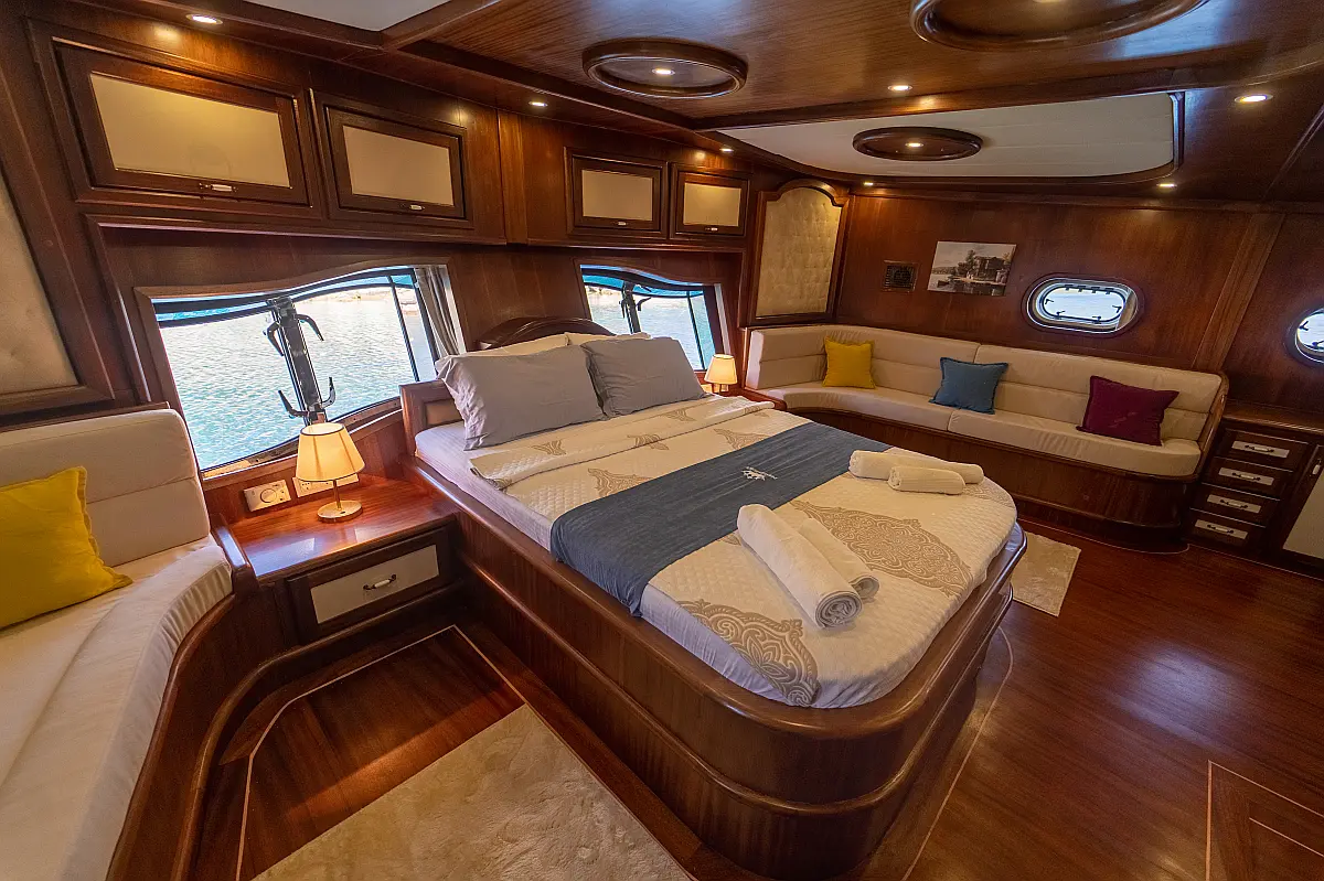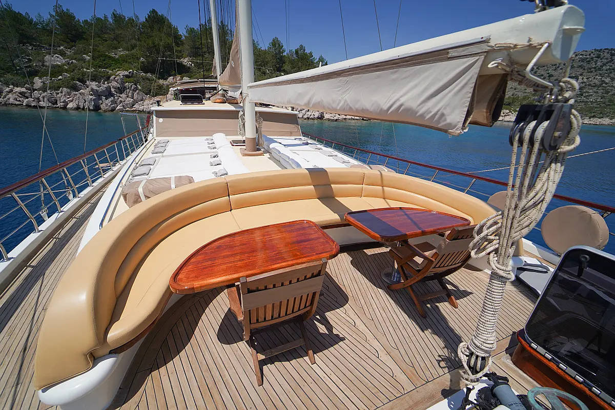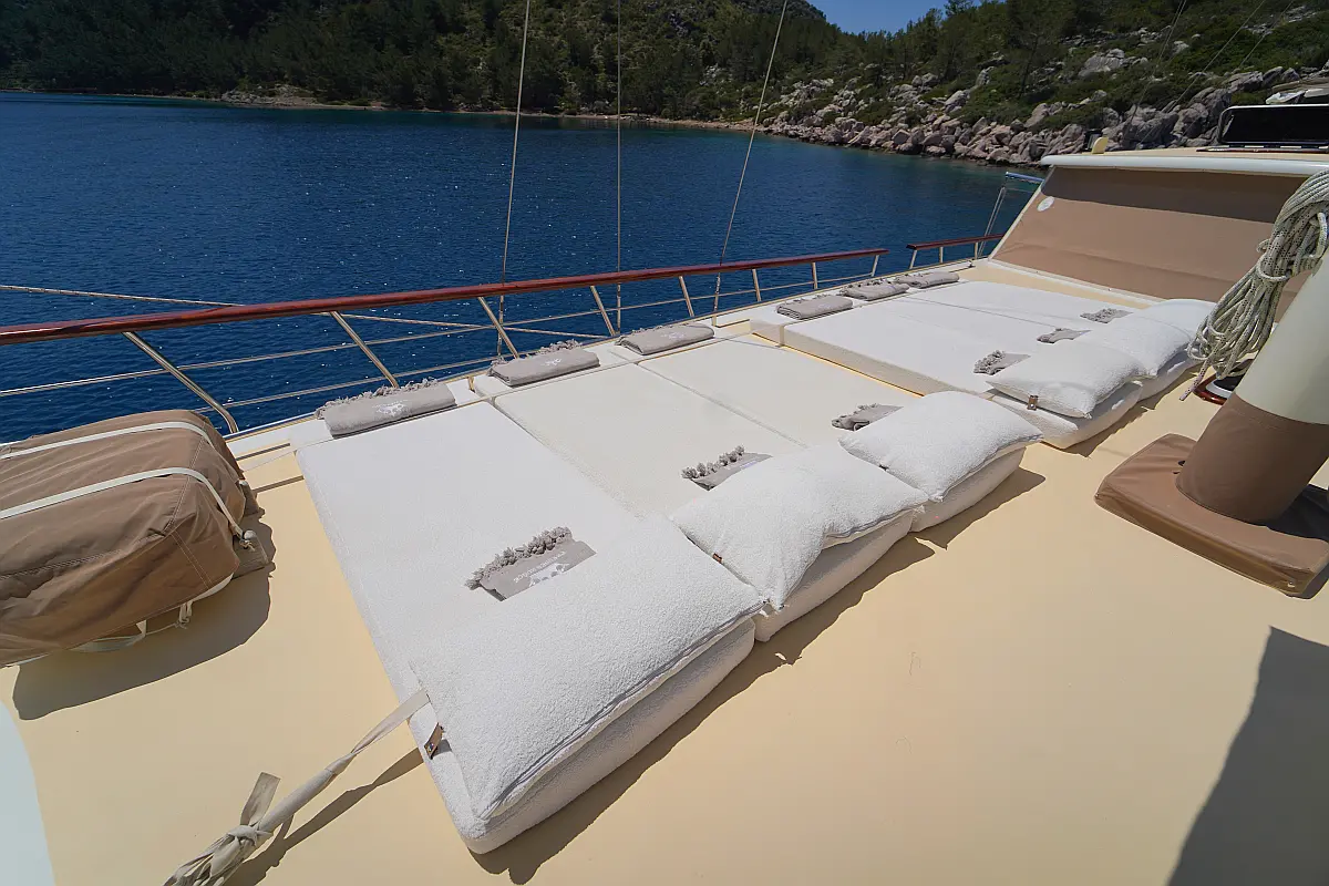 The 31.00 m Prenses Bugce Gulet, built in 2017, is an ideal yacht for exploring the Turkey. With 6 (1 Master, 1 small size Master, 2 Double, 2 Triple) comfortable cabins, 6 WC/showers, and enough berths to accommodate up to 12 guests, it provides ample space for relaxation and entertainment. This boat is available for charter.