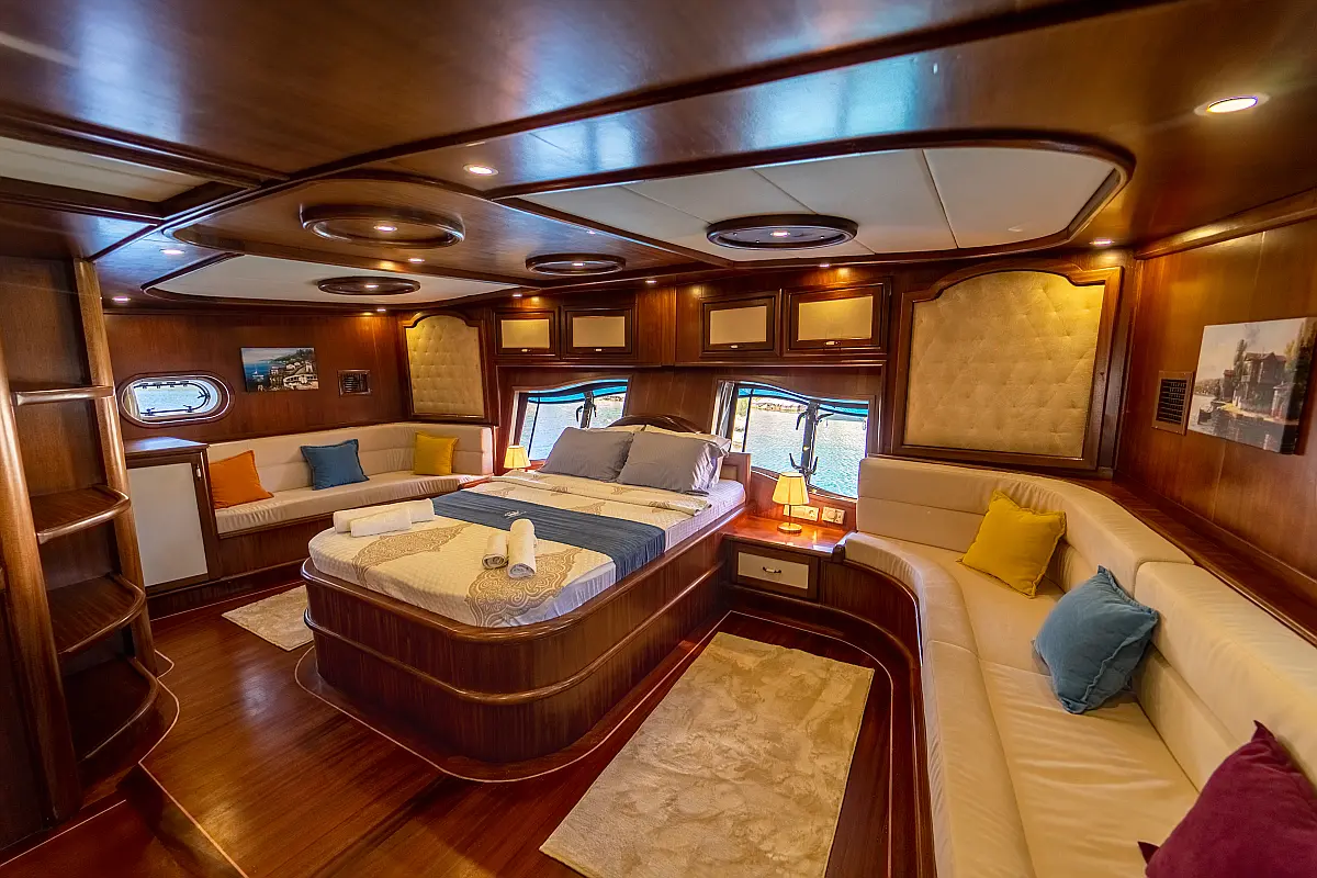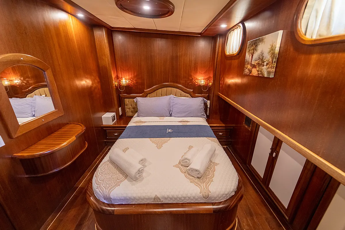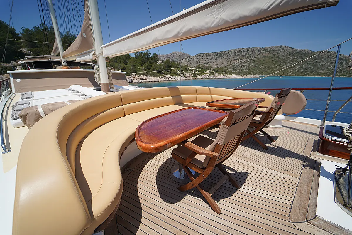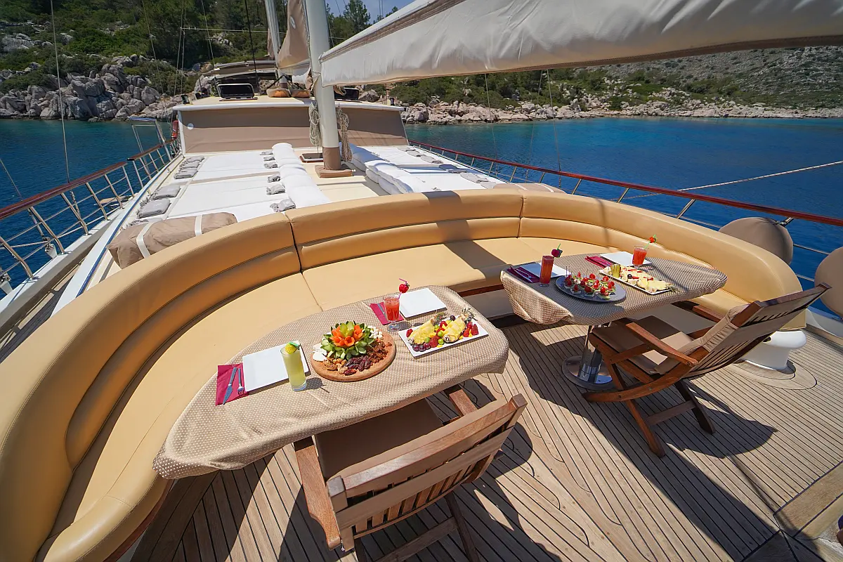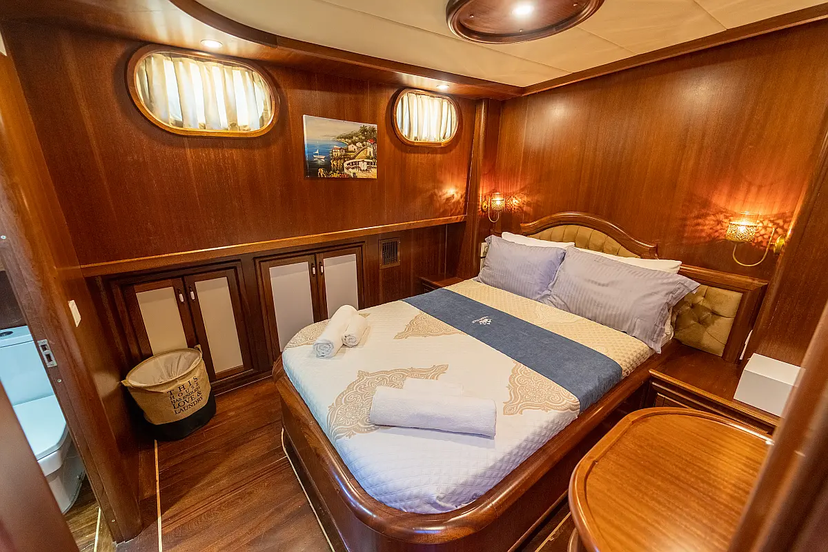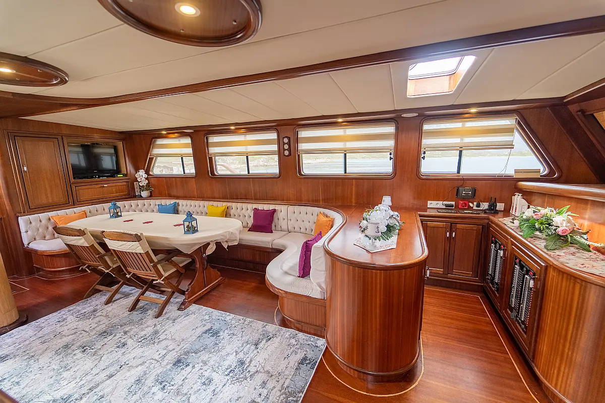 The 31.00 m Prenses Bugce Gulet, built in 2017, is an ideal yacht for exploring the Turkey. With 6 (1 Master, 1 small size Master, 2 Double, 2 Triple) comfortable cabins, 6 WC/showers, and enough berths to accommodate up to 12 guests, it provides ample space for relaxation and entertainment. This boat is available for charter.