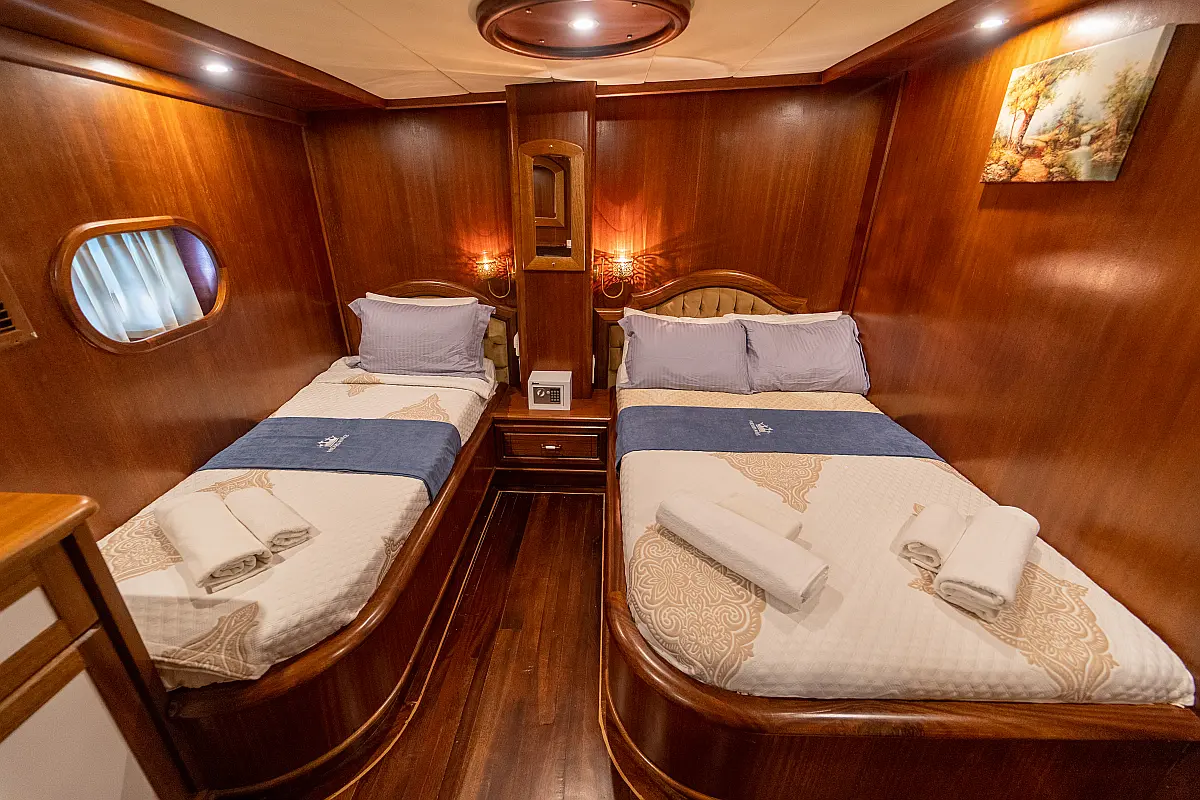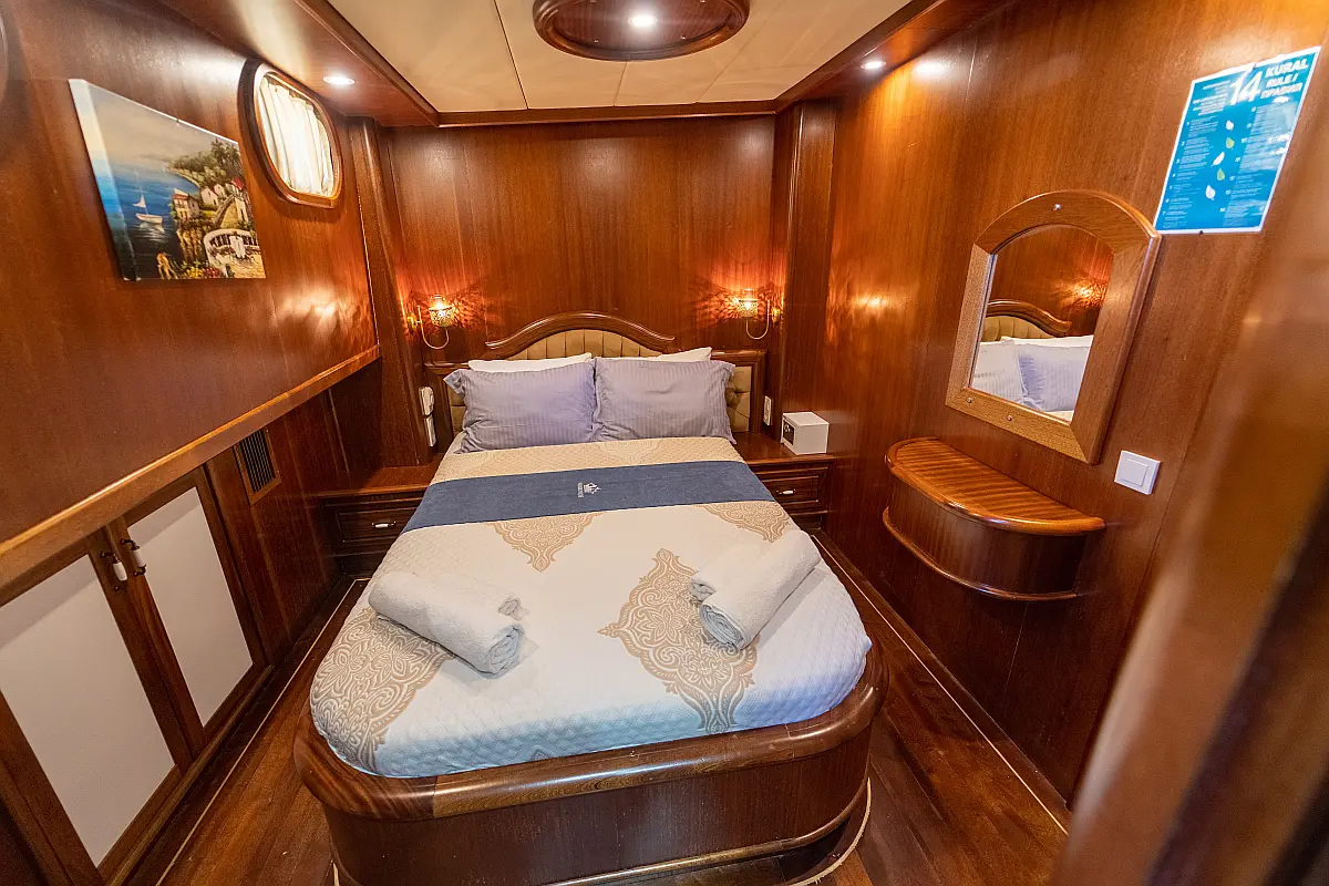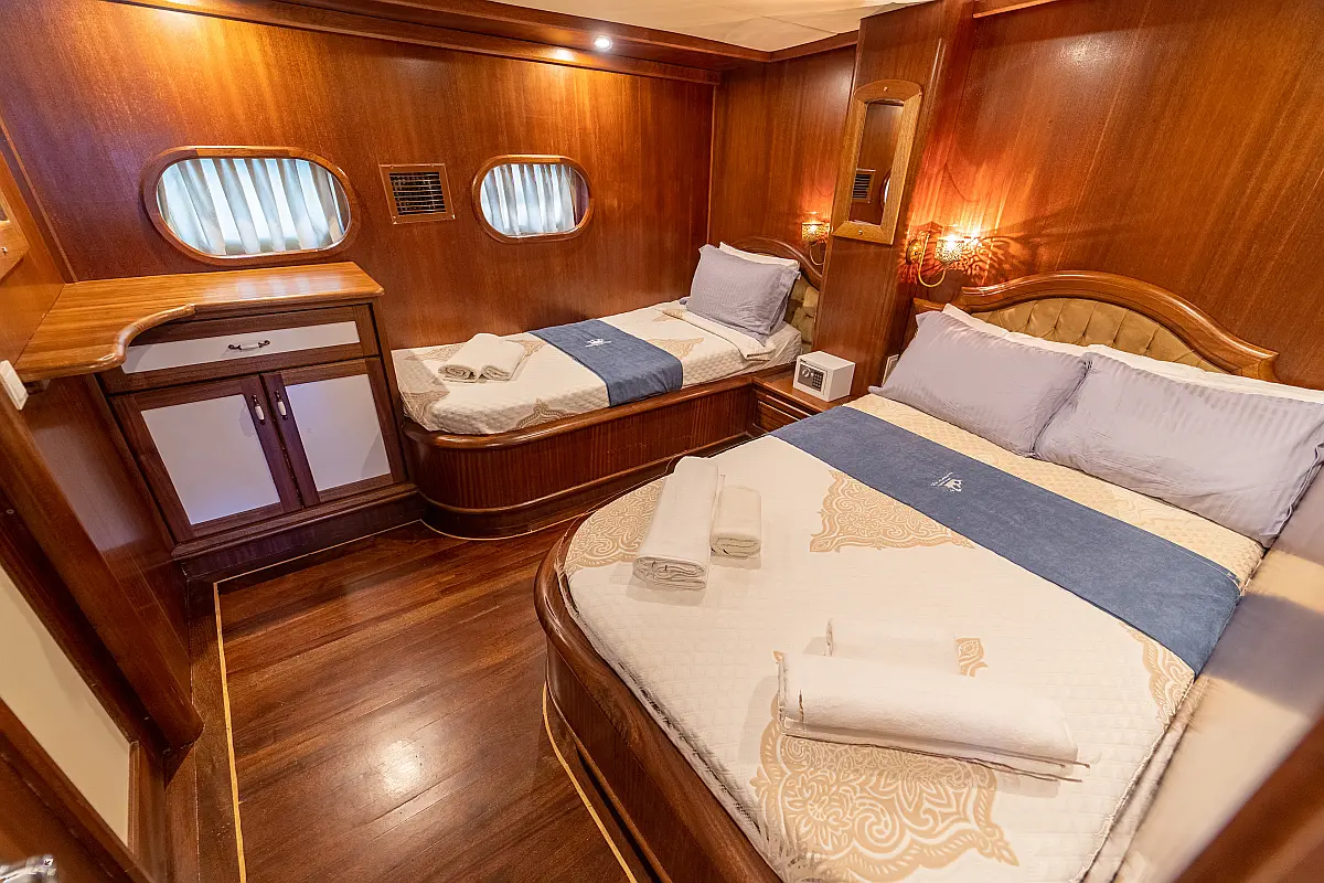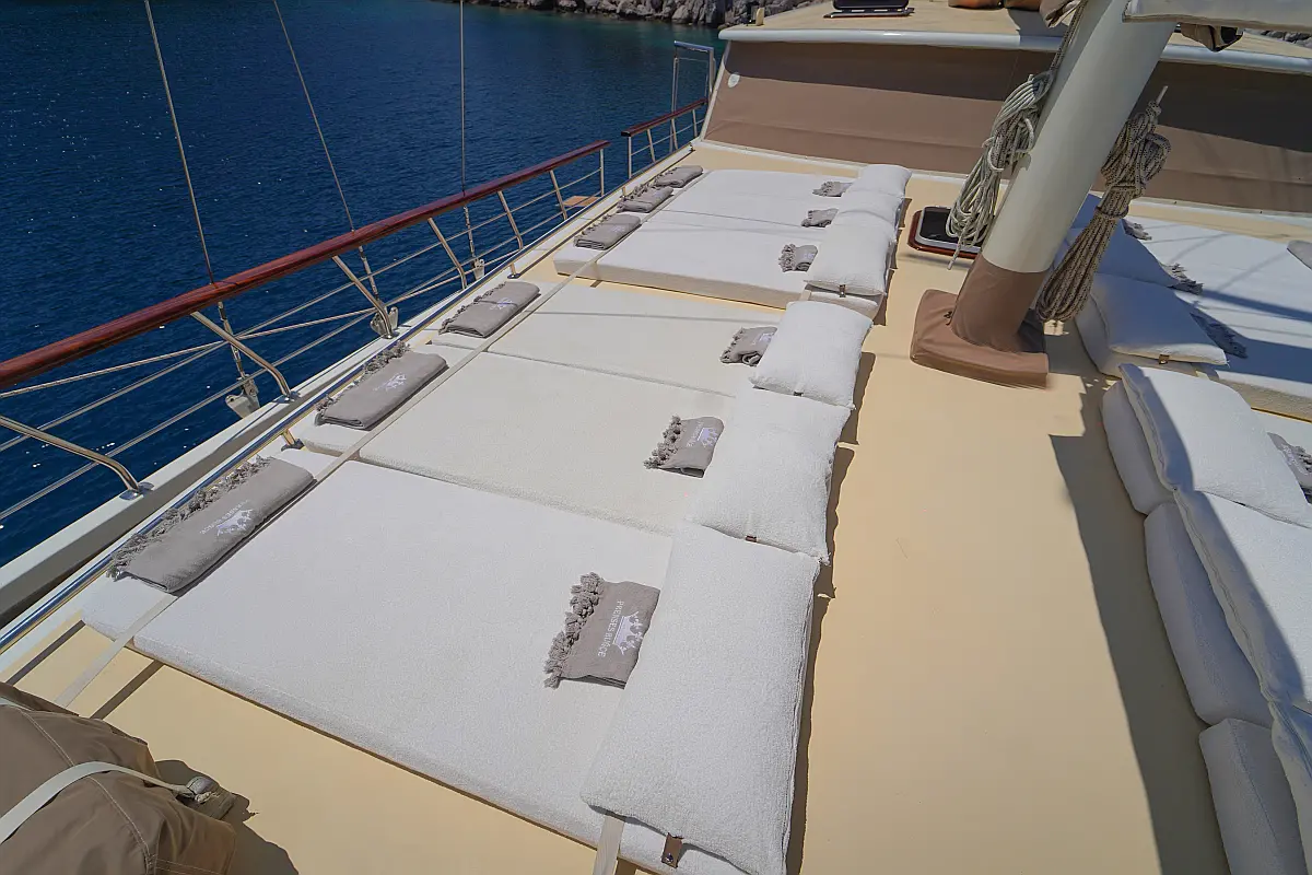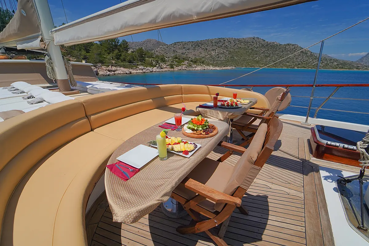 The 31.00 m Prenses Bugce Gulet, built in 2017, is an ideal yacht for exploring the Turkey. With 6 (1 Master, 1 small size Master, 2 Double, 2 Triple) comfortable cabins, 6 WC/showers, and enough berths to accommodate up to 12 guests, it provides ample space for relaxation and entertainment. This boat is available for charter.