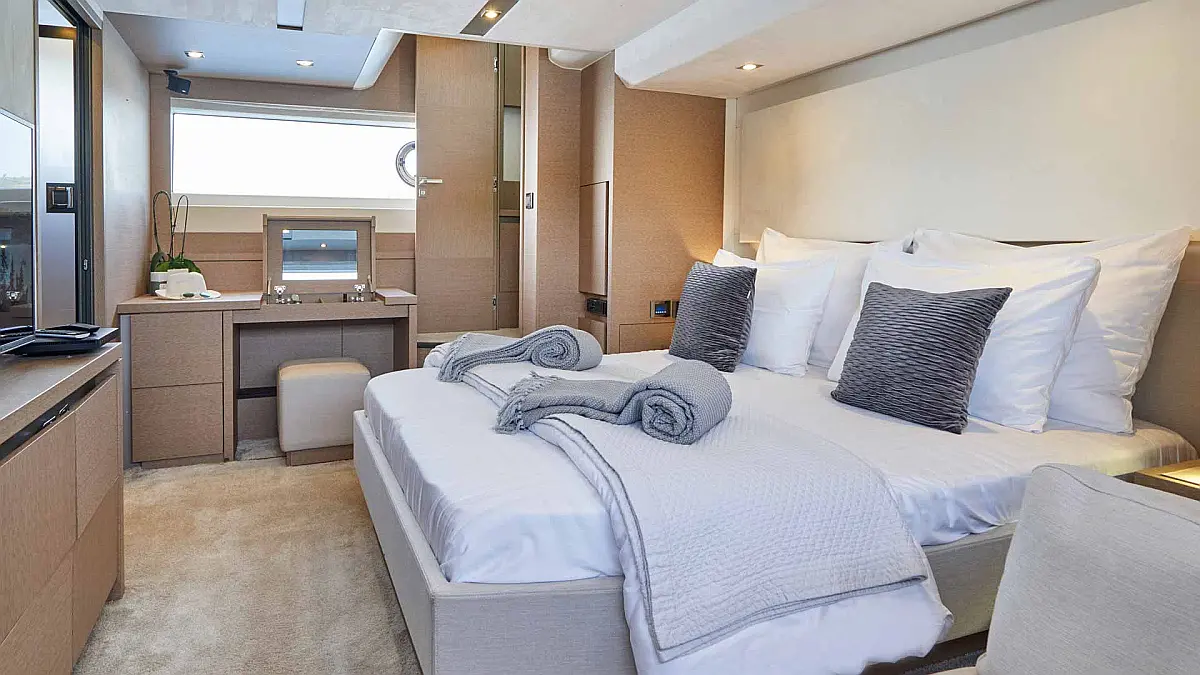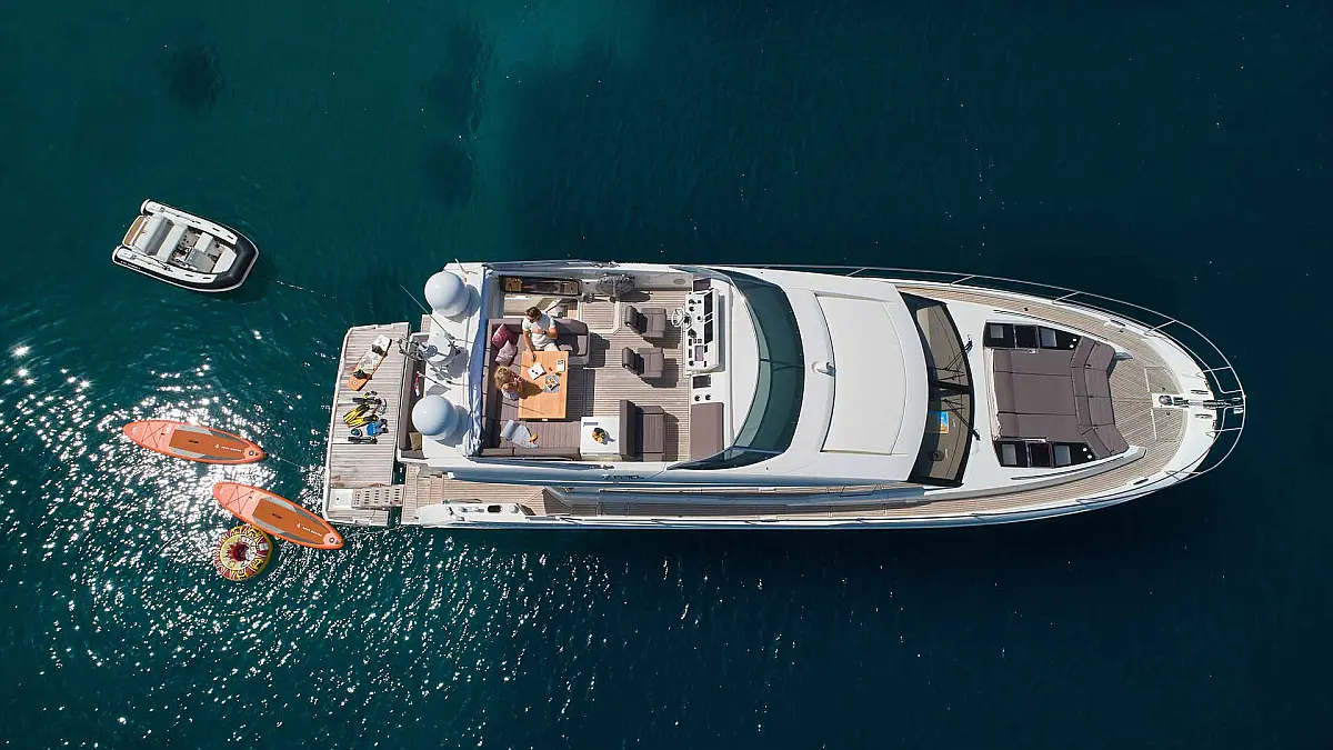The 20.50 m Prestige 630S Motoryacht, built in 2018, is an ideal yacht for exploring the Croatia. With 3 comfortable cabins, 3 WC/showers, and enough berths to accommodate up to 6 guests, it provides ample space for relaxation and entertainment. This boat is available for charter.