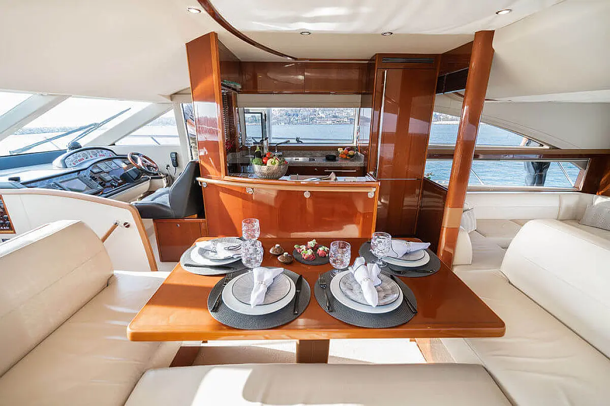 Barbecue grill in cockpit, Heating, Ice maker, Refrigerator, Water maker, Coffee maker, Generator, Wi-Fi & Internet