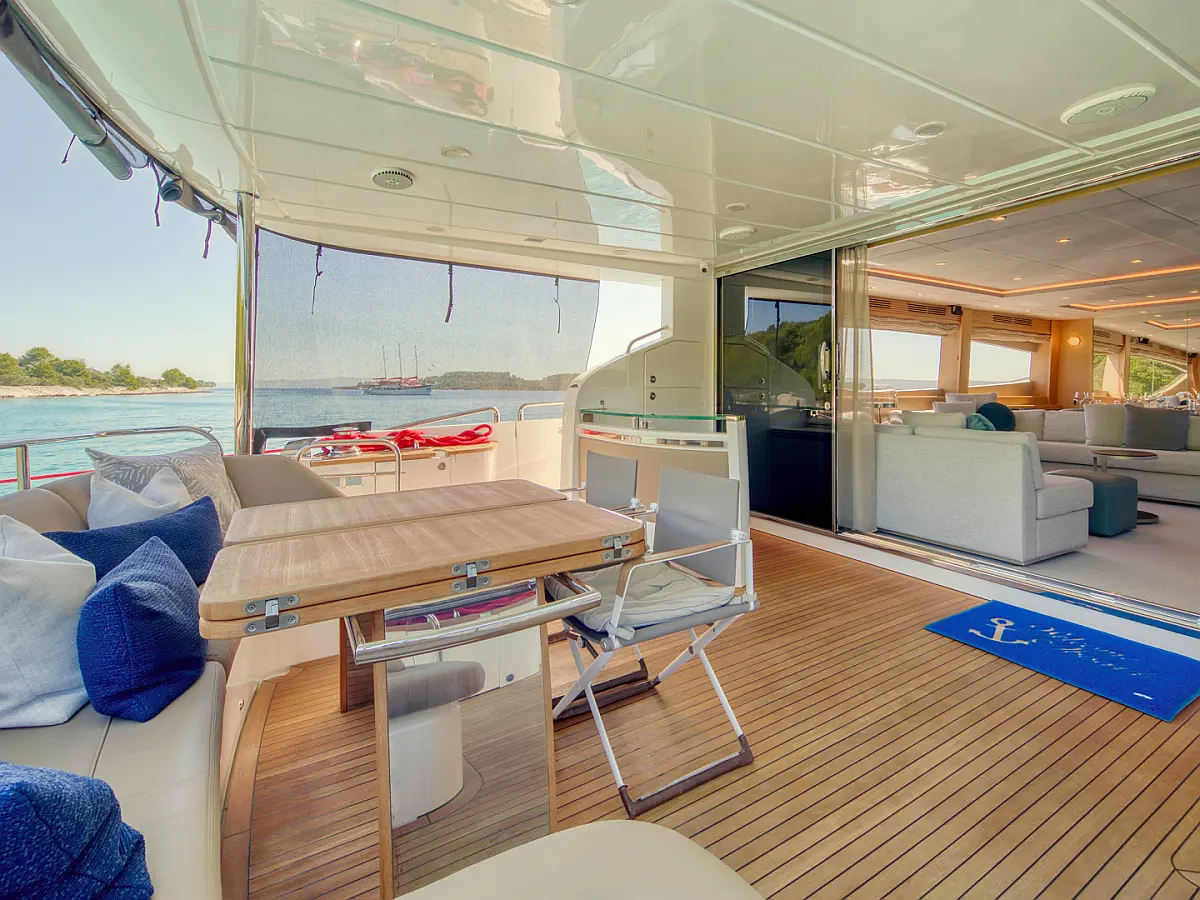 The 25.99 m Princess 85 Motoryacht, built in 2009, is an ideal yacht for exploring the Croatia. With 4 comfortable cabins, 4 WC/showers, and enough berths to accommodate up to 8 guests, it provides ample space for relaxation and entertainment. This boat is available for charter.