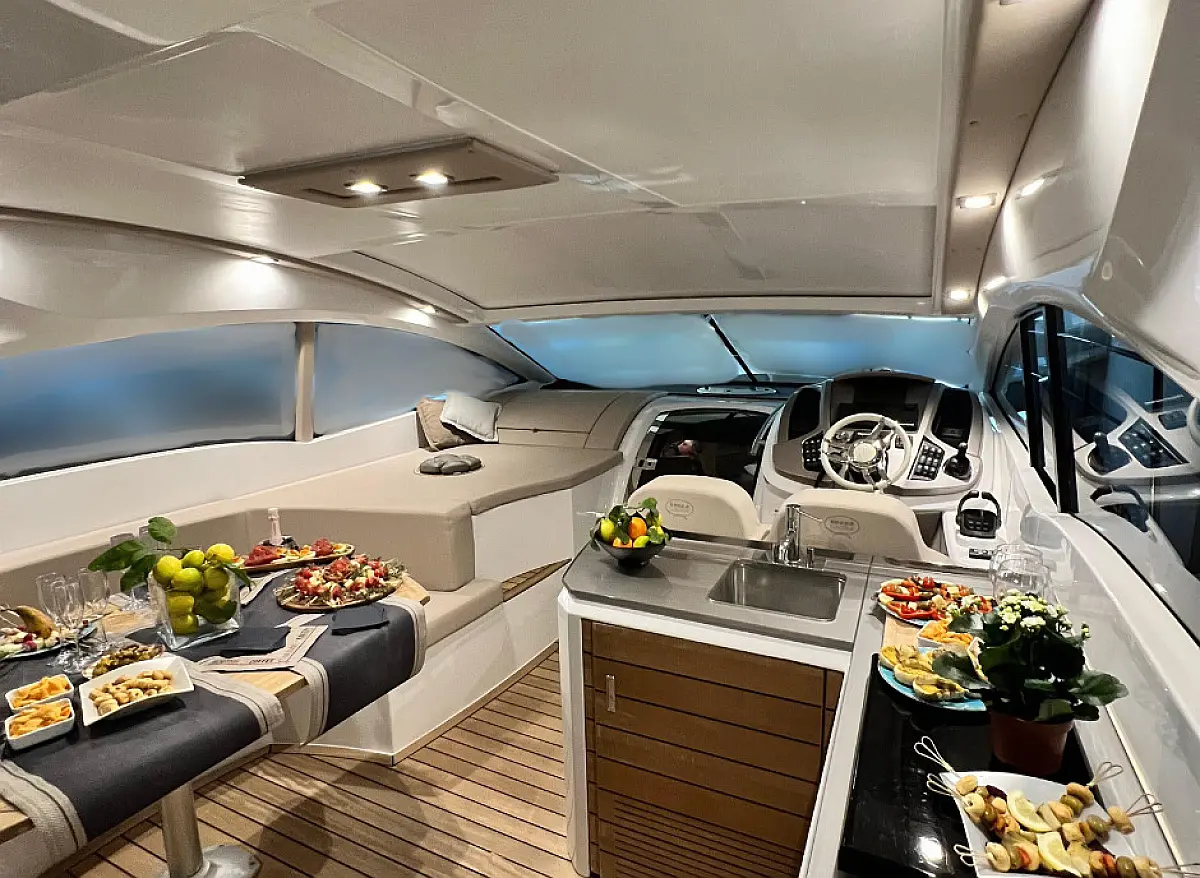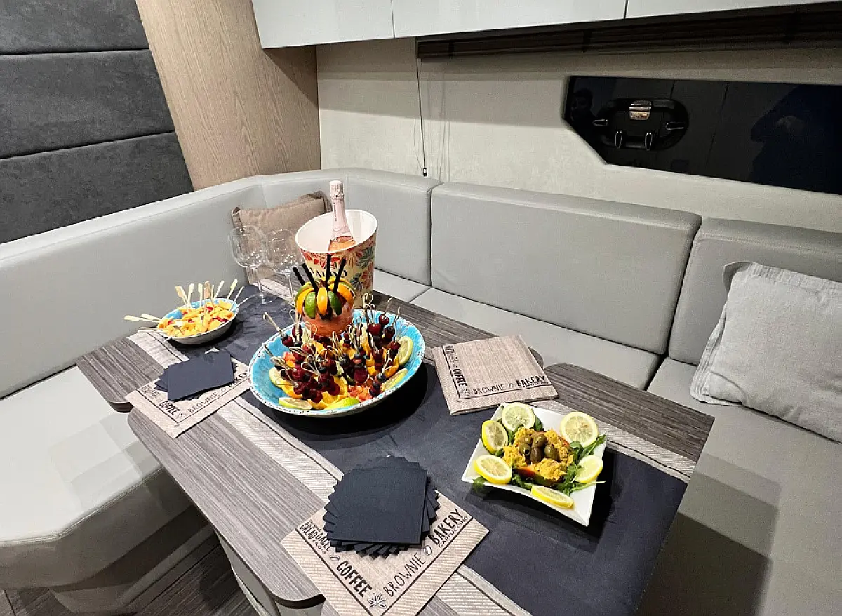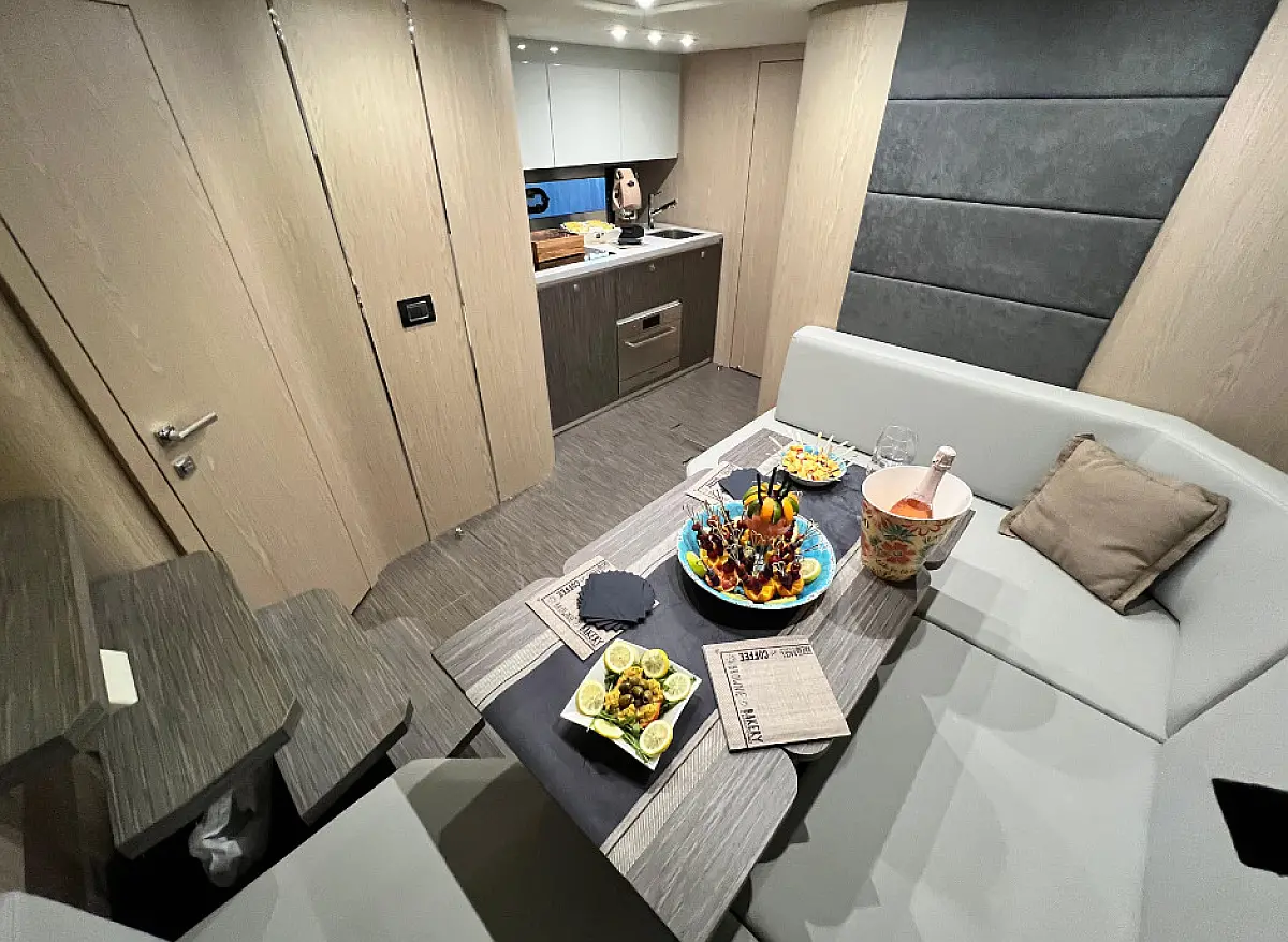 Refrigerator, Dinghy, Bimini, Swimming platform, Teak Cockpit, Air condition, Electric toilet