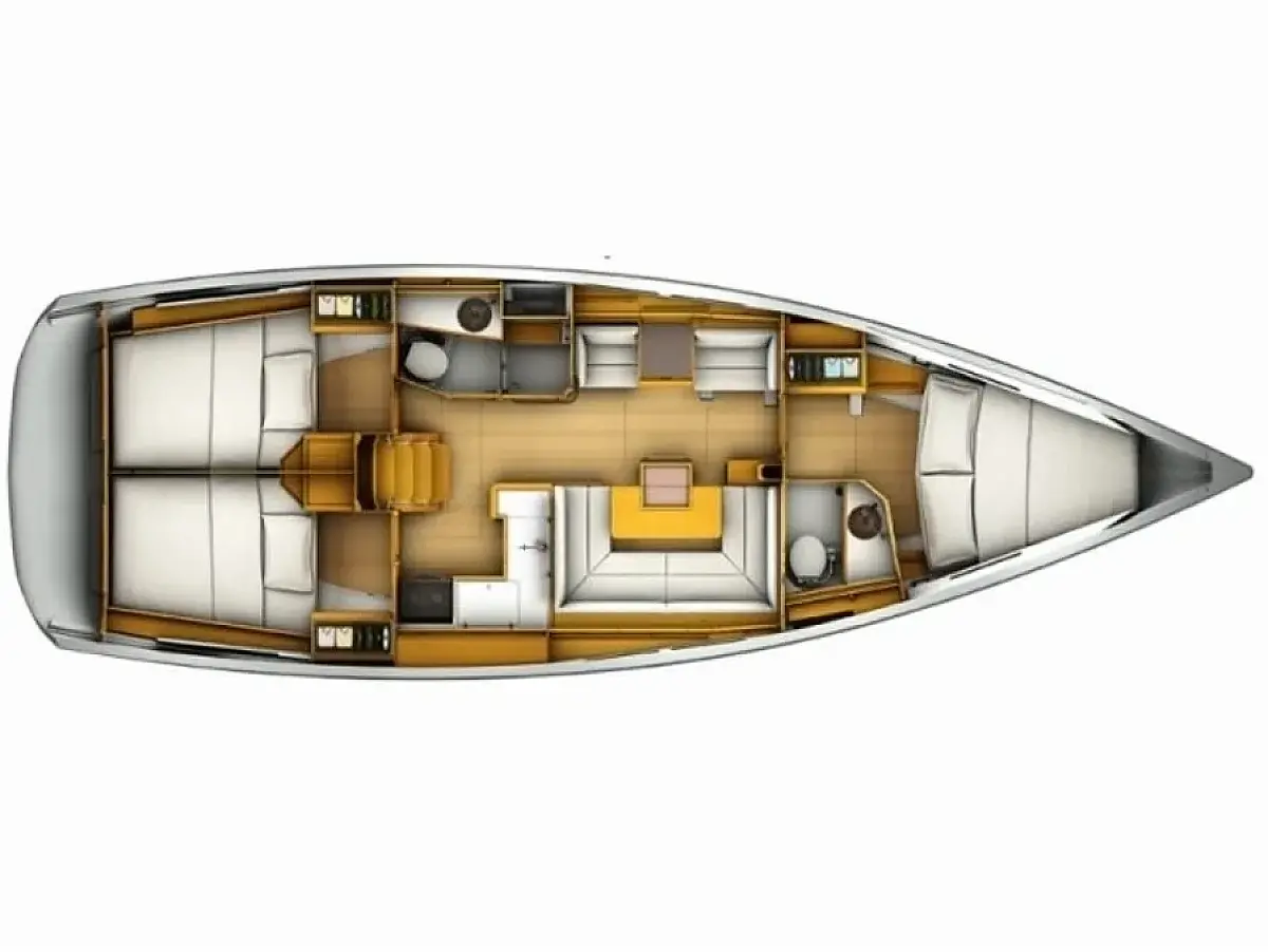 Electric toilet, Bimini, Cockpit cushions, Sprayhood, Cockpit speakers, Dinghy, Coffee maker, Refrigerator