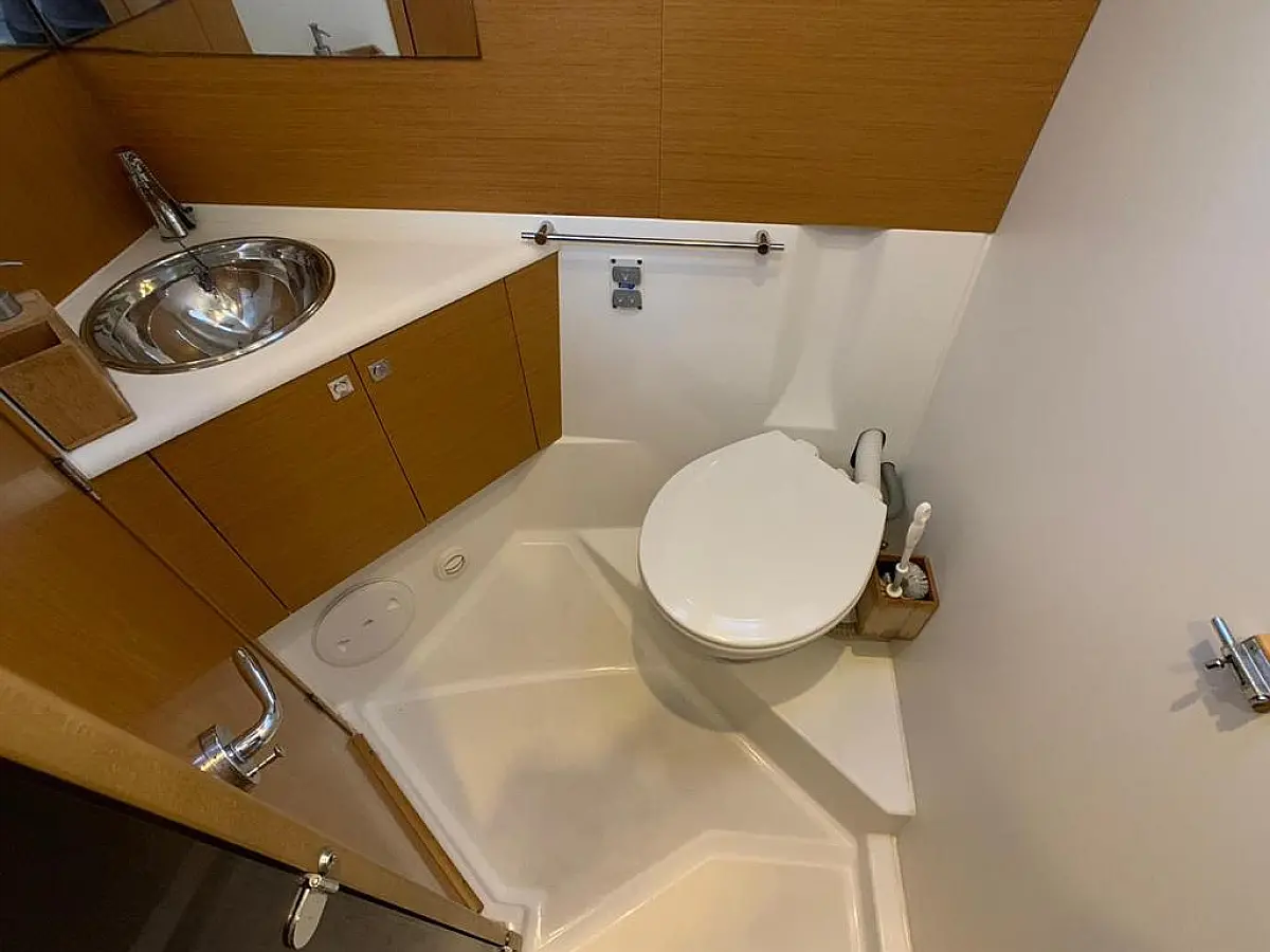 Cockpit speakers, Cockpit cushions, Refrigerator, Teak Cockpit, Heating, Holding tank, Sprayhood, Dinghy, Bimini, Electric winches, Electric toilet, Generator, Solar Panels, Inverter